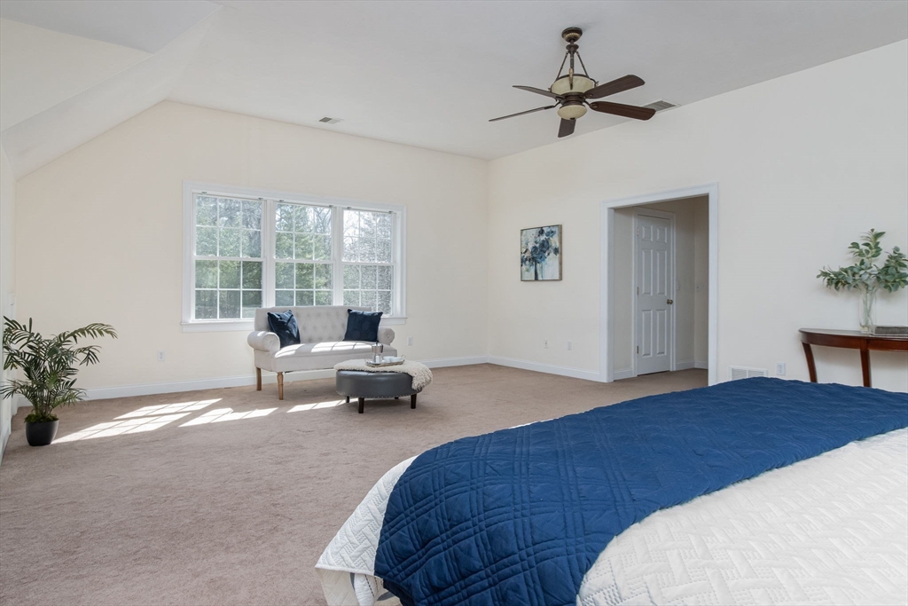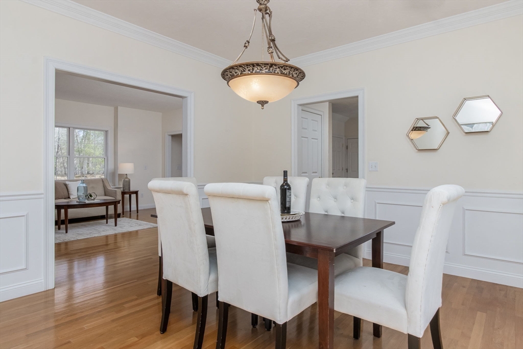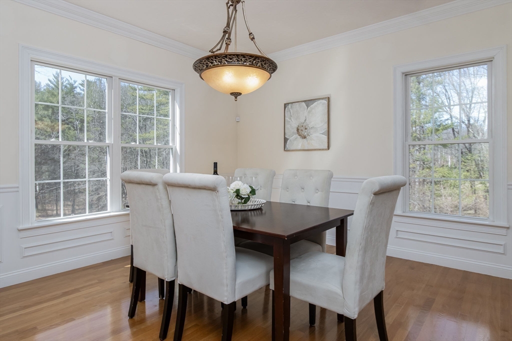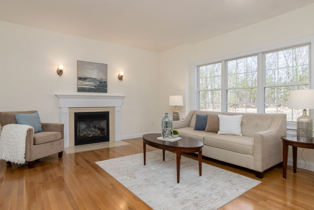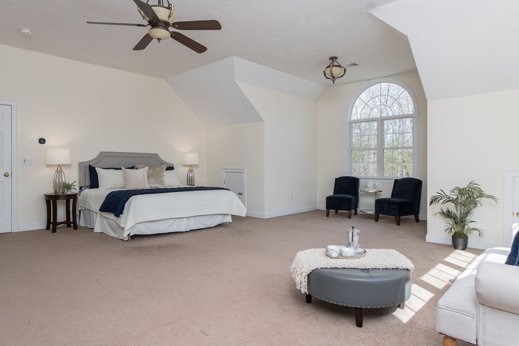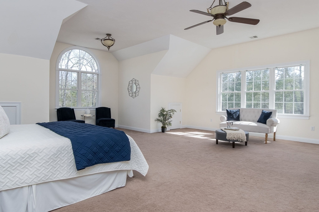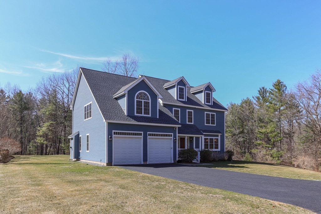 Charming colonial home, impeccably maintained & nestled on a generous 2+ acre lot, offering a serene setting. Great curb appeal enhanced by NEW roof & sealed driveway. Open concept design boasts 9’ ceilings & rich hardwood floors throughout most of 1st level. Spacious kitchen w/ new appliances & granite counters seamlessly connects to inviting family room w/ cozy fireplace. Din room w/ wainscoting & crown, elegant fireplaced liv room, & ½ ba also on 1st floor. Grand primary suite is a true retreat, showcasing vaulted ceilings, 2 walk-in closets, & luxurious en-suite w/ double sink vanity, jac tub, & shower. 3 more large bedrooms, full bath & laundry complete the 2nd floor. Finished 3rd floor offers high ceilings & endless possibilities such as: 5th bedroom, media room, or study. Full basement features a wine cellar & ample storage space. Flat, private backyard complemented by newly updated, oversized composite deck. Located just a short drive from Route 3, I-495, & vibrant town center!