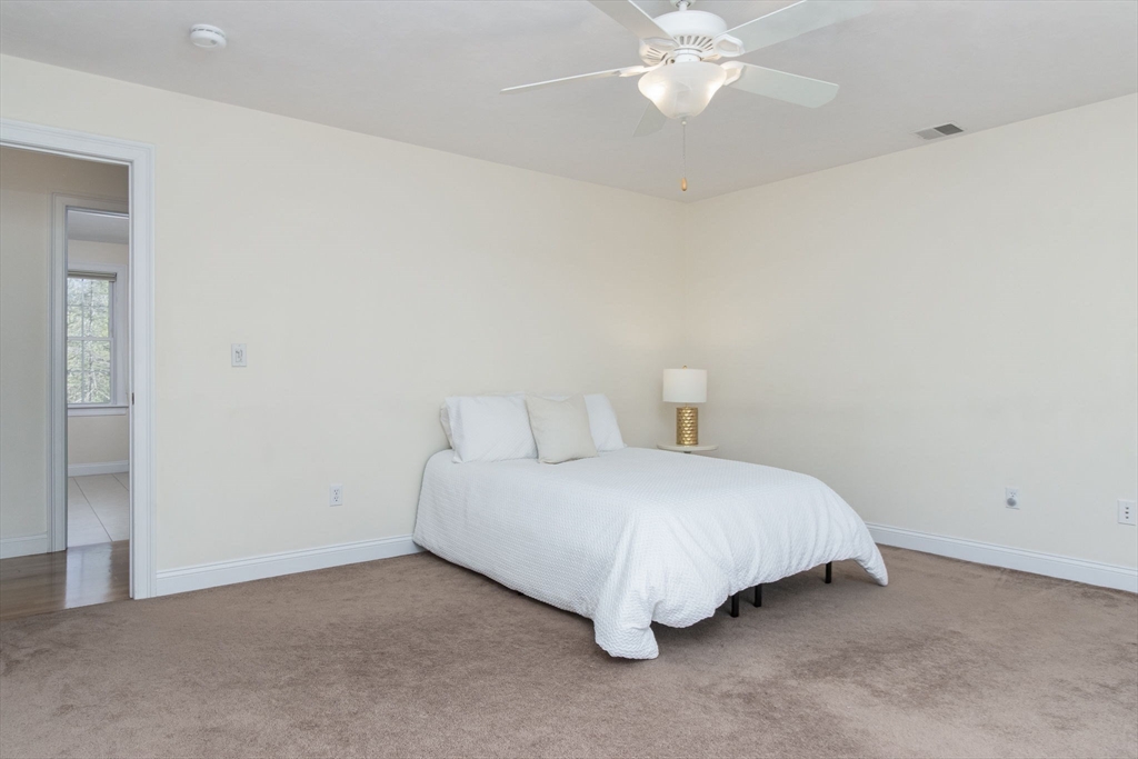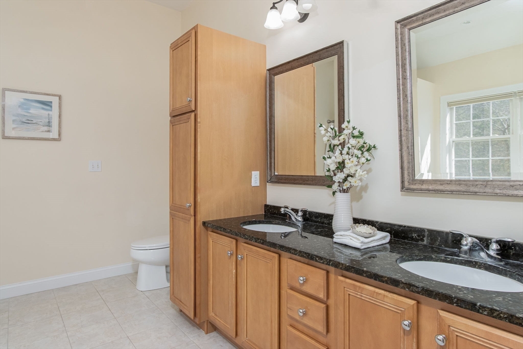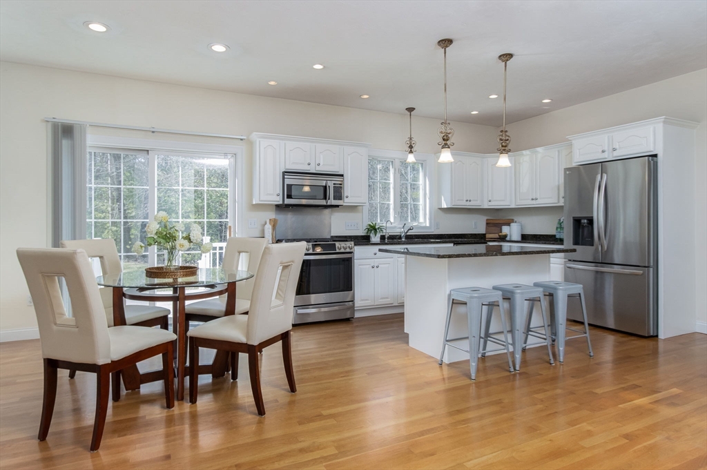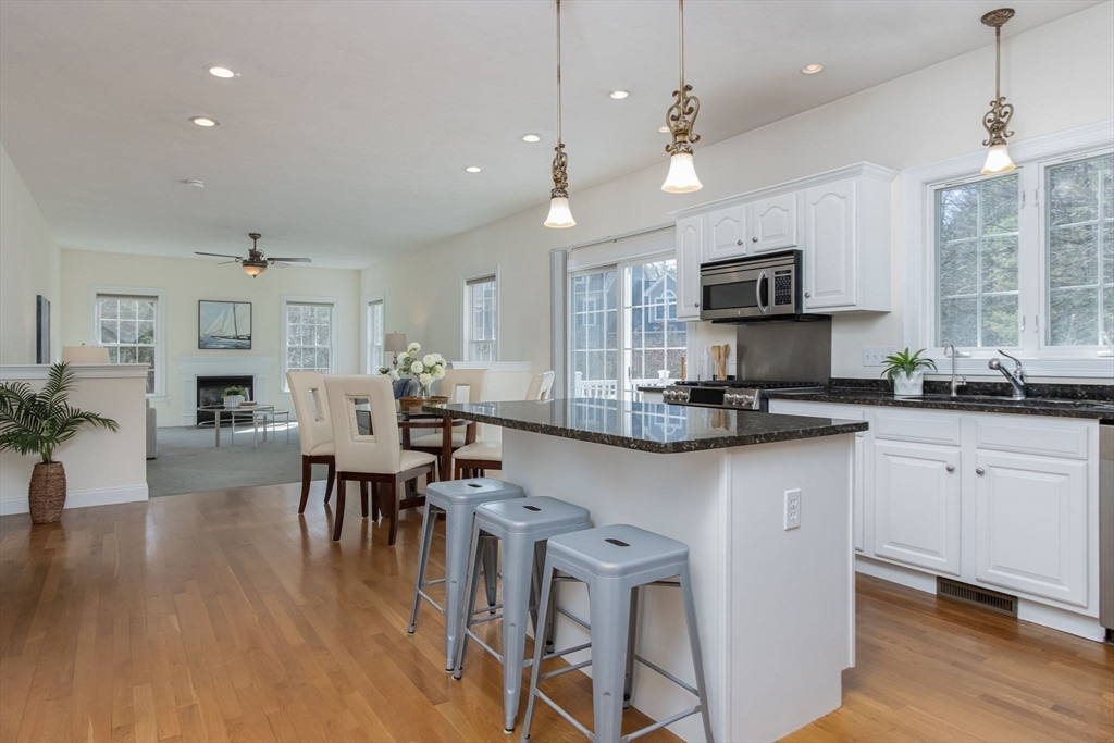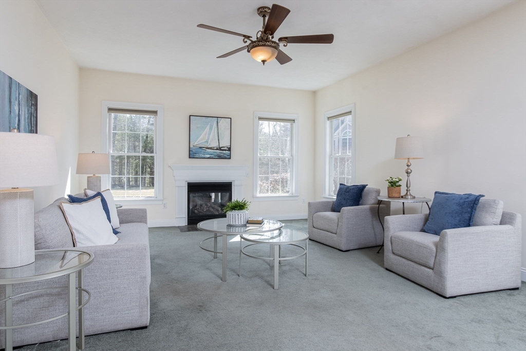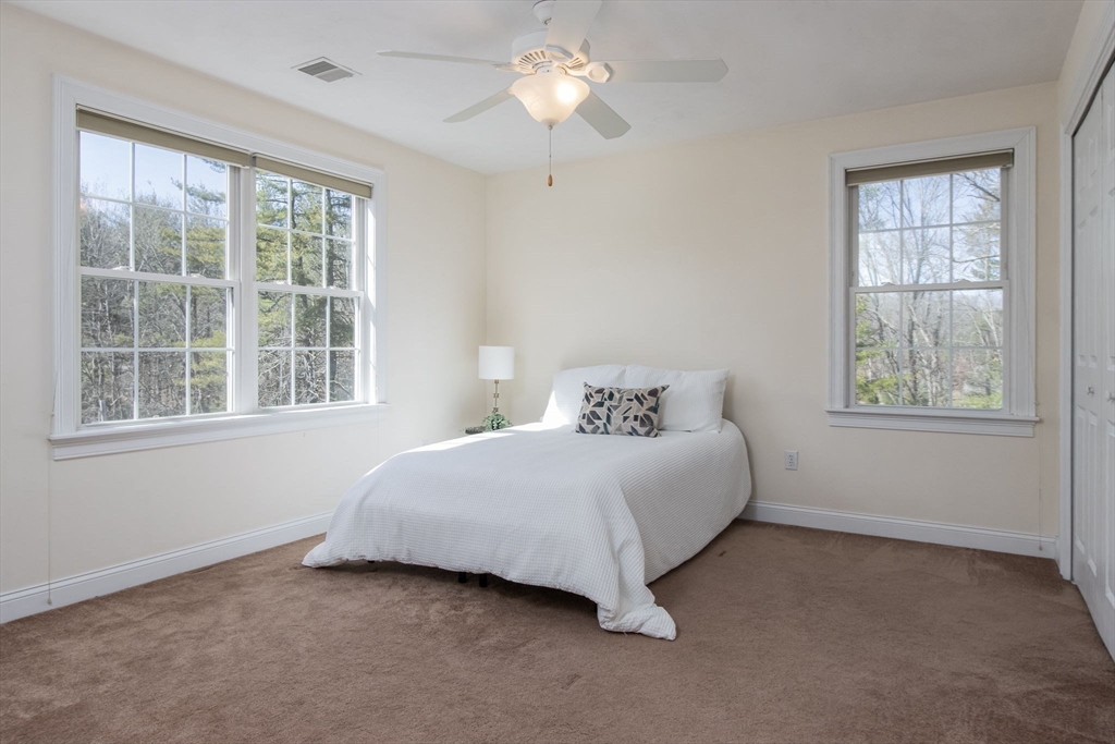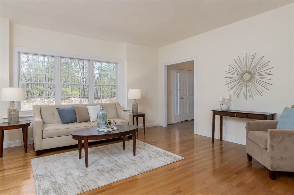 Charming colonial home, impeccably maintained & nestled on a generous 2+ acre lot, offering a serene setting. Great curb appeal enhanced by NEW roof & sealed driveway. Open concept design boasts 9’ ceilings & rich hardwood floors throughout most of 1st level. Spacious kitchen w/ new appliances & granite counters seamlessly connects to inviting family room w/ cozy fireplace. Din room w/ wainscoting & crown, elegant fireplaced liv room, & ½ ba also on 1st floor. Grand primary suite is a true retreat, showcasing vaulted ceilings, 2 walk-in closets, & luxurious en-suite w/ double sink vanity, jac tub, & shower. 3 more large bedrooms, full bath & laundry complete the 2nd floor. Finished 3rd floor offers high ceilings & endless possibilities such as: 5th bedroom, media room, or study. Full basement features a wine cellar & ample storage space. Flat, private backyard complemented by newly updated, oversized composite deck. Located just a short drive from Route 3, I-495, & vibrant town center!