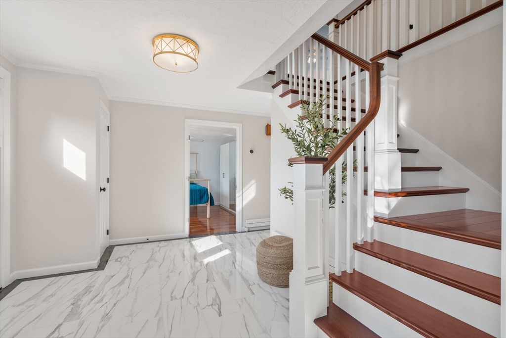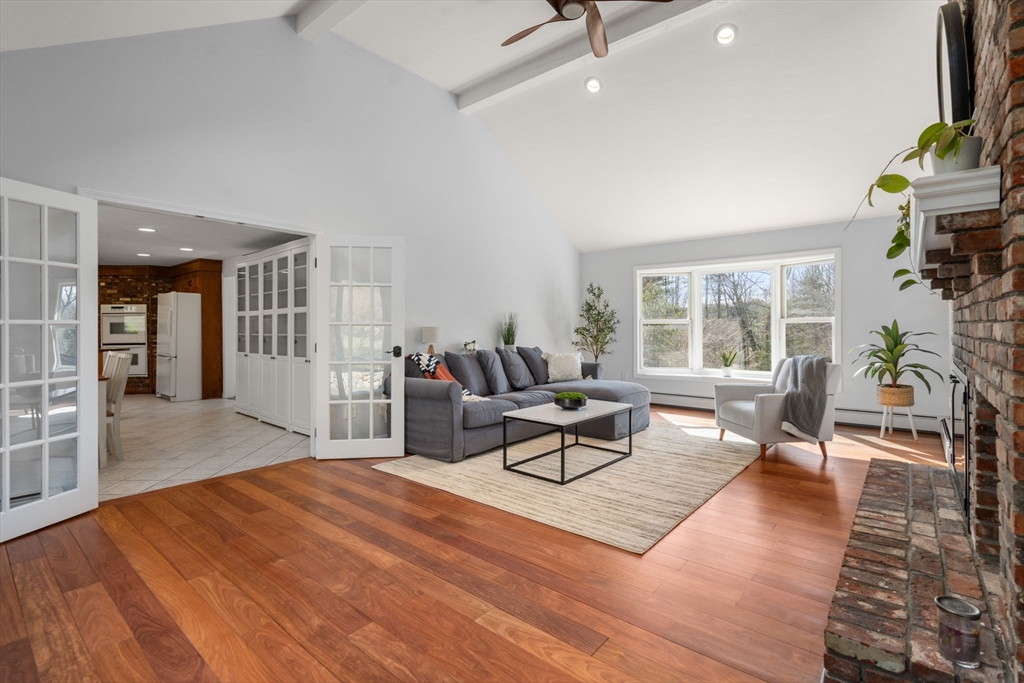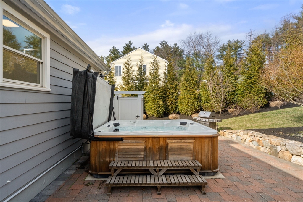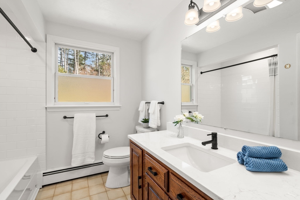 YOUR SEARCH ENDS HERE! Nestled in a premier Acton location, this immaculate home blends timeless charm & modern updates, creating an inviting, bright living space just mins from top-rated A/B schools, commuter rail & vibrant West Acton Village. Step into the sun-filled foyer w/ dbl closets leading to updated main level. Gleaming hardwoods, a spacious kitchen w/ dining area, formal living room & cathedral-ceiling family rm w/ fireplace & bay window, flooding the space w/ natural light. This level also features a renovated full bath, laundry rm & versatile bonus rm for an office etc. Upstairs, retreat to the grand primary suite w/ vaulted ceiling, custom walk-in closet & ensuite bath, plus 3 add'l BRs & another updated full bath. LL offers a newly updated bonus space-ideal for a media rm, playroom, or gym. Step outside to a private backyard oasis w/ walkout patio, expansive 9-person hot tub & outdoor shower. Meticulously maintained w/ high-end updates - don’t miss this rare opportunity.