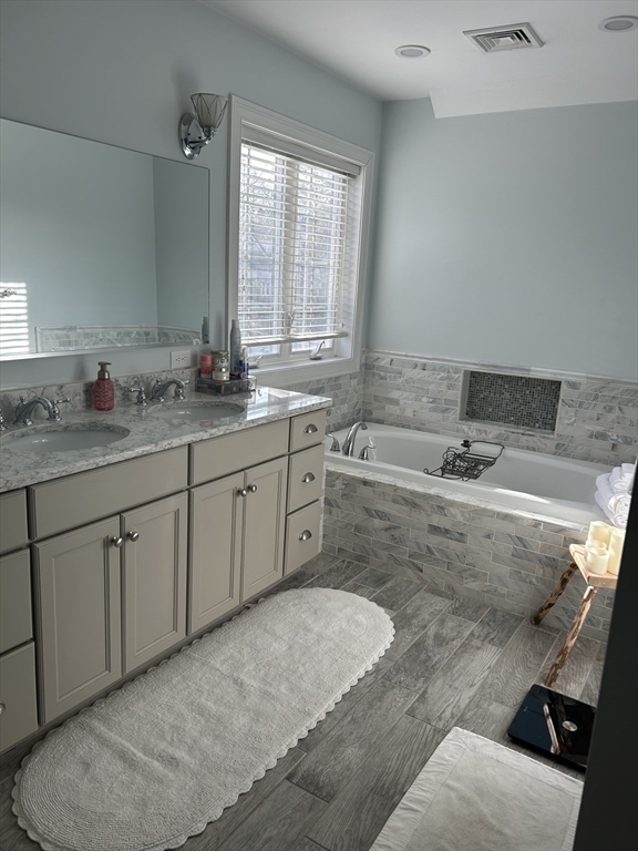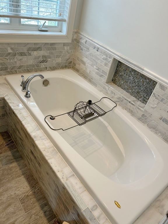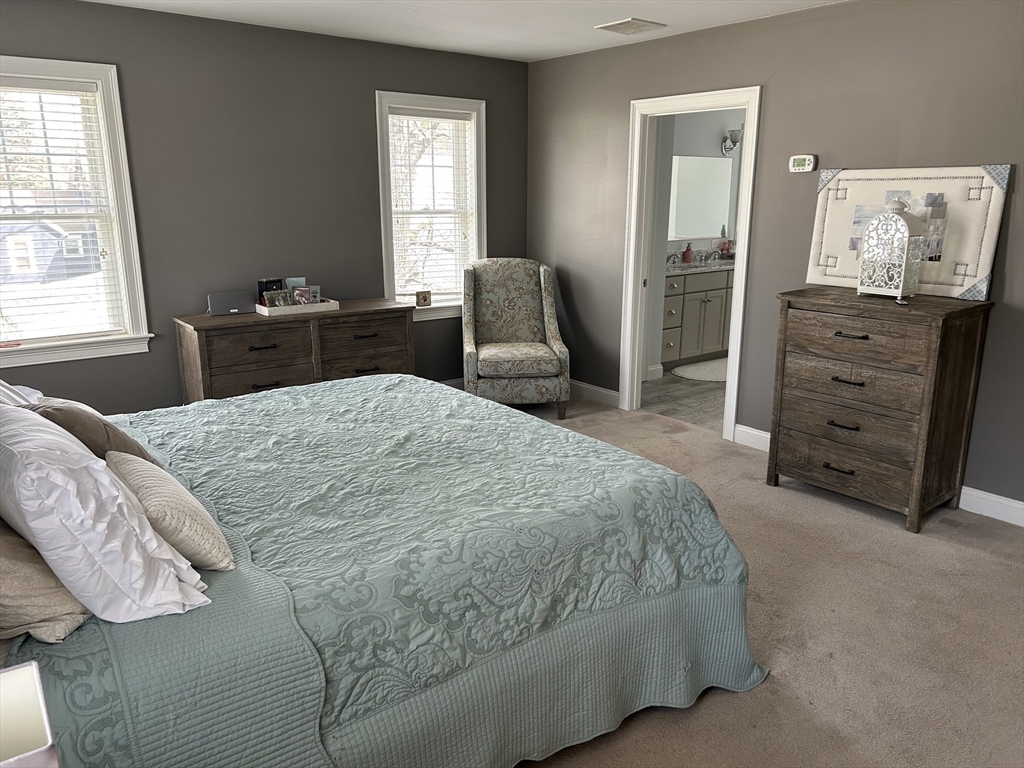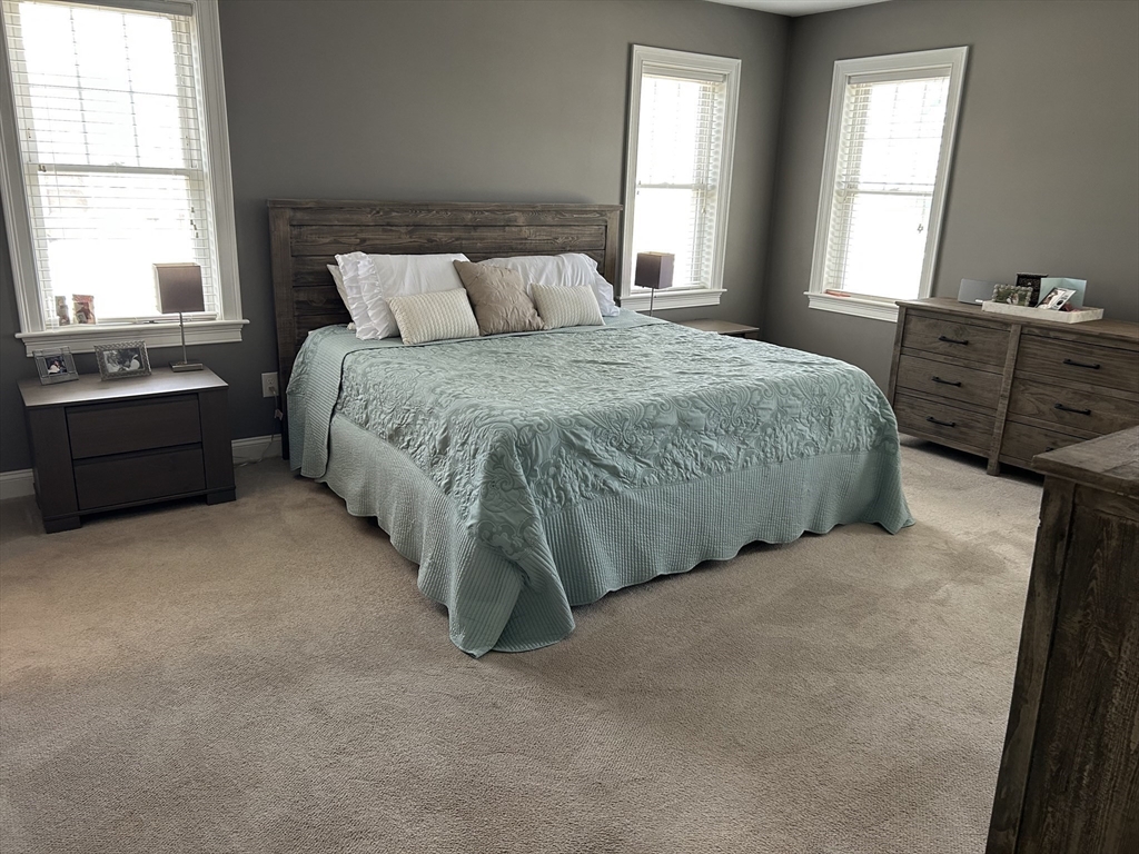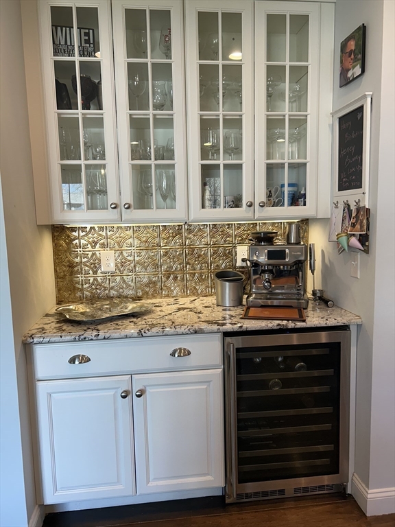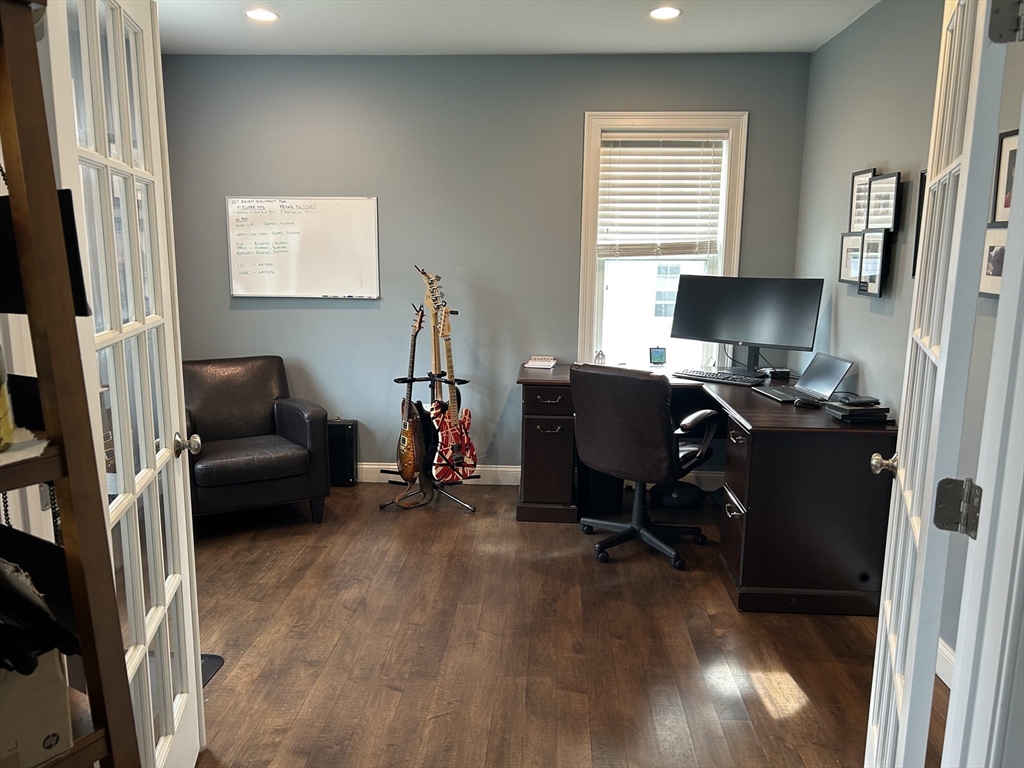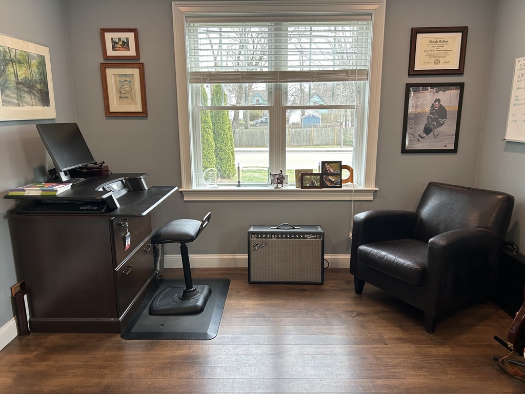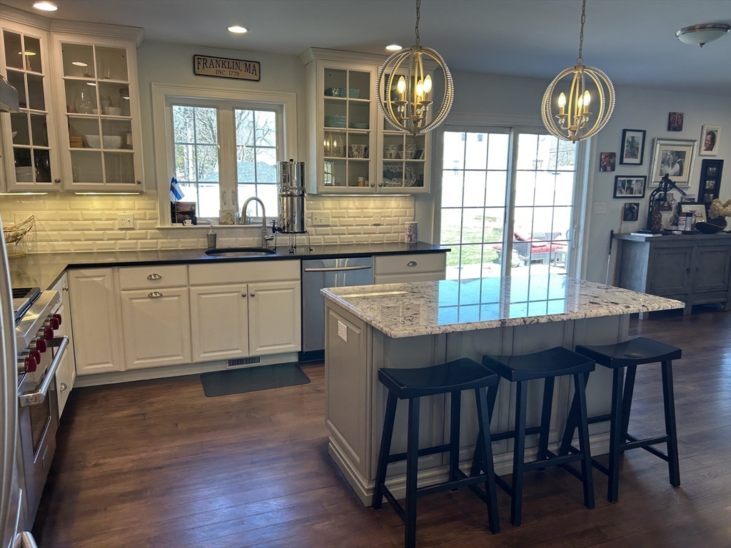 Welcome to a masterpiece of quality, contemporary flare. This 4 bedroom, 2-1/2 bath with a chef's kitchen and hardwood floors makes for a bright, gleaming family life with entertaining space. The attached two car garage offers a convenient entry with plenty of storage. Just down the hall is a bright office or sitting room. Walk out onto the patio with a fenced-in yard. Find a stone, natural gas fire pit and a beauty of an outside kitchen featuring a gas grill with granite countertops. This is perfect for a relaxing evening under the stars or an afternoon grilling! Upstairs we have 3 good sized bedrooms, a full bath, and a primary bedroom with its own tiled bathroom with both a bathtub and shower stall. Easy access to major highways and T station. Every convience you need in your new home.