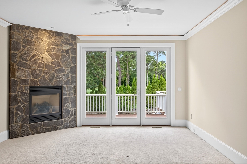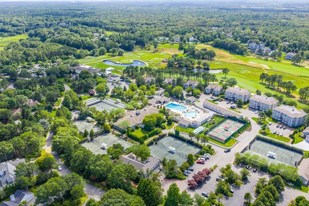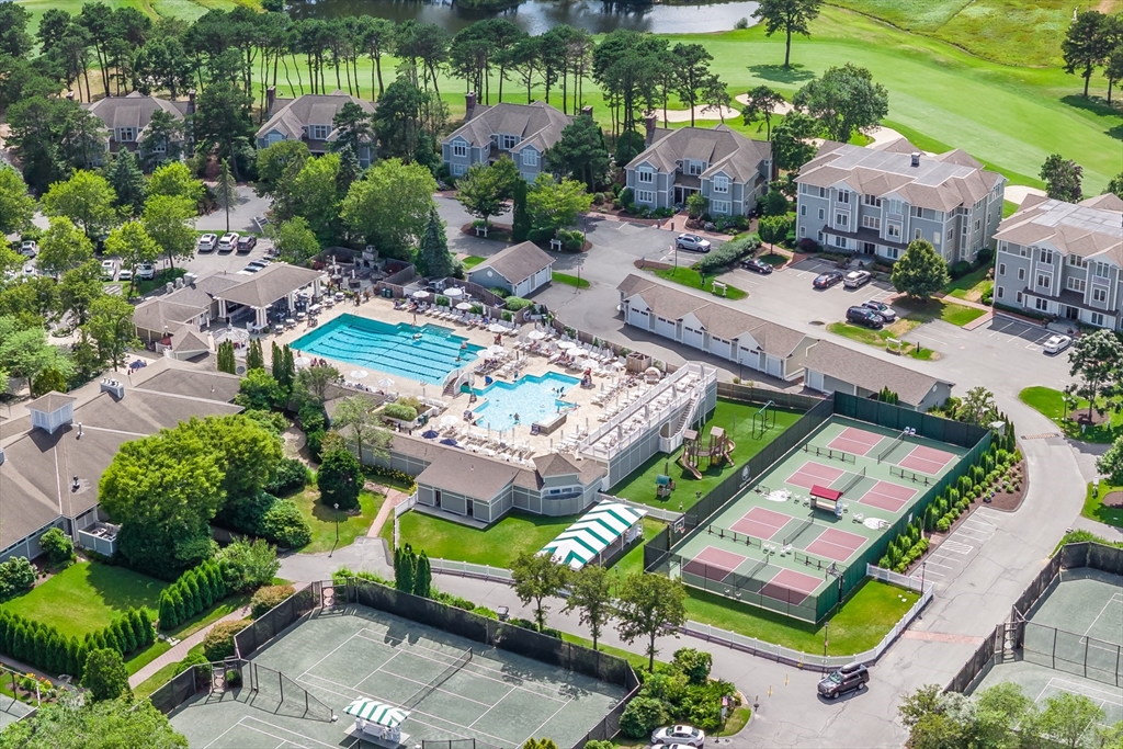 This is a competitive opportunity! Deals like this are few and far between. Beyond first floor living and all the bells and whistles, it is centrally located. This is a tremendous way to enhance your magical Cape Cod summers - At Willowbend. It is a wonderful lifestyle that offers golf, tennis, pickleball, kids camp, pool, restaurants, events, clubs fitness, parties, and more. It is a bold and fun lifestyle choice. Upon entering, you're greeted by elegant Brazilian cherry floors that flow throughout the home, leading you to a grand living area. The bright and airy living room, featuring a cozy gas fireplace and coffered ceiling, promises to be the perfect spot for relaxation or entertaining guests. A wall of windows frames picturesque views of the adjacent golf course, while a French door opens to an expansive deck. Each suite and the other areas from there to the movie theatre are high end and grand. This is a special opportunity, come see it for yourself.