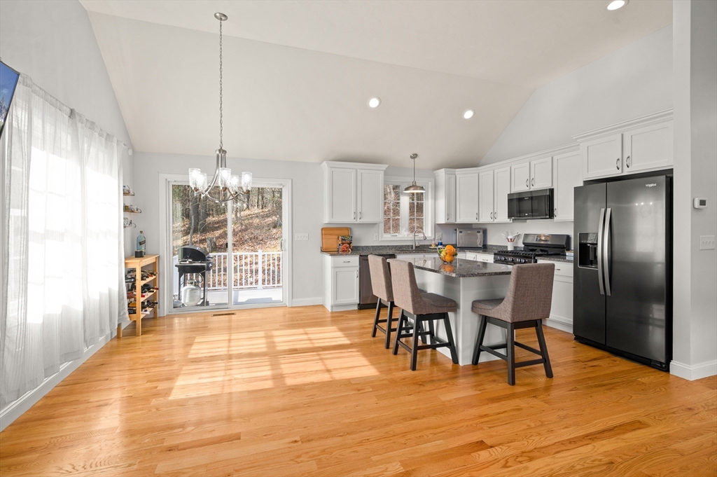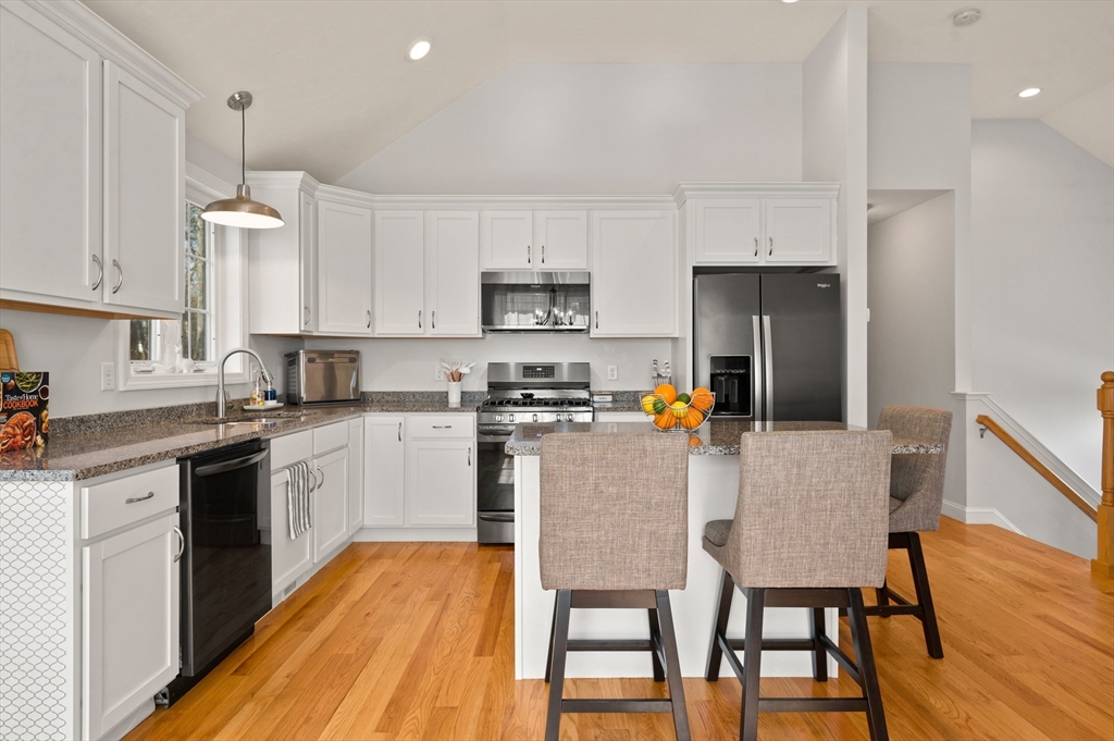 Welcome to this beautiful 4-year-old split-entry home, offering 3 spacious bedrooms and 2 full bathrooms. The open-concept main level features a bright living room with large windows that flood the space with natural light. The kitchen is equipped with modern stainless steel appliances, sleek countertops, and ample cabinetry, perfect for cooking and entertaining. The adjacent dining area leads to a private deck, ideal for outdoor relaxation. The master bedroom includes a large closet and en-suite bathroom, offering a tranquil retreat. Two additional bedrooms provide flexibility for family, guests, or a home office. The finished lower level includes a cozy family room, laundry area, and abundant storage space. A double garage adds convenience, while the beautifully landscaped yard offers a perfect outdoor setting. Located in a desirable neighborhood with easy access to major highways, shopping, and schools, this home offers both comfort and convenience!
