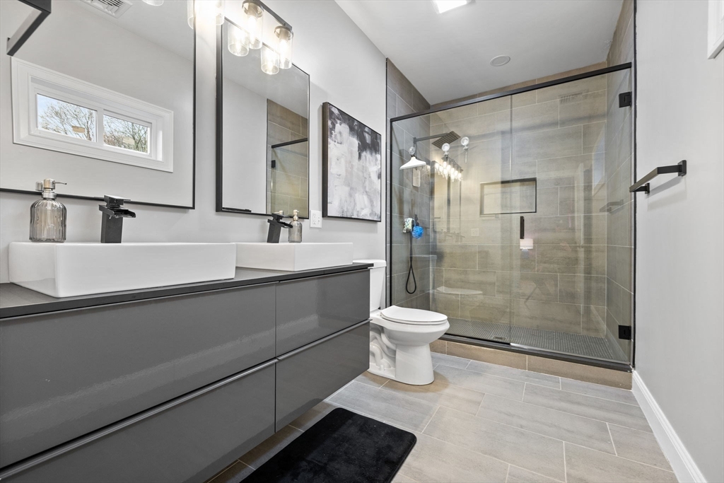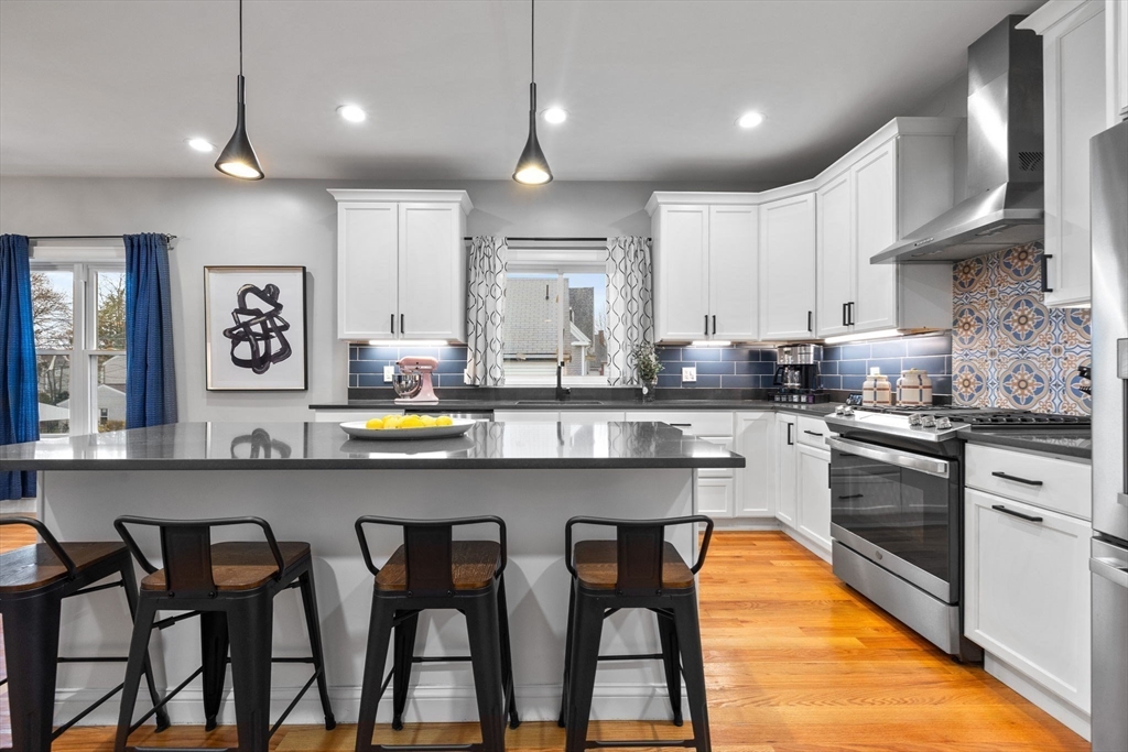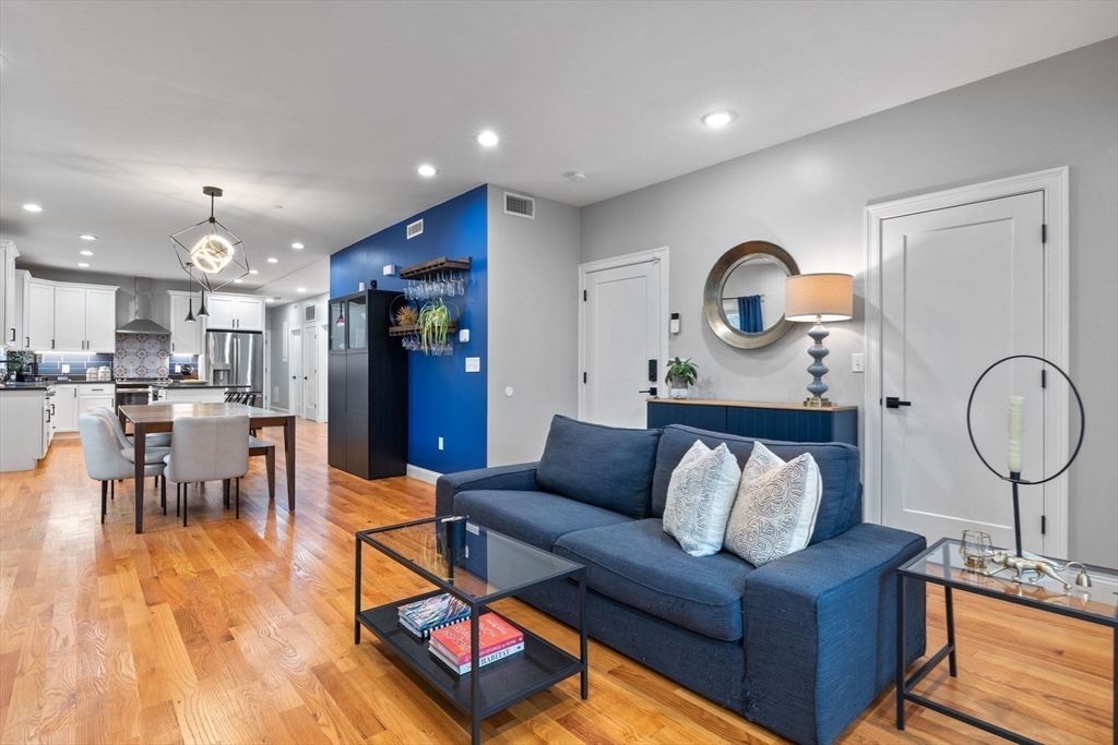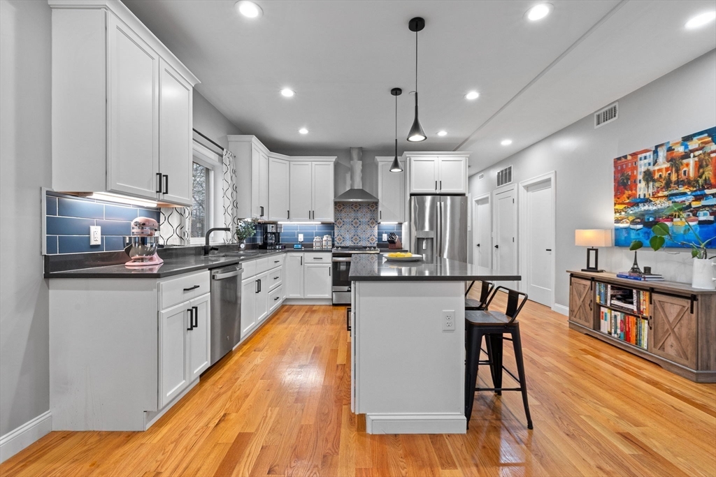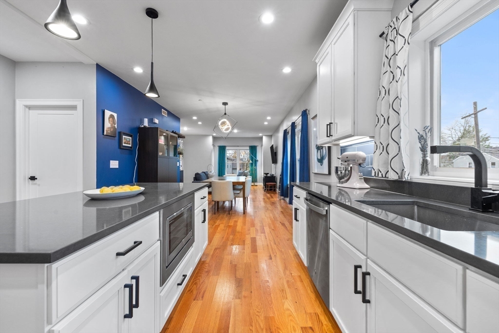 Welcome to this charming Hyde Park residence, where beauty & style meets function. New construction in 2021 means EVERYTHING is fresh for you. Plumbing, electric, roof, appliances - all 4 years young. 3 large BRs & 2 full baths are keenly situated within the almost 1,400 sqft open-concept floor plan. Large living rm, opens to dining rm which opens to massive chefs kitchen & 4-person island. Custom lighting & tile embellishments give this home unique, intentional vibe. Expansive primary BR w/double vanity en-suite bath & walk-in closet. Ample space for both working from home & entertaining - even room for a nursery and/or overnight guests. Private rear deck offers opportunity to enjoy a morning coffee or unwind after a long day. Located in a vibrant Boston neighborhood close to the Roslindale line. Convenient proximity to many local amenities and transport options. Deeded 1 car parking and large exclusive storage area located in the basement. So much to love!! OHs Fri 12-1 & Sun 12-2!