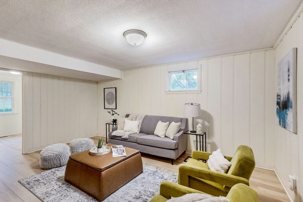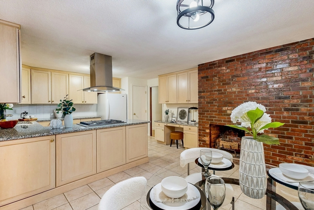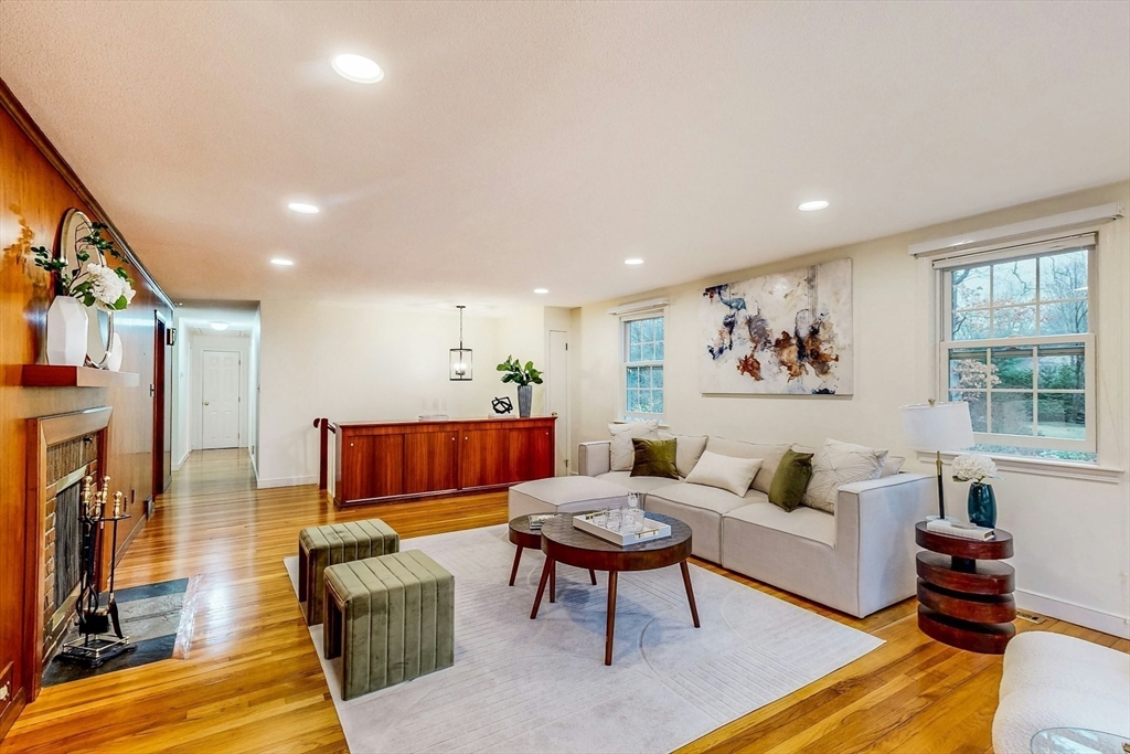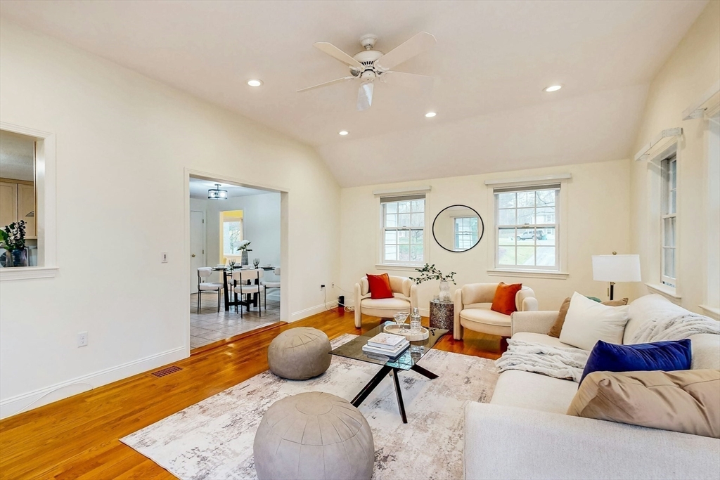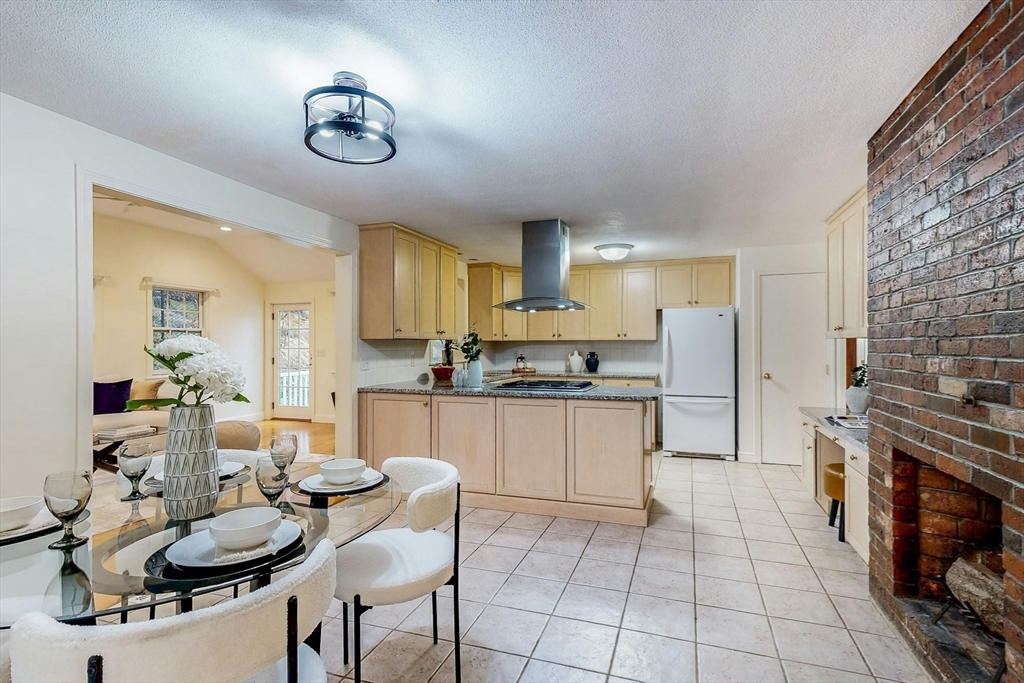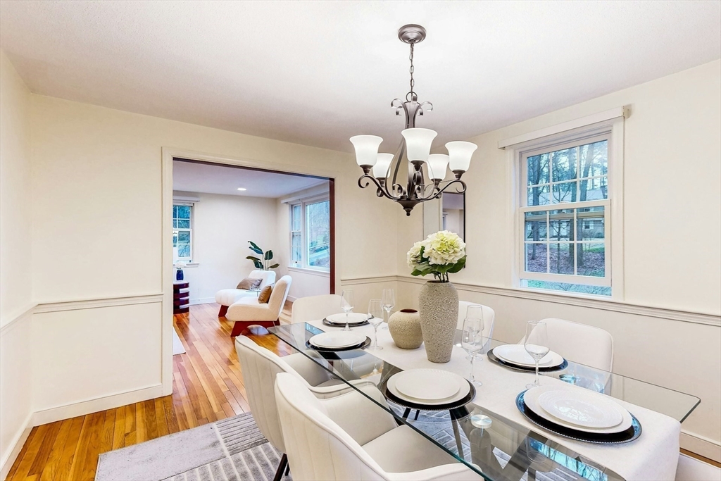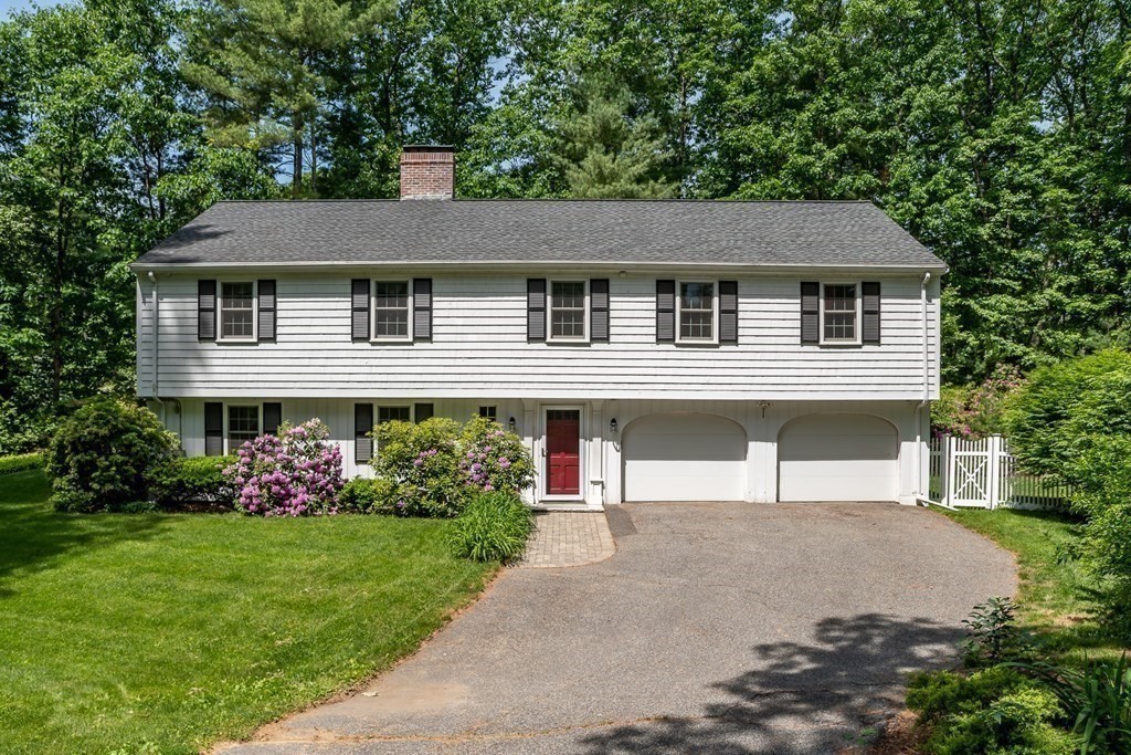 Nestled back from the road on a desirable, dead-end street, this beautifully maintained home offers flexible living space and timeless charm. The spacious eat-in kitchen features granite countertops, cabinetry, and flows seamlessly into a sun-filled family room with direct access to a private backyard oasis. Step outside to enjoy the expansive backyard, featuring a large patio, lush gardens, and a flat, grassy play area—perfect for outdoor fun and relaxation. The formal dining room with gleaming hardwood floors sets the stage for memorable holiday gatherings. Upstairs, you'll find three generously sized bedrooms, including a serene primary suite with a private en suite bath. The lower level features a fireplace family room or bonus space—perfect for cozy evenings or casual get-togethers. On the first floor, two additional rooms offer flexibility for a fourth bedroom, guest suite, or a private home office. Additional features include central air, a two-car garage, and a 2022 septic.