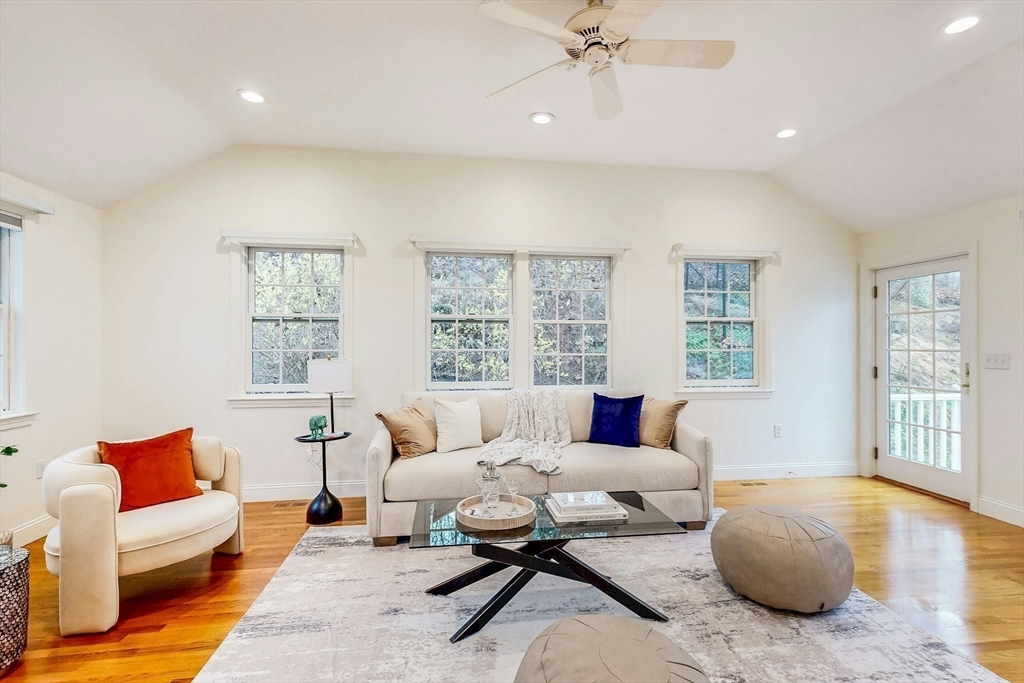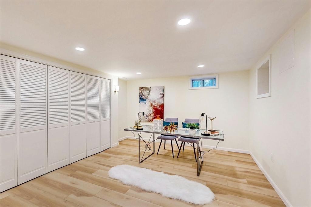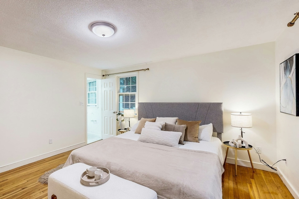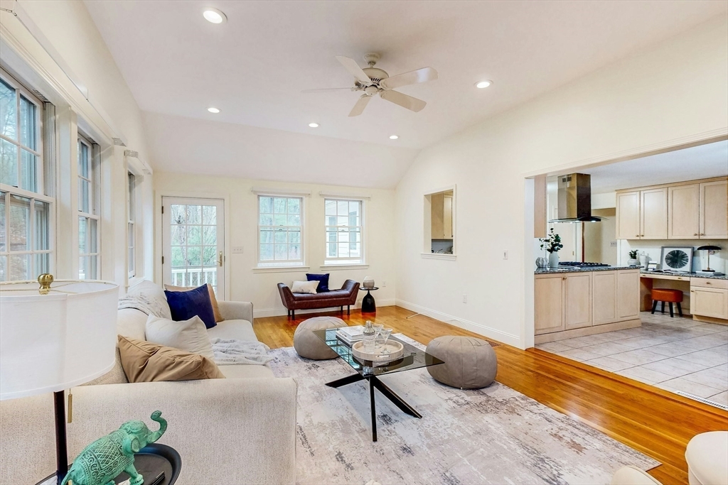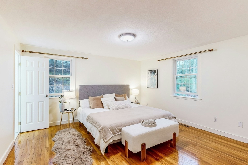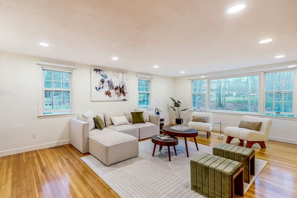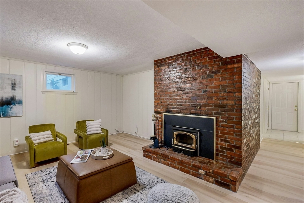 Nestled back from the road on a desirable, dead-end street, this beautifully maintained home offers flexible living space and timeless charm. The spacious eat-in kitchen features granite countertops, cabinetry, and flows seamlessly into a sun-filled family room with direct access to a private backyard oasis. Step outside to enjoy the expansive backyard, featuring a large patio, lush gardens, and a flat, grassy play area—perfect for outdoor fun and relaxation. The formal dining room with gleaming hardwood floors sets the stage for memorable holiday gatherings. Upstairs, you'll find three generously sized bedrooms, including a serene primary suite with a private en suite bath. The lower level features a fireplace family room or bonus space—perfect for cozy evenings or casual get-togethers. On the first floor, two additional rooms offer flexibility for a fourth bedroom, guest suite, or a private home office. Additional features include central air, a two-car garage, and a 2022 septic.