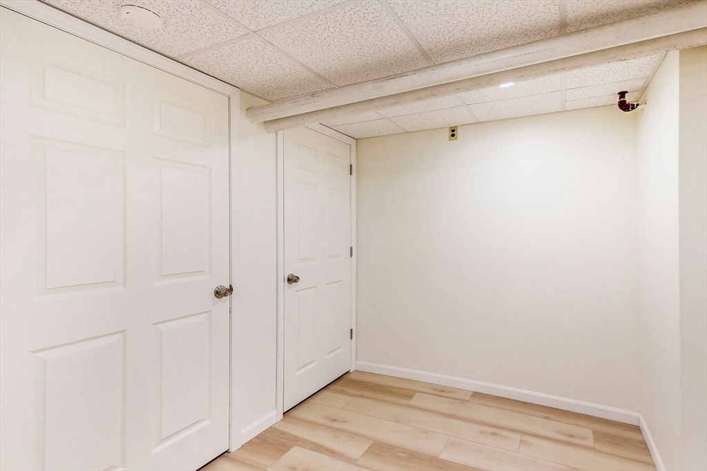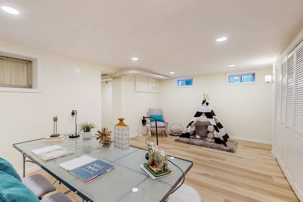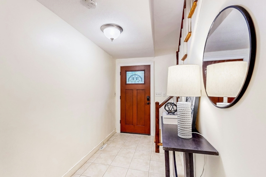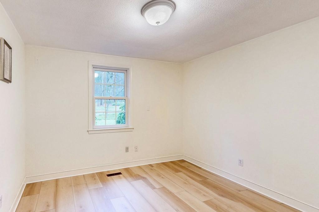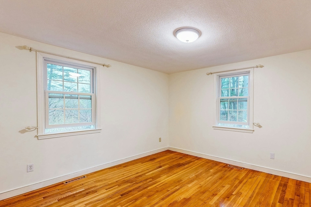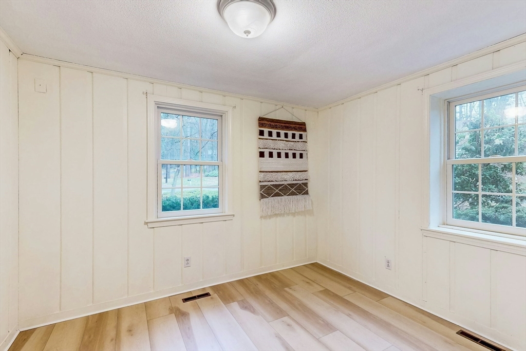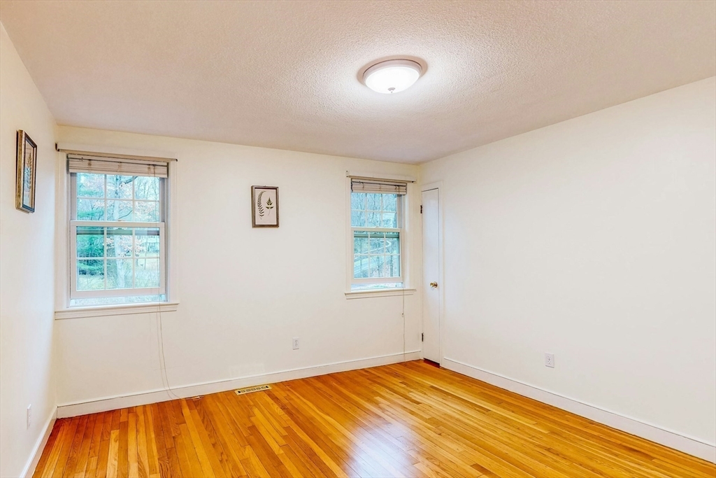 Nestled back from the road on a desirable, dead-end street, this beautifully maintained home offers flexible living space and timeless charm. The spacious eat-in kitchen features granite countertops, cabinetry, and flows seamlessly into a sun-filled family room with direct access to a private backyard oasis. Step outside to enjoy the expansive backyard, featuring a large patio, lush gardens, and a flat, grassy play area—perfect for outdoor fun and relaxation. The formal dining room with gleaming hardwood floors sets the stage for memorable holiday gatherings. Upstairs, you'll find three generously sized bedrooms, including a serene primary suite with a private en suite bath. The lower level features a fireplace family room or bonus space—perfect for cozy evenings or casual get-togethers. On the first floor, two additional rooms offer flexibility for a fourth bedroom, guest suite, or a private home office. Additional features include central air, a two-car garage, and a 2022 septic.