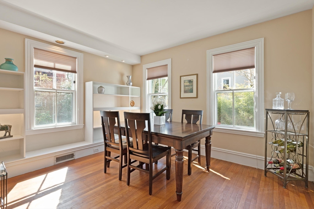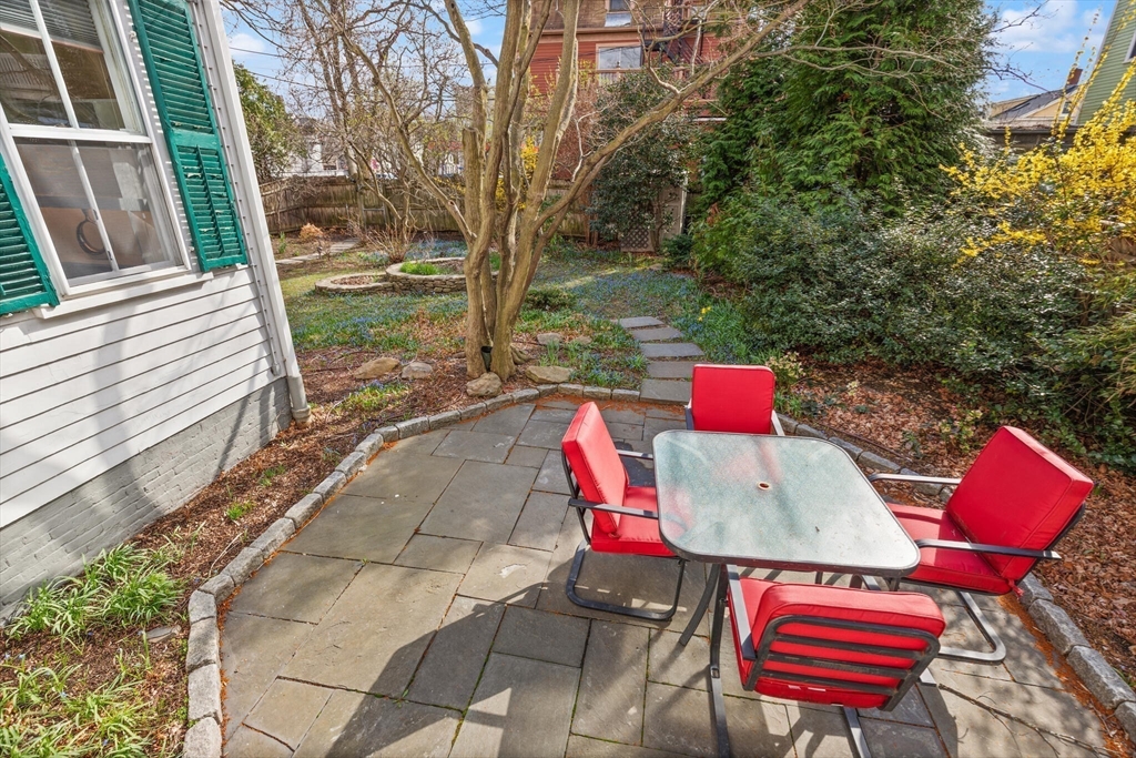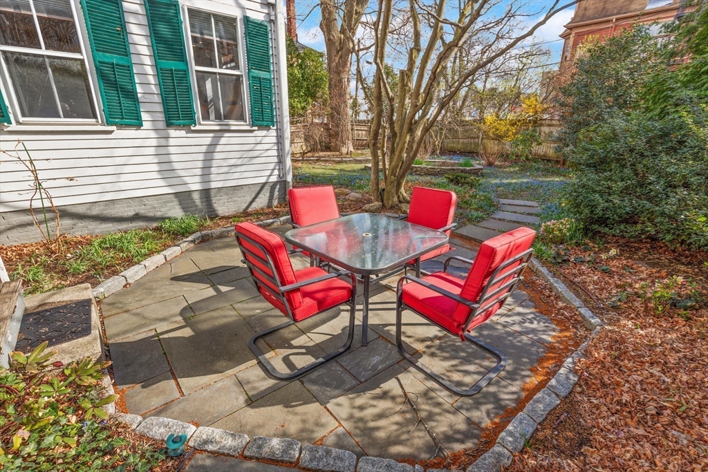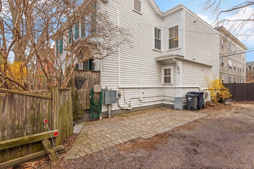 A true hidden gem!! This single family property offers 3 bedrooms, 1.5 baths, an open living/dining room w/ custom shelving and windows overlooking the fenced in yard, an eat-in fully functional kitchen with stainless steel appliances and a new refrigerator, 3 bedrooms on the second level with generous closet spaces and a dedicated laundry room. From the kitchen exit out to a patio and grilling area. The fenced arrigated yard is a true owasis featuring a beautiful display of flowers, bushes, small & large trees and offers stone walking paths from one side to the other. The basement basement is perfect for extra storage and/or a workshop. Newer forced hot air furnace and 4 Fujitsu duckless A/C units. There is a parking space with pavers for 1 car along the side of the house. This is a great condo alternative.