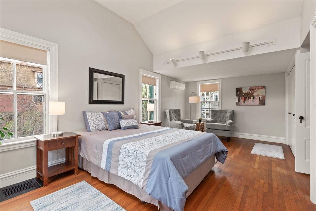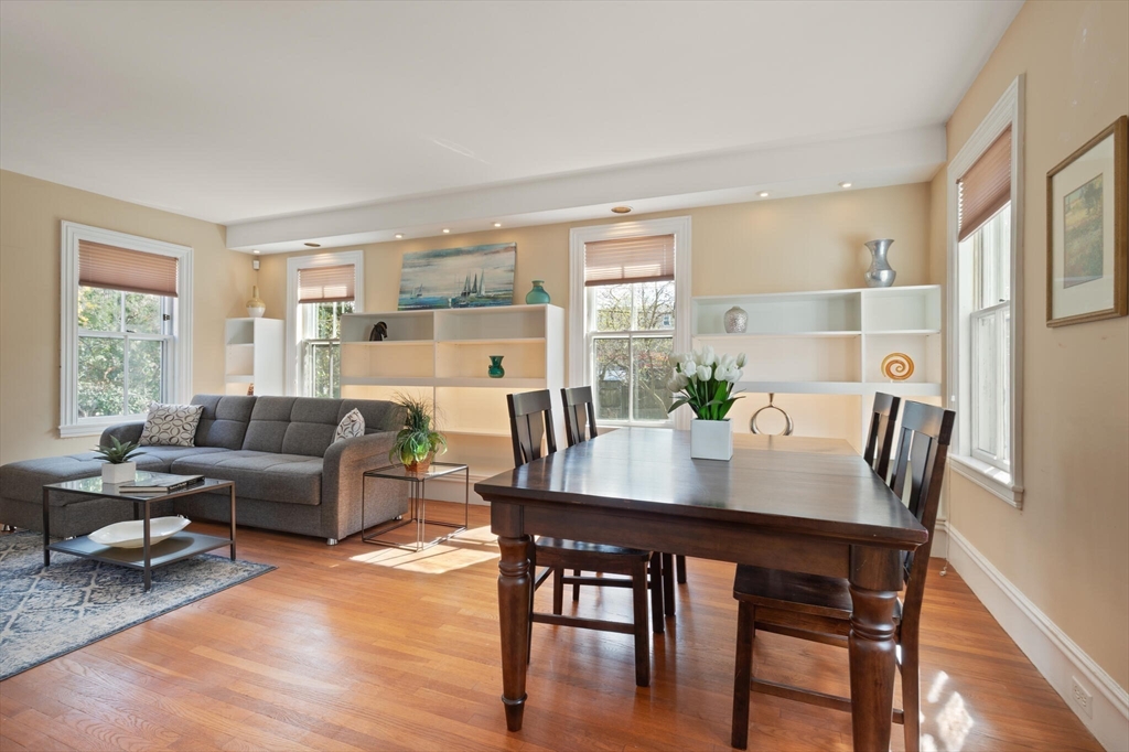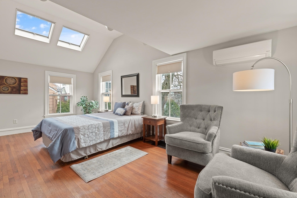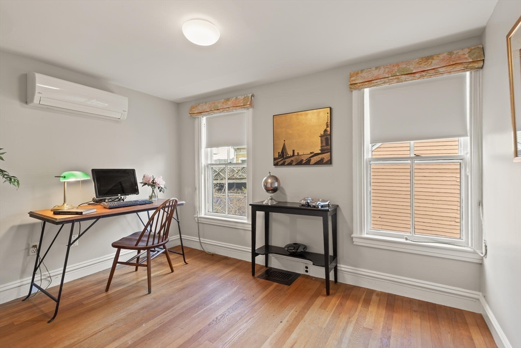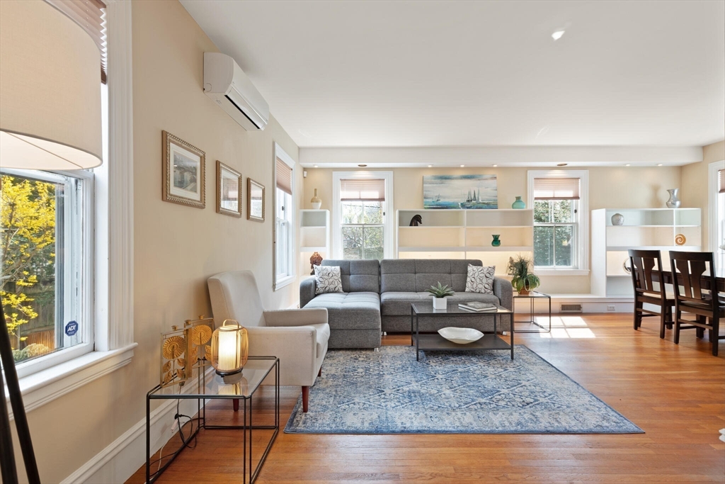 A true hidden gem!! This single family property offers 3 bedrooms, 1.5 baths, an open living/dining room w/ custom shelving and windows overlooking the fenced in yard, an eat-in fully functional kitchen with stainless steel appliances and a new refrigerator, 3 bedrooms on the second level with generous closet spaces and a dedicated laundry room. From the kitchen exit out to a patio and grilling area. The fenced arrigated yard is a true owasis featuring a beautiful display of flowers, bushes, small & large trees and offers stone walking paths from one side to the other. The basement basement is perfect for extra storage and/or a workshop. Newer forced hot air furnace and 4 Fujitsu duckless A/C units. There is a parking space with pavers for 1 car along the side of the house. This is a great condo alternative.