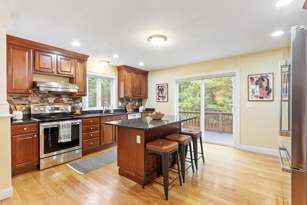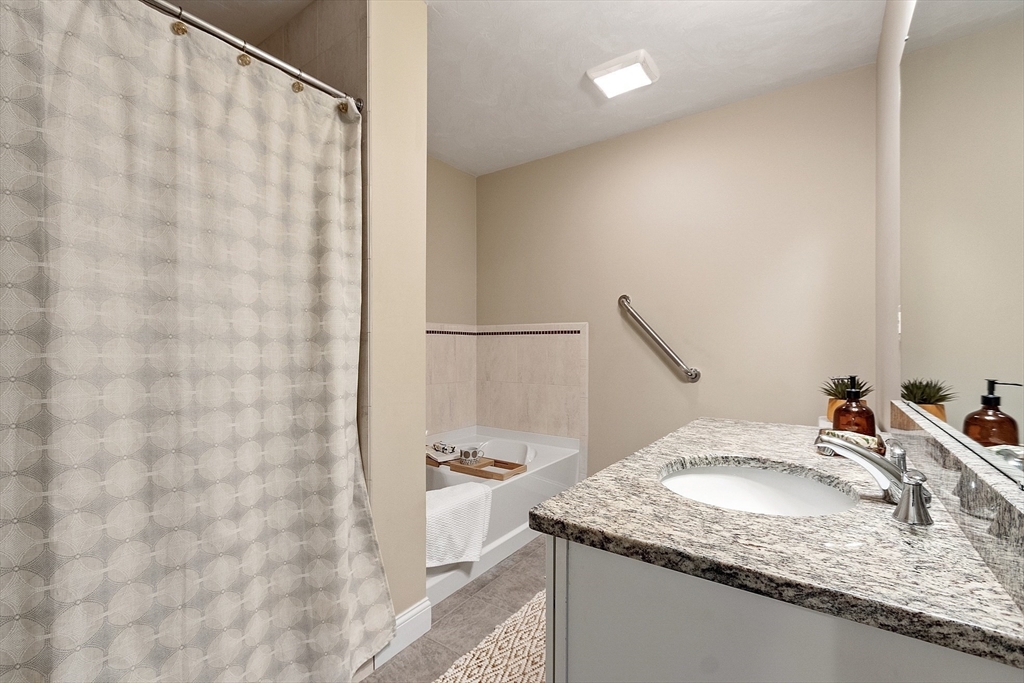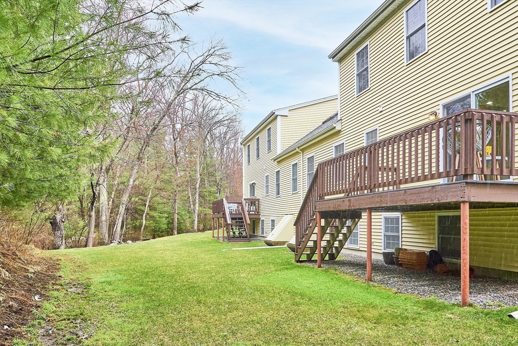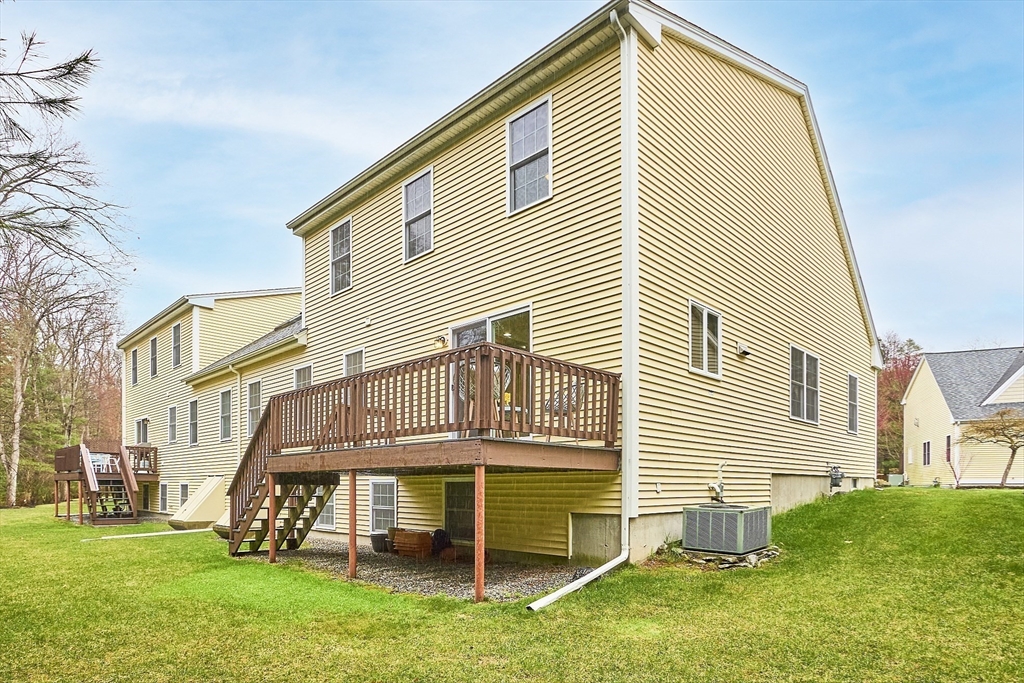 Welcome to this sunny and well-maintained end unit in Ellsworth Village, a 55+ community close to popular area amenities. The open concept floor plan features a large kitchen with stainless-steel appliances, plenty of storage, granite counters, vented range, and a functional island with seating. The spacious family room with a vaulted ceiling flows seamlessly into the dining room which creates an excellent spot to entertain. The first-floor primary suite contains a full bathroom with a tub and separate tile shower. The main level is completed by a half bathroom, laundry room, one car garage, and access to the private deck overlooking woods. The second floor offers a generous loft, another massive bedroom suite with a spacious walk-in closet and an en-suite bathroom, as well as a bonus room or office. This wonderful home also includes central air, central vacuum, gas heat, town water, and an unfinished basement that offers tons of storage space and a possible expansion opportunity.