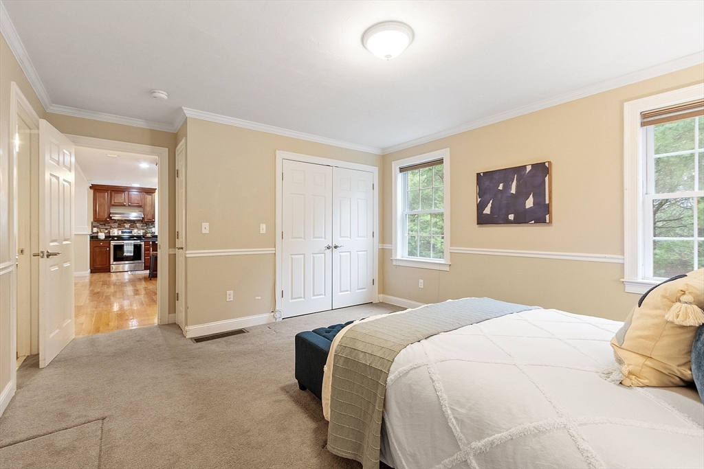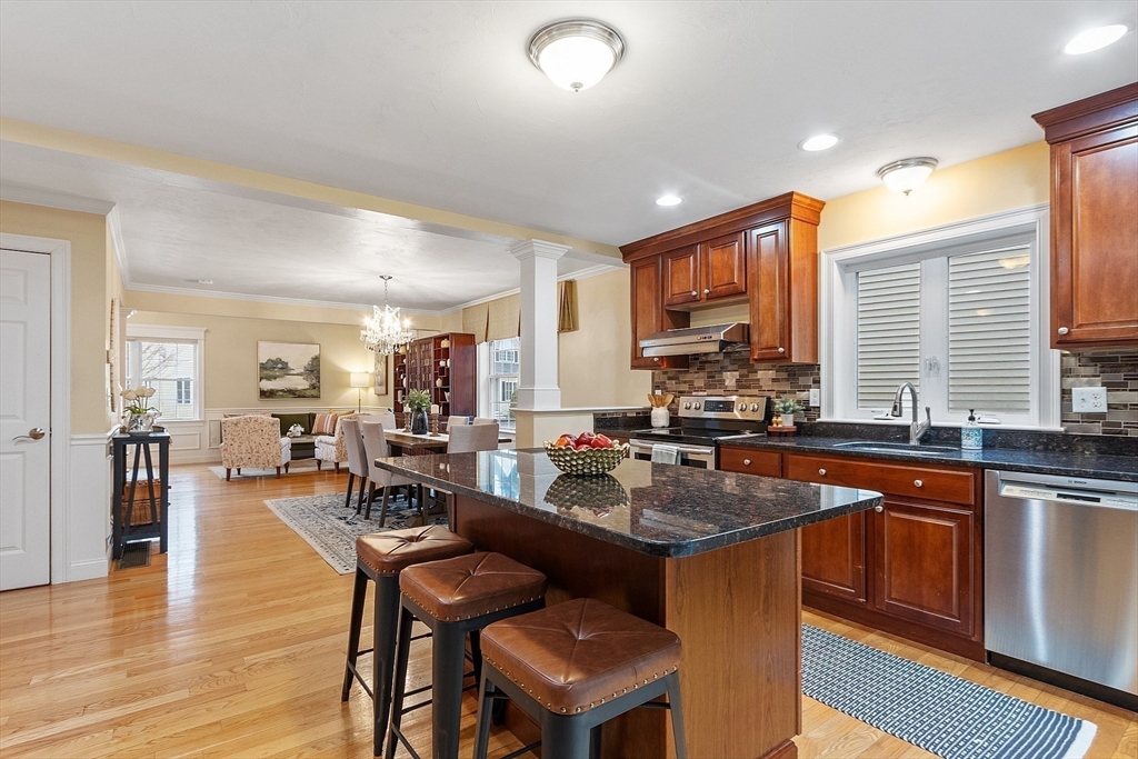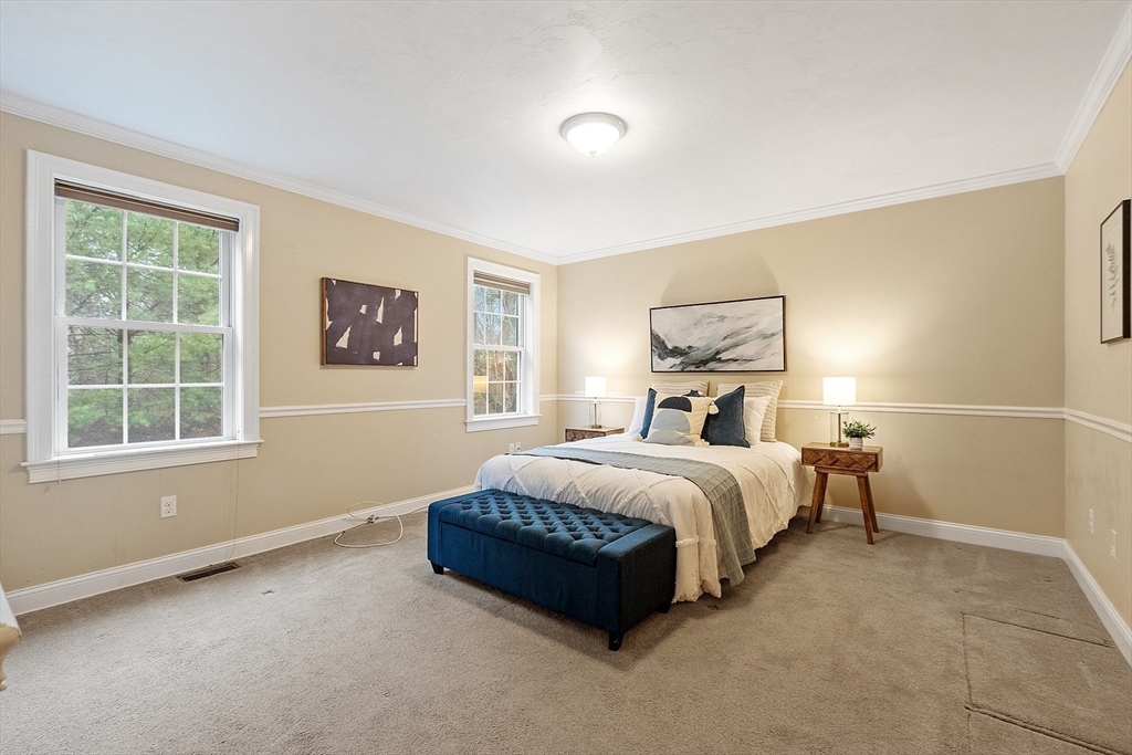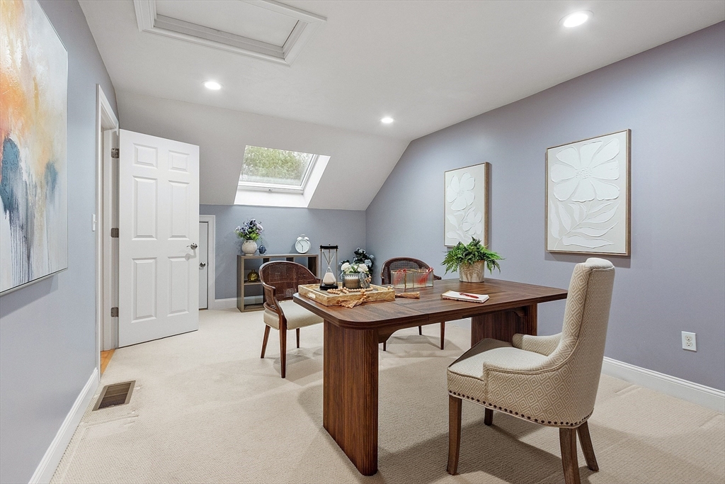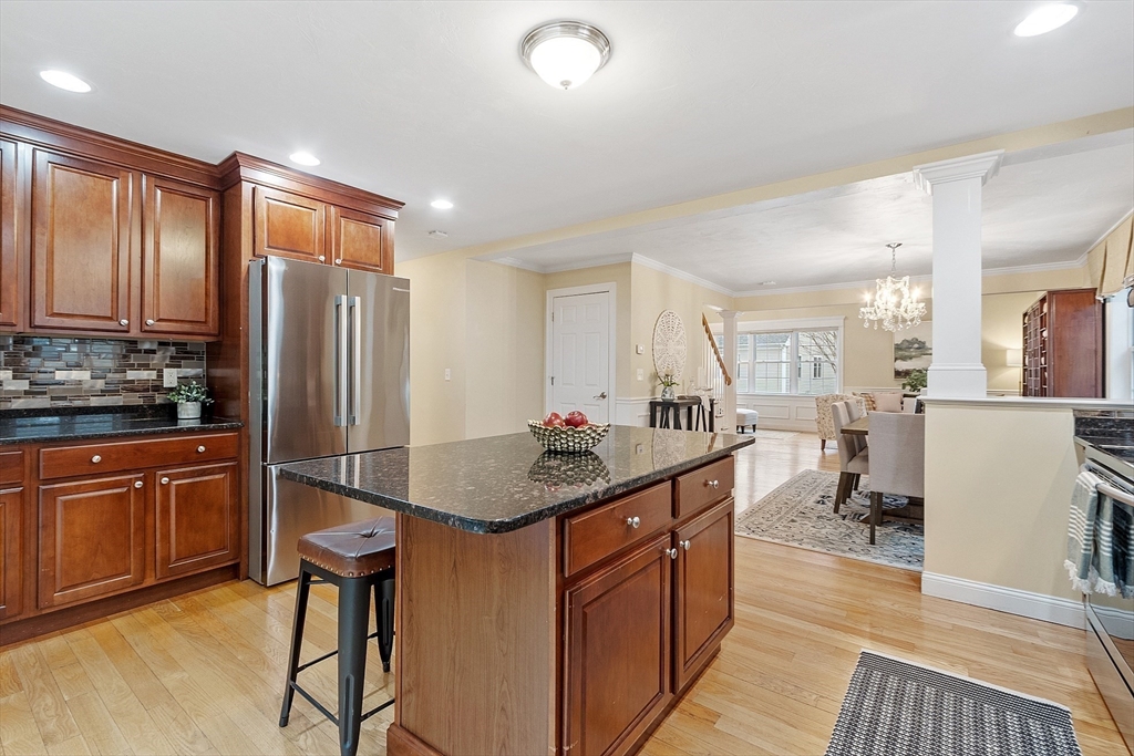 Welcome to this sunny and well-maintained end unit in Ellsworth Village, a 55+ community close to popular area amenities. The open concept floor plan features a large kitchen with stainless-steel appliances, plenty of storage, granite counters, vented range, and a functional island with seating. The spacious family room with a vaulted ceiling flows seamlessly into the dining room which creates an excellent spot to entertain. The first-floor primary suite contains a full bathroom with a tub and separate tile shower. The main level is completed by a half bathroom, laundry room, one car garage, and access to the private deck overlooking woods. The second floor offers a generous loft, another massive bedroom suite with a spacious walk-in closet and an en-suite bathroom, as well as a bonus room or office. This wonderful home also includes central air, central vacuum, gas heat, town water, and an unfinished basement that offers tons of storage space and a possible expansion opportunity.