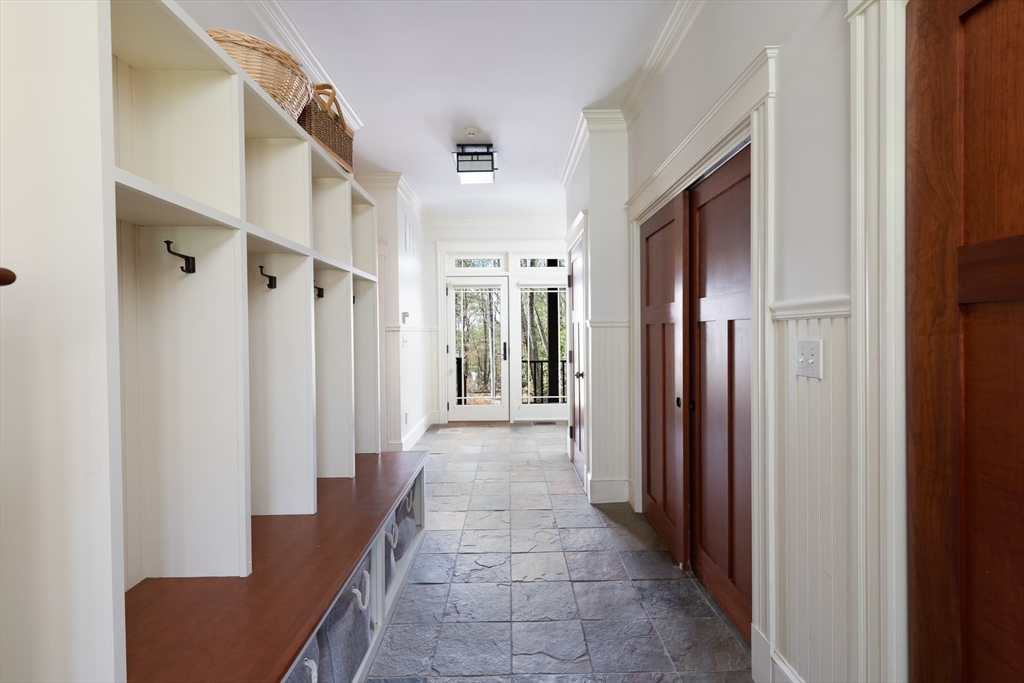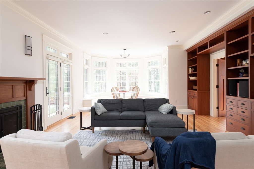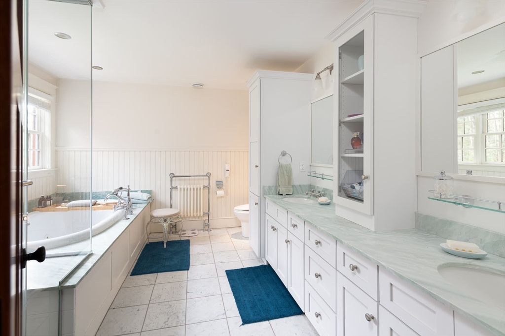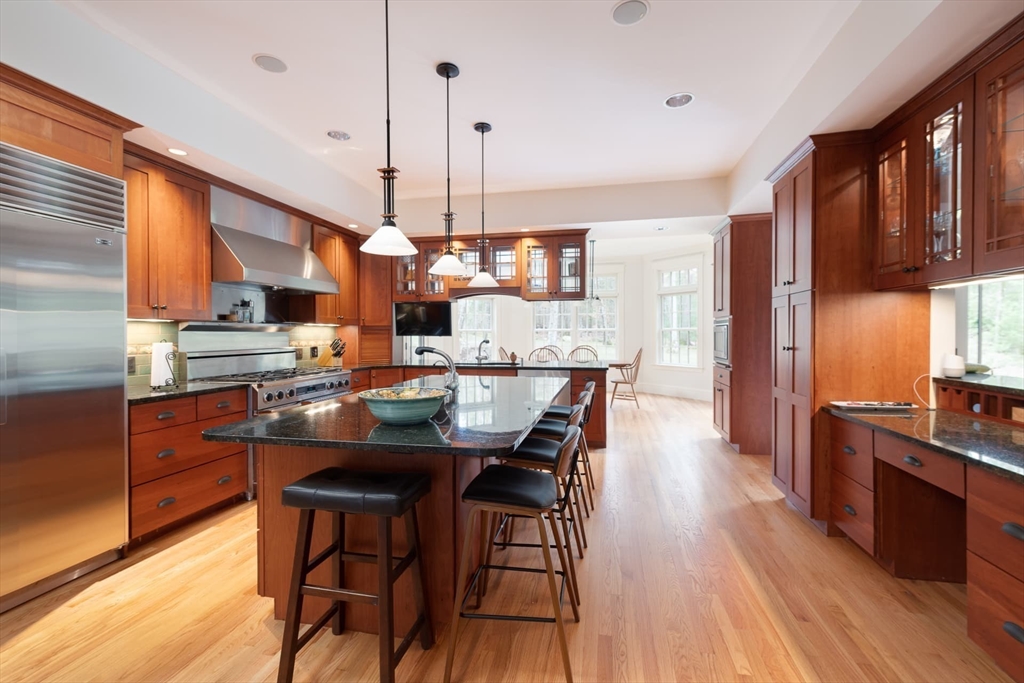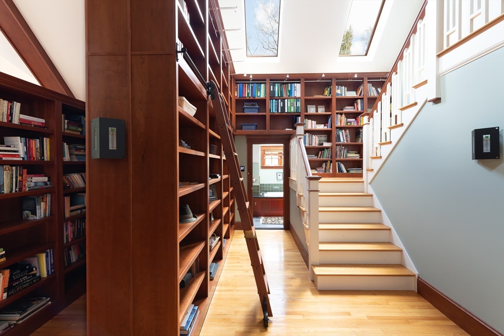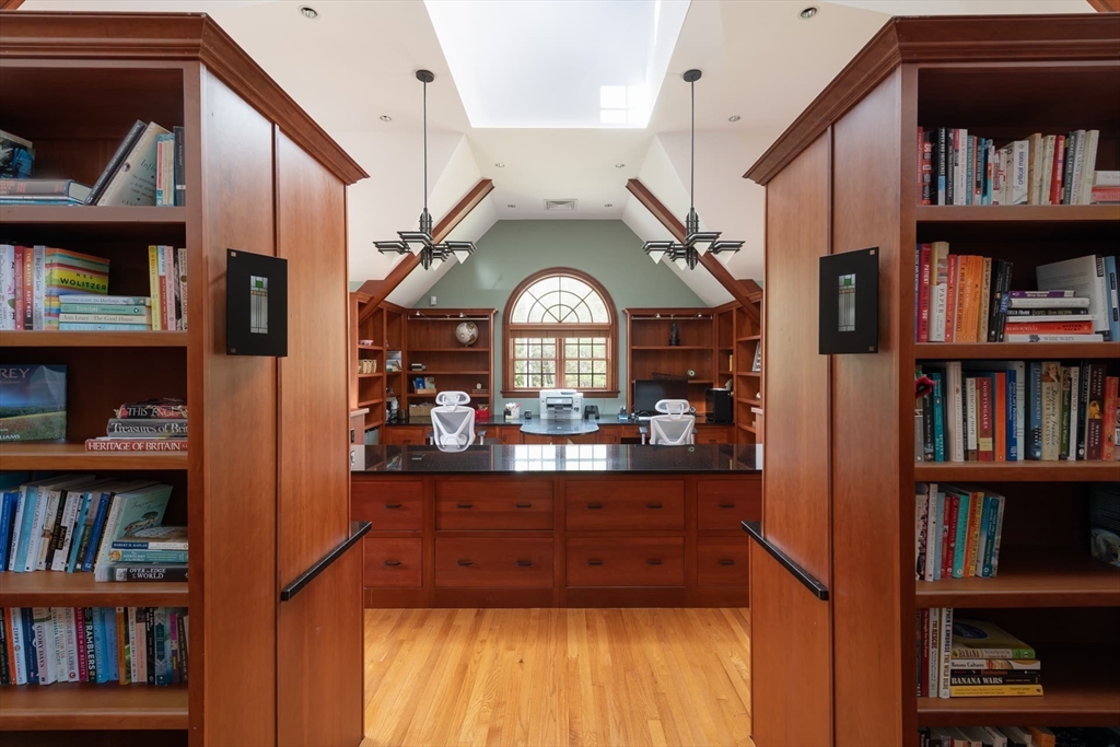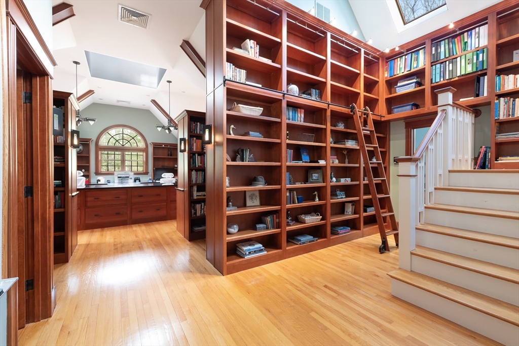 Elegant Arts and Crafts custom home with a two-story dream library and expansive backyard on a prime 2 acre lot in Kings Grant. Gourmet cook's kitchen with island and sunny eat-in-area opens to family room with fireplace, both with radiant heat. Banquet sized dining room and flexible living room space with full bath. Oversized mudroom with back stairs and exterior access. Expansive library with ladder, stacks, separate entrance, and full bath, bring work from home to a new level. Primary suite with all amenities. Three additional bedrooms, one ensuite, and two jack-and-jill. Large unfinished walk-up 3rd floor with excellent ceiling height. Second floor laundry. Finished lower level with exercise room, wine cellar, guest room with bath, recreation room and lots of storage. Large backyard with garden area and multiple seating scenes. Desirable Kings Grant neighborhood, with access to miles of trails. Top rated Weston Schools.