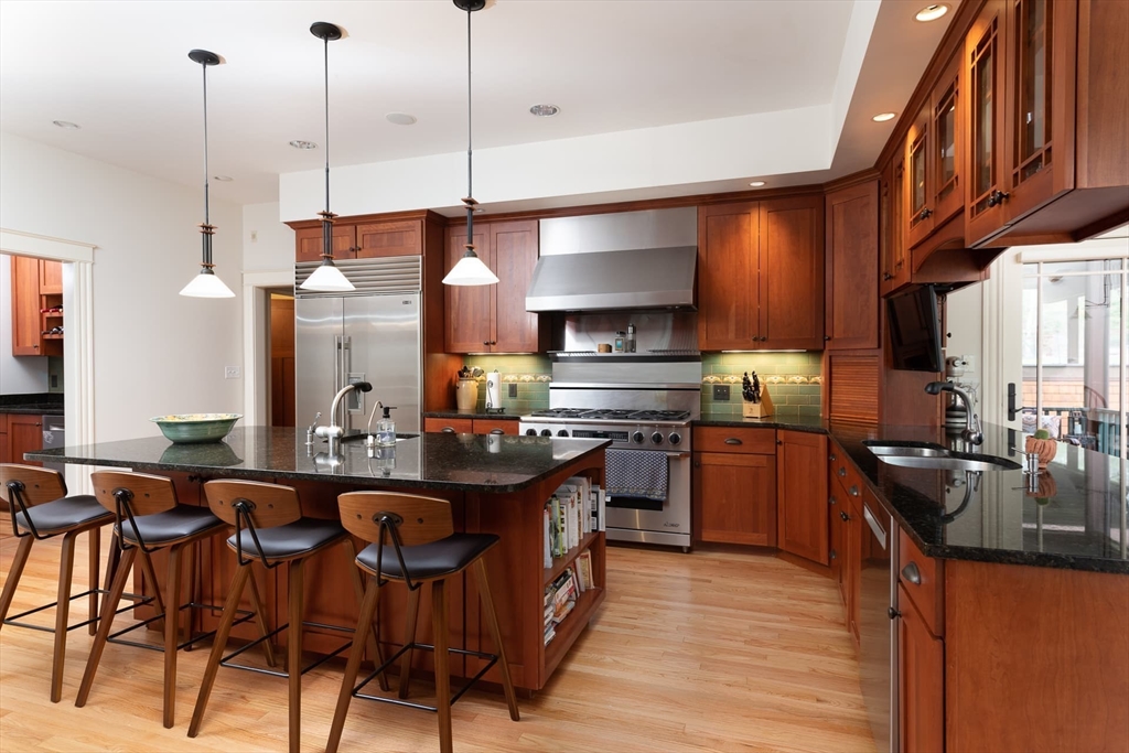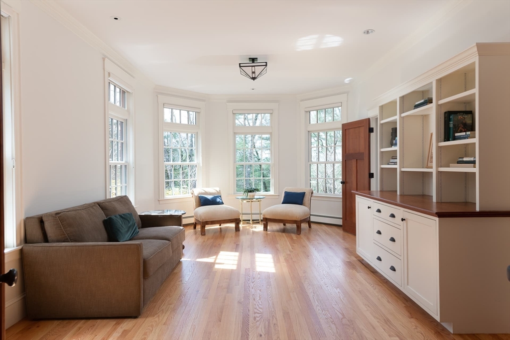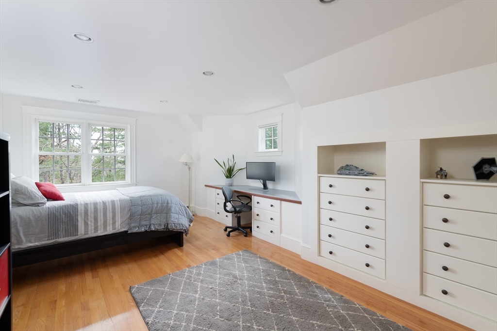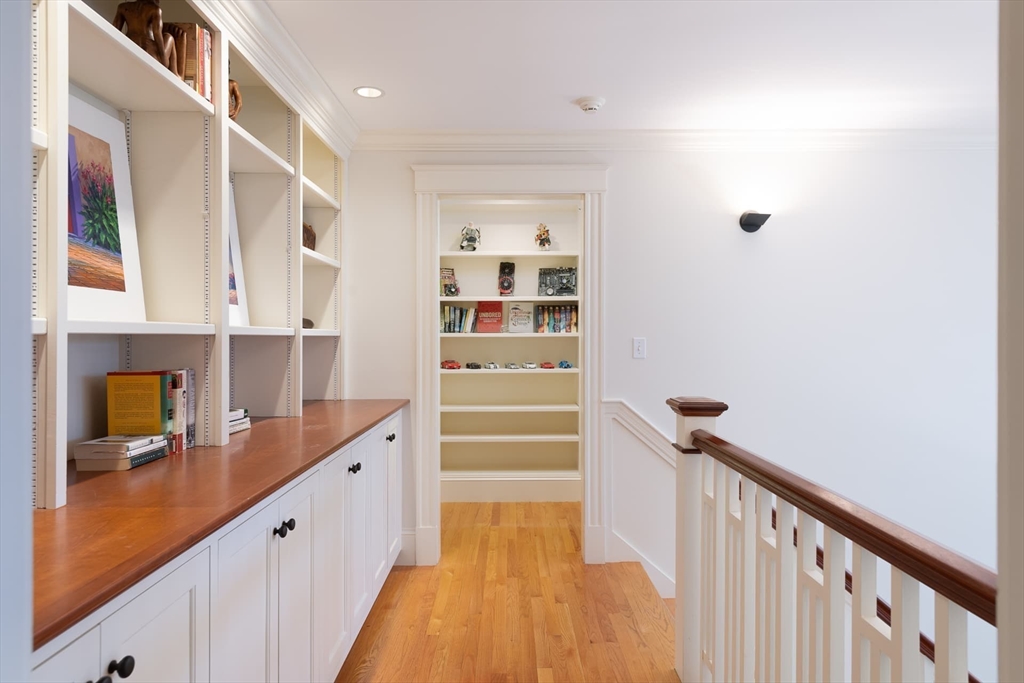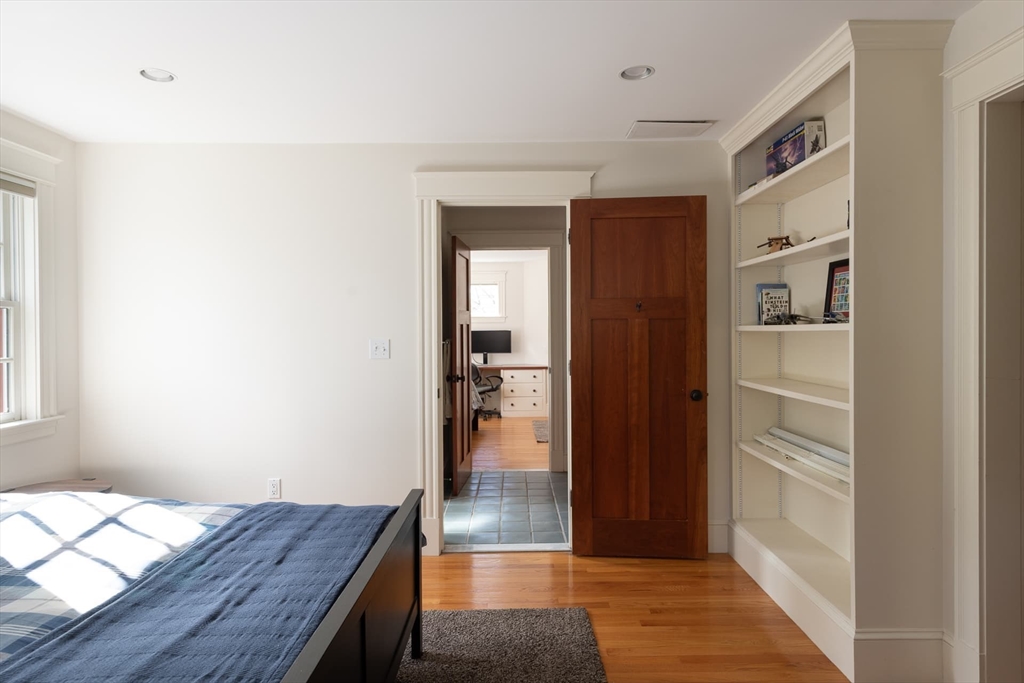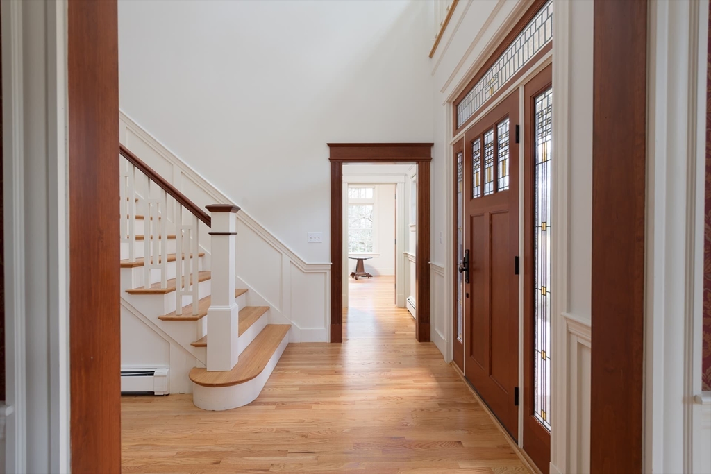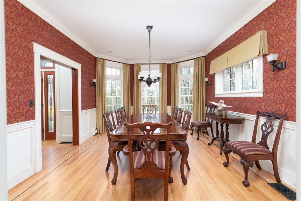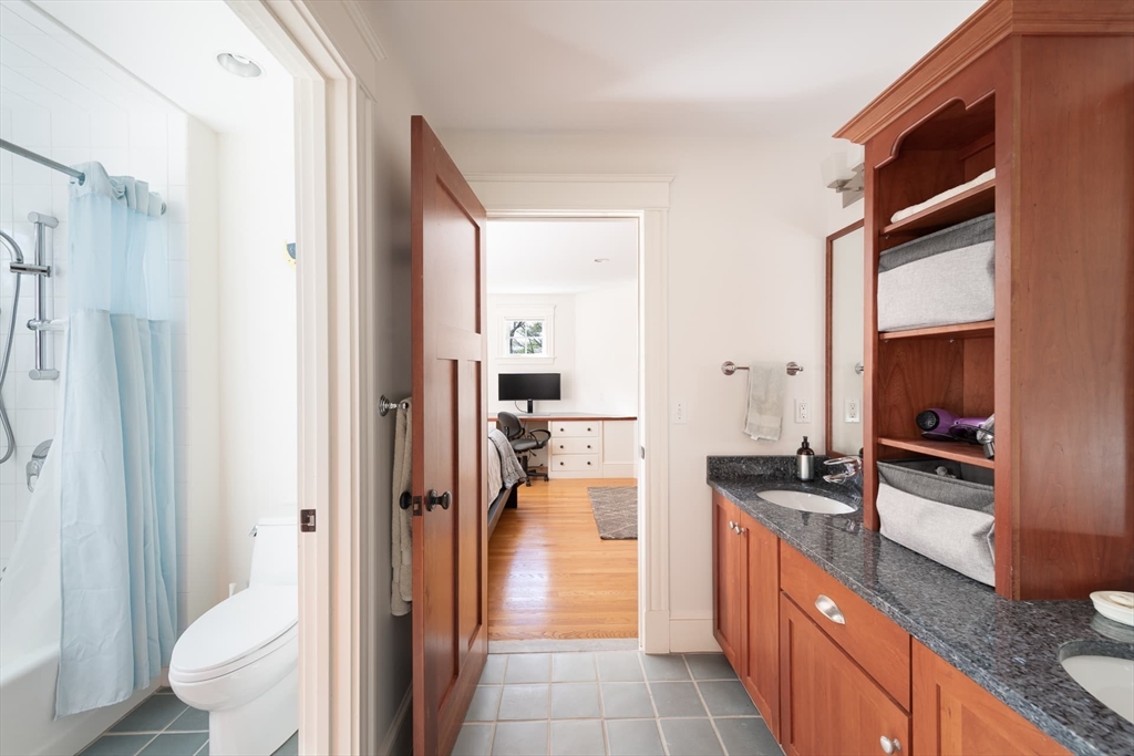 Elegant Arts and Crafts custom home with a two-story dream library and expansive backyard on a prime 2 acre lot in Kings Grant. Gourmet cook's kitchen with island and sunny eat-in-area opens to family room with fireplace, both with radiant heat. Banquet sized dining room and flexible living room space with full bath. Oversized mudroom with back stairs and exterior access. Expansive library with ladder, stacks, separate entrance, and full bath, bring work from home to a new level. Primary suite with all amenities. Three additional bedrooms, one ensuite, and two jack-and-jill. Large unfinished walk-up 3rd floor with excellent ceiling height. Second floor laundry. Finished lower level with exercise room, wine cellar, guest room with bath, recreation room and lots of storage. Large backyard with garden area and multiple seating scenes. Desirable Kings Grant neighborhood, with access to miles of trails. Top rated Weston Schools.