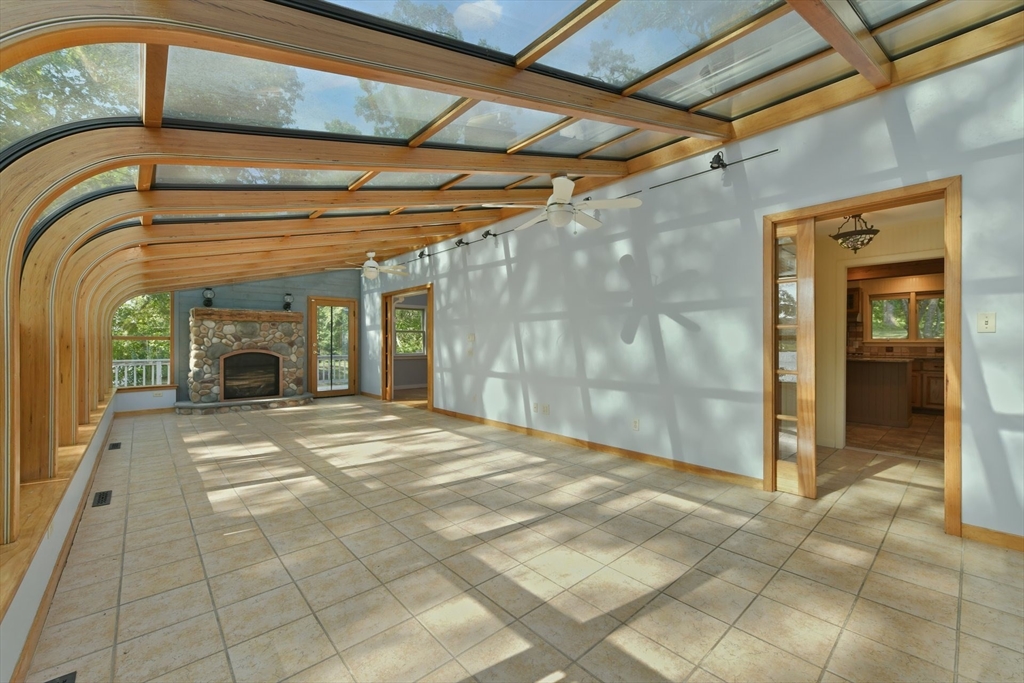 A rare offering on the East Branch of the Westport River, this refined waterfront retreat blends architectural charm with natural beauty. Once a summer cottage, it’s now a sophisticated year-round home filled with light and walls of glass. A dramatic solarium with hardwood floors and a gas fireplace welcomes you, while a private footbridge leads to one of three decks overlooking the river. The chef’s kitchen—updated 2021–2024—features a Wolf cooktop, double ovens, new dishwasher, handcrafted cabinets with stained glass, granite counters, island, and desk. The adjacent living room boasts vaulted ceilings, hardwood floors, and a wood-burning fireplace. A 13' x 31' great room anchors the home with sweeping 180° river views and a striking gas fireplace. Three bedrooms include a lower-level suite with walk-out patio access. With two full baths, a private dock, and serene setting, this is one of Westport’s most picturesque waterfront properties.