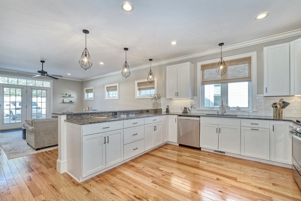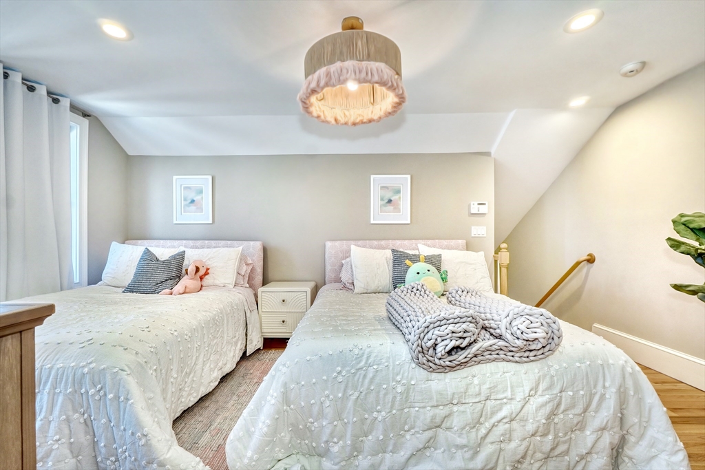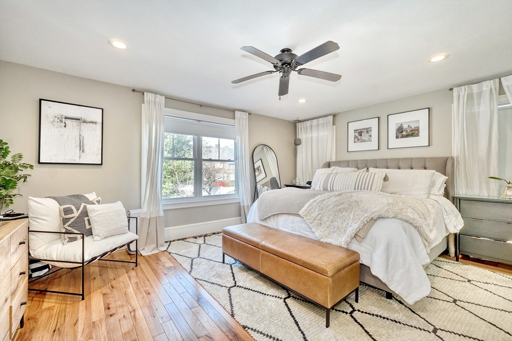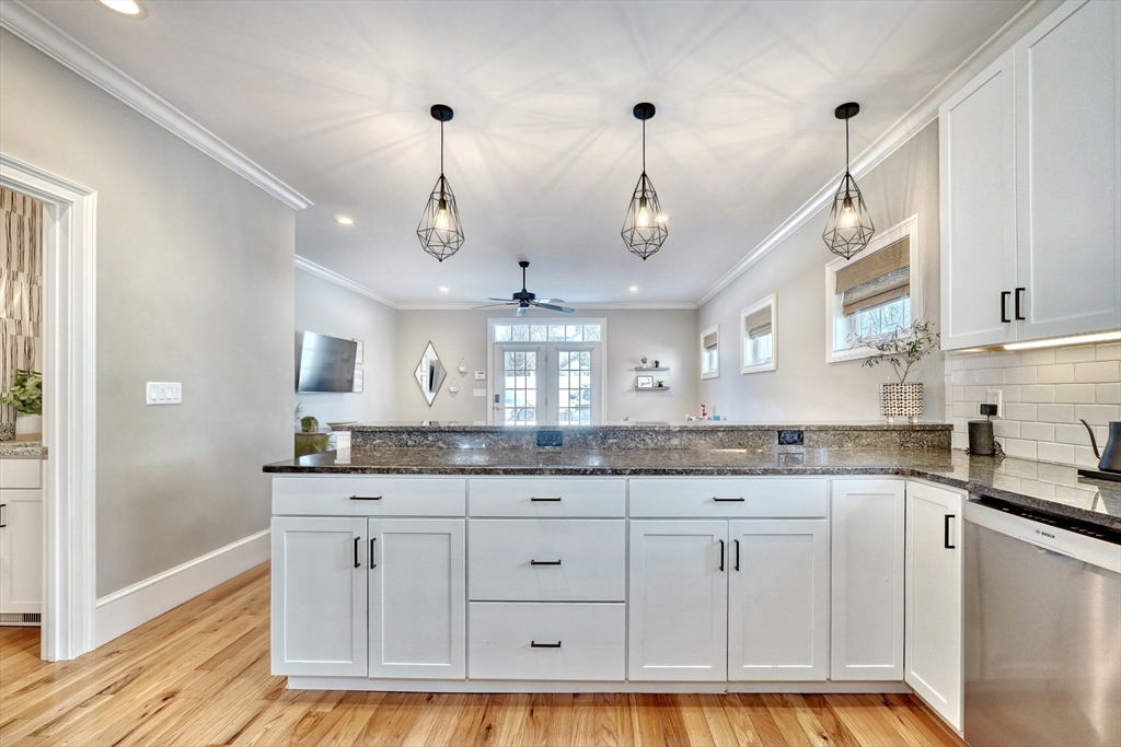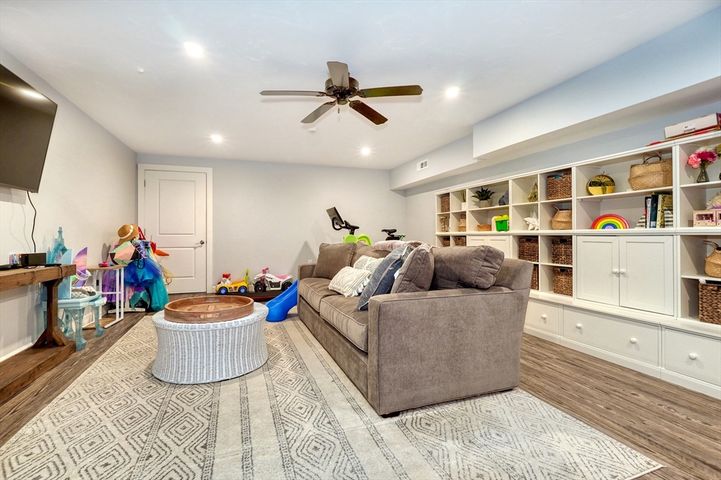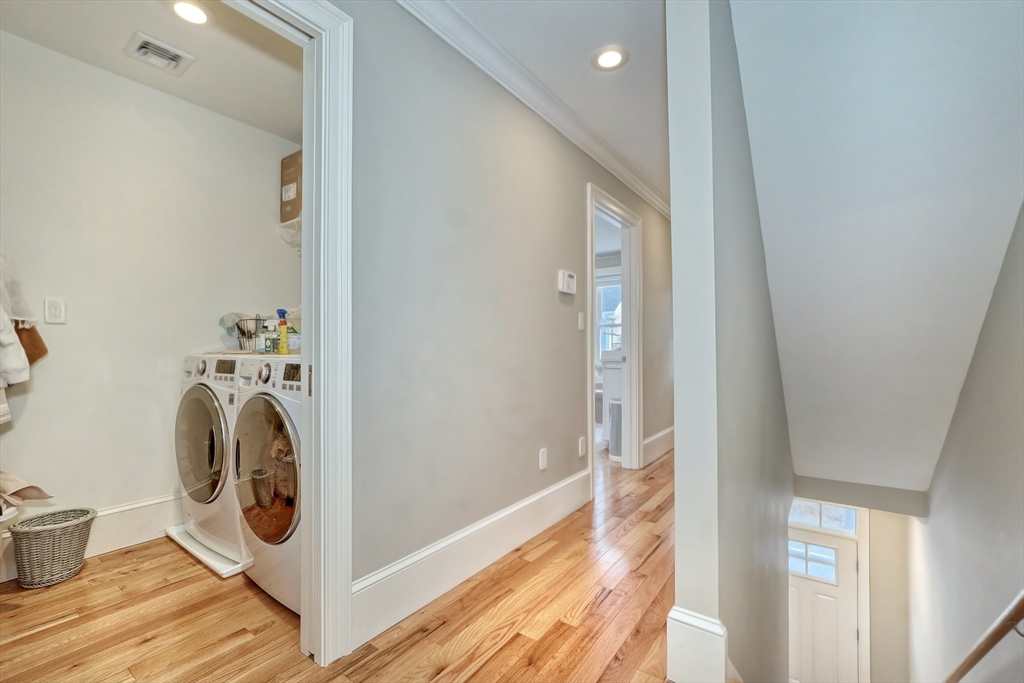 Location, location, location! This luxury downtown townhome offers unbeatable convenience just steps to Main Street, new library, post office, grocery store, commuter rail, and bus line. Featuring 10 rooms, 3 bedrooms, and 3.5 baths, this home combines space and style with soaring ceilings and an open-concept layout. The white kitchen with granite counters and stainless appliances flows into a spacious living room with access to a private patio and two parking spots. A flexible front room functions as a dining area, office, or playroom. The second floor includes two bedrooms with en-suite baths, including a primary suite with walk-in closet and laundry room. The third floor offers a large bedroom with full bath and walk-in closet—perfect for guests or extended family. Finished lower level includes a family room and two additional storage rooms. A rare find in an ideal downtown location!