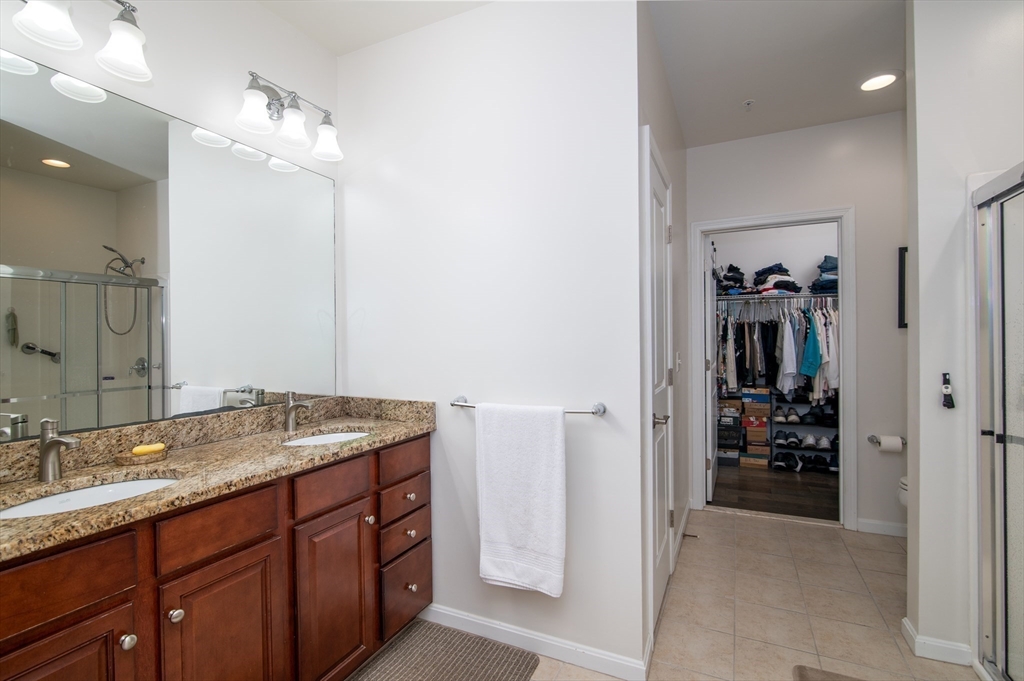 Stunning, spacious, well maintained 2 bedroom, 2 full bath unit with all the bells and whistles. Features include in unit laundry, tons of storage space, eat-in kitchen with beautiful, granite counter tops and separate, formal dining area if desired. The fabulous, sun drenched, unit has high ceilings with attractive, crown molding, living room with slider to balcony. Jaw dropping, primary bedrooms with adjoining huge bathroom with its double vanities, soaking tub, separate, walk-in shower, and enormous walk in closet. The complex offers private clubhouse with theater room, fitness room, in-ground pool, tennis courts, and walking trails throughout professionally maintained landscaping. This community is a commuter dream location with its close proximity to highways, public transportation, grocery stores, shopping, and many restaurants.
