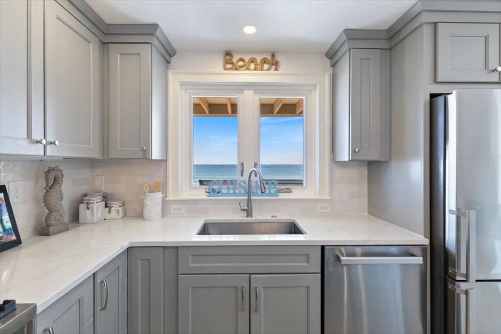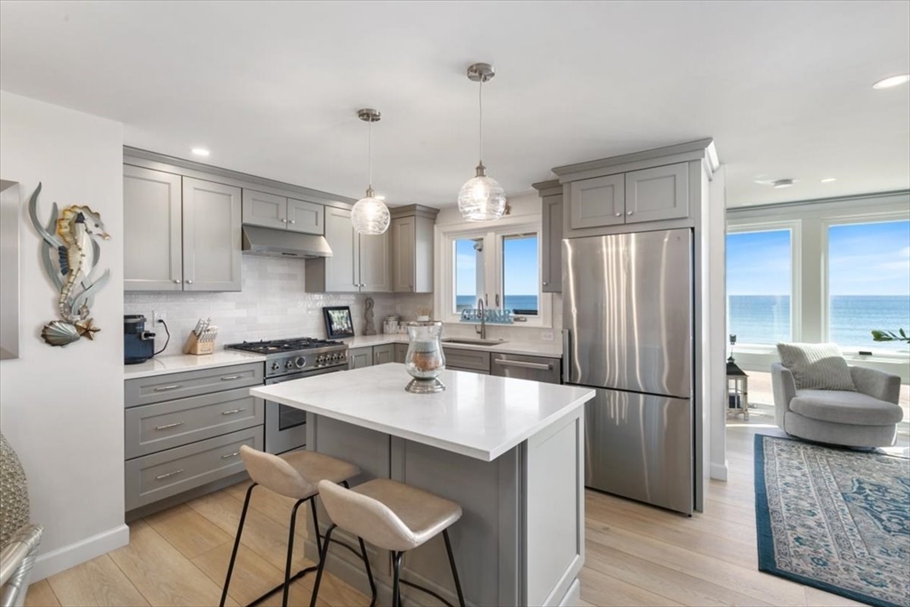 Stunning Direct Beachfront Penthouse Condominium. Experience luxury coastal living in this exquisite two-level penthouse-style condominium featuring 4 spacious bedrooms and 2 beautifully appointed bathrooms. Completed in 2023, this brand-new residence showcases modern design, high-end finishes, and top-of-the-line appliances. Enjoy unobstructed ocean views and direct beachfront access from this rare offering on the quieter side of the beach—perfect for summer retreats or year-round living. The open-concept main level features soaring ceilings, abundant natural light, and a gourmet kitchen ideal for entertaining. A cozy gas fireplace adds warmth and charm for cooler coastal evenings. Relax on either of your 2 private balconies while listening to the waves. Ideally located near local restaurants, shopping, and entertainment, this home offers a perfect blend of peace and convenience. Whether you're seeking a primary residence, vacation getaway, or investment, this luxury condo has it all.