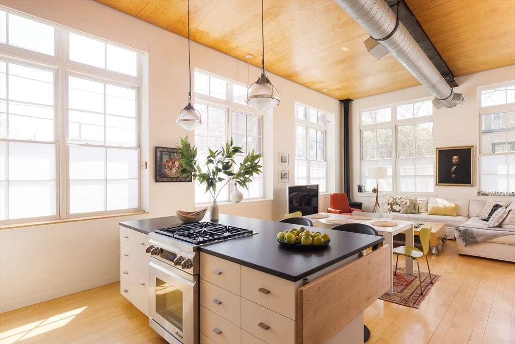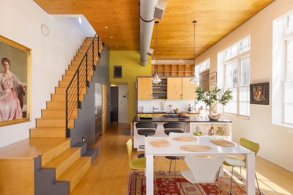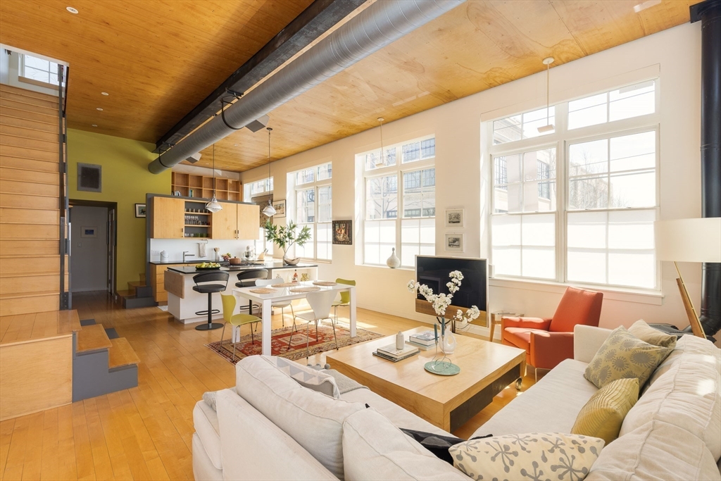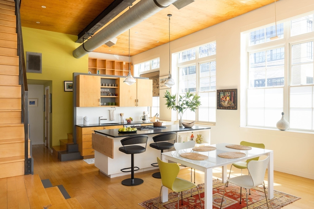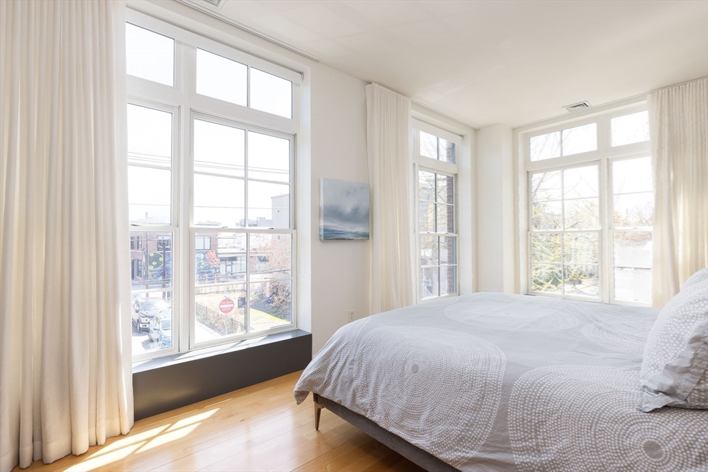 Glamorous and dramatic true loft. Close to MIT, Kendall Square, the T, the shops & restaurants of Central Square, BU, and Harvard. Luxurious sun-filled SE 6-room condo in magnificently renovated early 20th-century industrial building. Corner unit with immense windows. Elegant contemporary design. Quality architectural features and custom-built cabinets & closets. Kitchen with granite countertops & SS appliances. Dramatic, high ceilings and vast open spaces. Comfortable floor plan with expansive entertaining and living areas. Easy traffic flow. Multiple light exposures. Lovely hardwood floors. Central AC. Cross-ventilation. 2 generous bedrooms plus 2 separate study areas. Superb principal suite with beautiful bath, walk-in closets. Laundry. Large private rooftop terrace with city views. Common landscaped courtyard. Deeded parking. High owner-occupancy. Brand-new roof. Professionally managed. Rare & beautiful residence close to everything. Walk score 87!