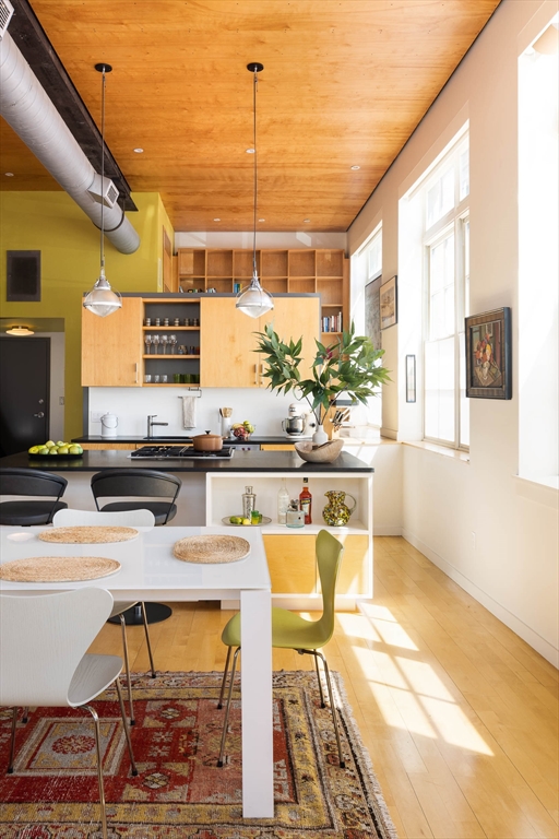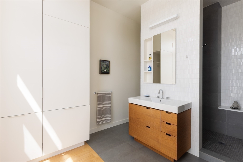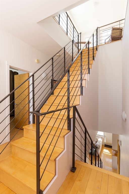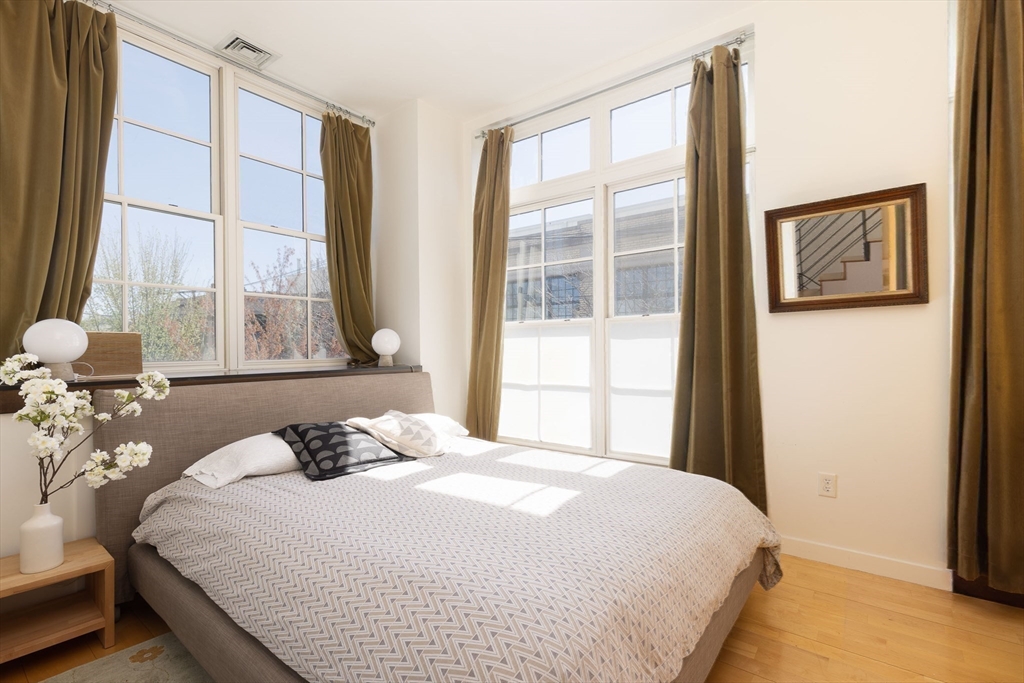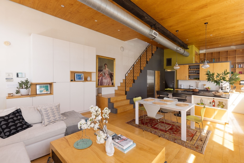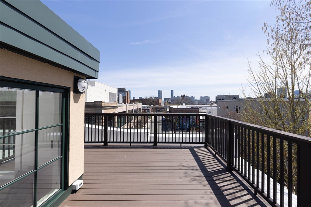 Glamorous and dramatic true loft. Close to MIT, Kendall Square, the T, the shops & restaurants of Central Square, BU, and Harvard. Luxurious sun-filled SE 6-room condo in magnificently renovated early 20th-century industrial building. Corner unit with immense windows. Elegant contemporary design. Quality architectural features and custom-built cabinets & closets. Kitchen with granite countertops & SS appliances. Dramatic, high ceilings and vast open spaces. Comfortable floor plan with expansive entertaining and living areas. Easy traffic flow. Multiple light exposures. Lovely hardwood floors. Central AC. Cross-ventilation. 2 generous bedrooms plus 2 separate study areas. Superb principal suite with beautiful bath, walk-in closets. Laundry. Large private rooftop terrace with city views. Common landscaped courtyard. Deeded parking. High owner-occupancy. Brand-new roof. Professionally managed. Rare & beautiful residence close to everything. Walk score 87!
