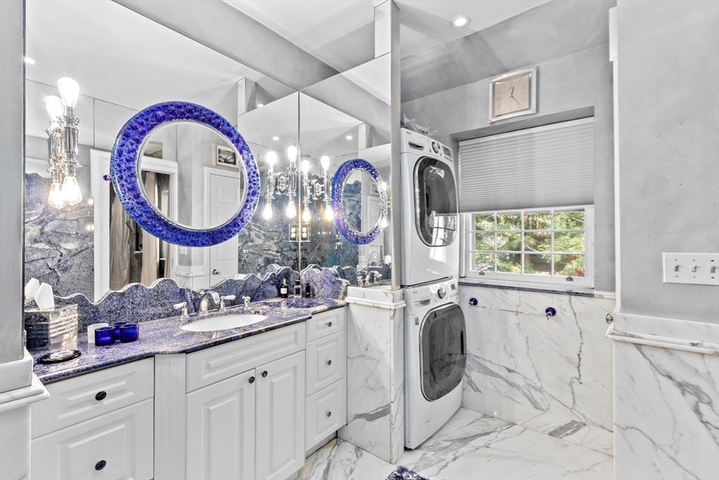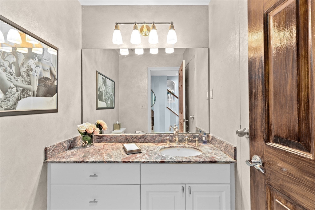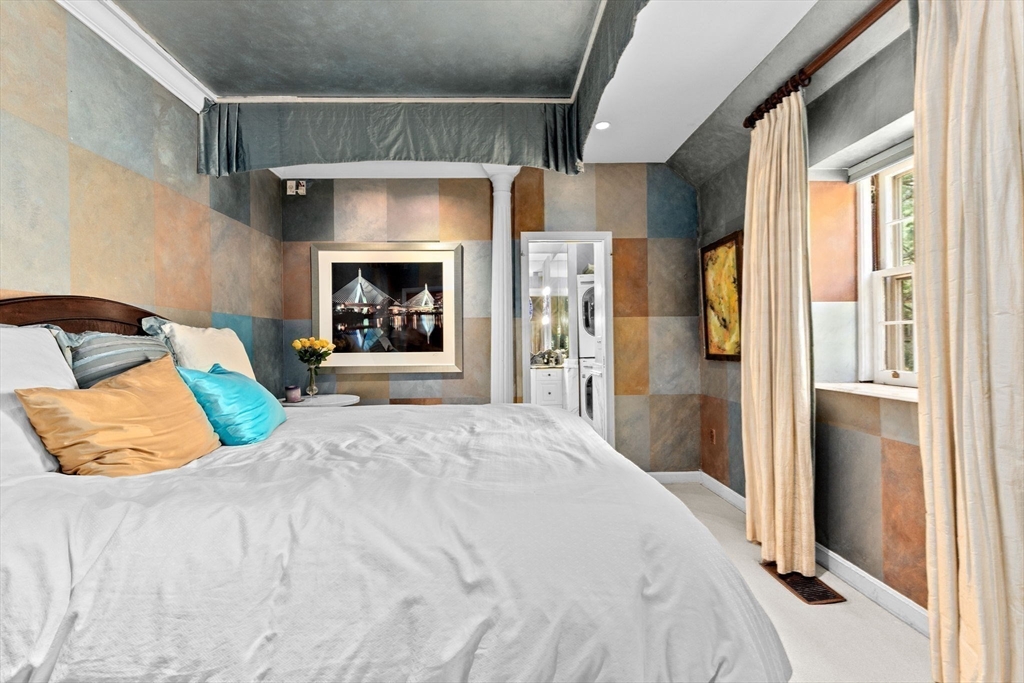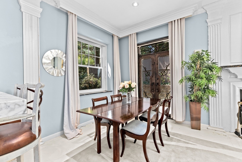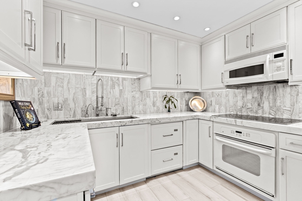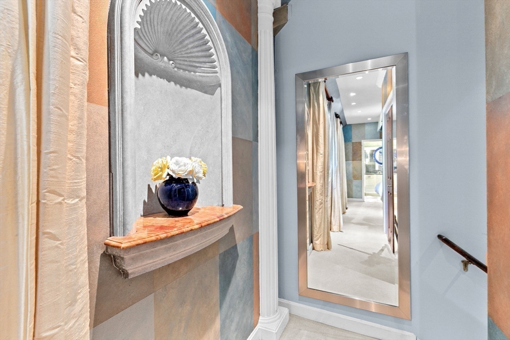 Welcome to the quintessence of sophistication at Olmstead Park. This exquisite 1-bedroom, 1.5-bathroom unit is a haven of elegance, spanning 991 sq ft. Step into the inviting living room, where high ceilings & a sky light & fp illuminate the space, seamlessly flowing into a serene bluestone patio - perfect for unwinding or entertaining. The open dining area complements a pristine white kitchen, featuring a granite peninsula ideal for culinary creations. Convenience meets luxury with a 1/2 bath & a versatile closet space that accommodates a cozy desk setup. Ascend to the 2nd floor to discover a peaceful bedroom retreat, complete with ample closet space & an opulent renovated bathroom adorned with granite counters, including a washer & dryer for ultimate ease. Central a/c, add'l storage & an assigned parking space ensure comfort & convenience. The property offers lofty windows, an exercise room, & a superintendant service. Located minutes from Longwood Medical Area, shops & more!