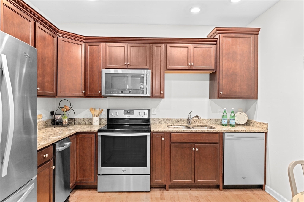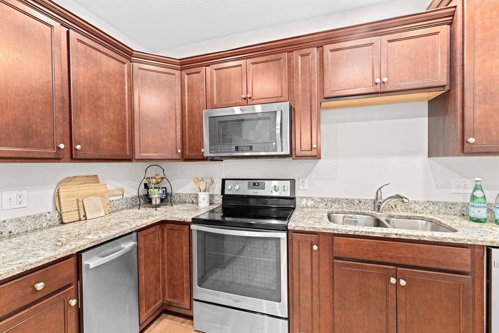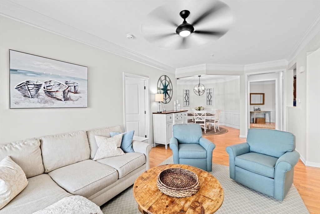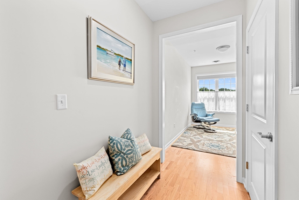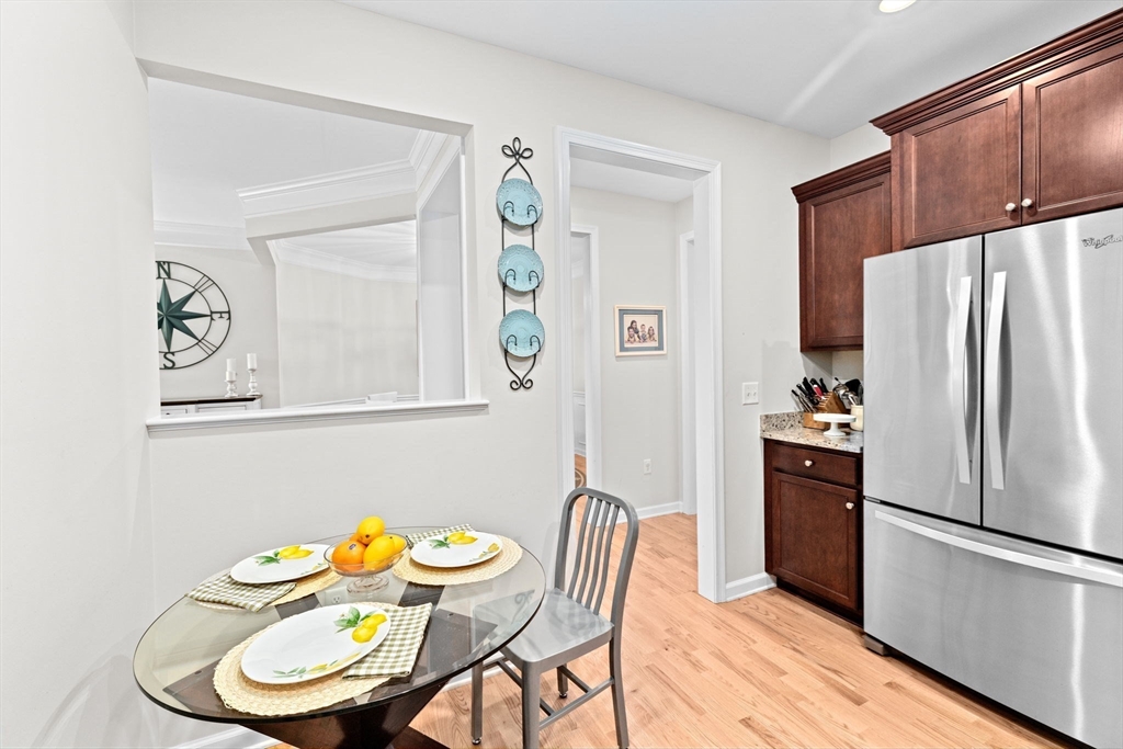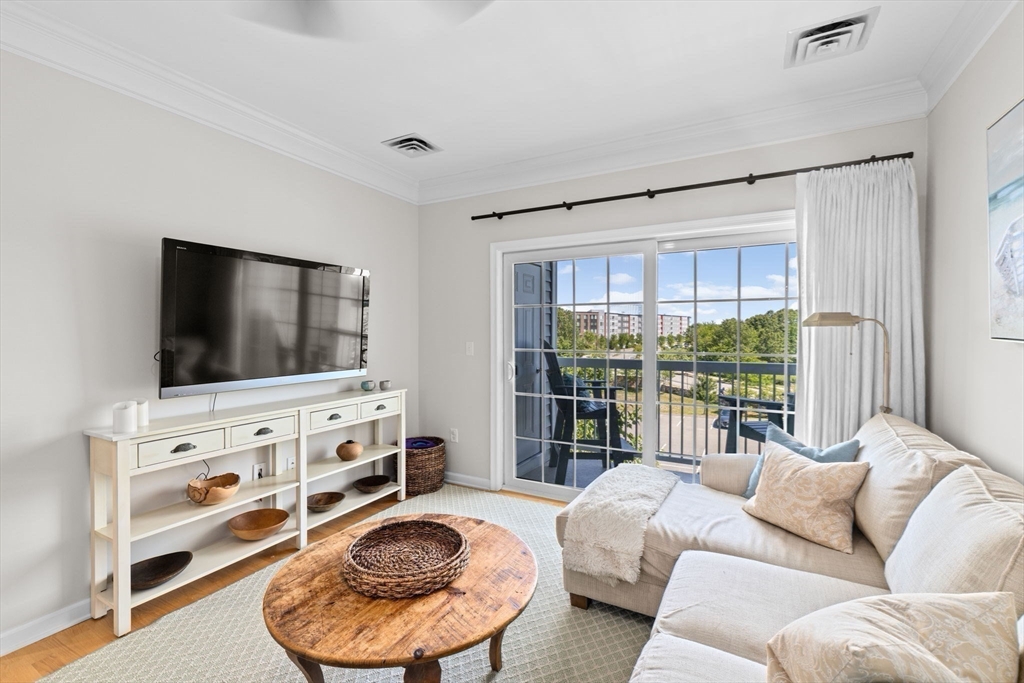 Welcome home to this expansive, light and bright corner unit at Woodstone Crossing! The open concept, spacious 1475 sq. ft. unit features high ceilings, gleaming hardwoods, and abundant natural light and views throughout. The large living room and private balcony overlooks woods and miles of walking and biking trails. A stunning, entertainment sized, octagonal dining room features crown and panel molding. Love cooking/entertaining in your chef's eat-in kitchen. Relax at the end of the day in the large, private Primary Suite w/ walk-in closet, soaking tub, shower, double sink vanity. Plenty of room for family/ guests in the 2nd bedroom, full bath, and a separate office/den. A welcoming foyer, mud room, and large in-unit laundry room completes this amazing unit. The property is pet-friendly and comes with two deeded parking spots. Union Point offers easy commuting to Boston with a walk-to commuter rail station or easy highway access. The perfect spot for both convenience and comfort!