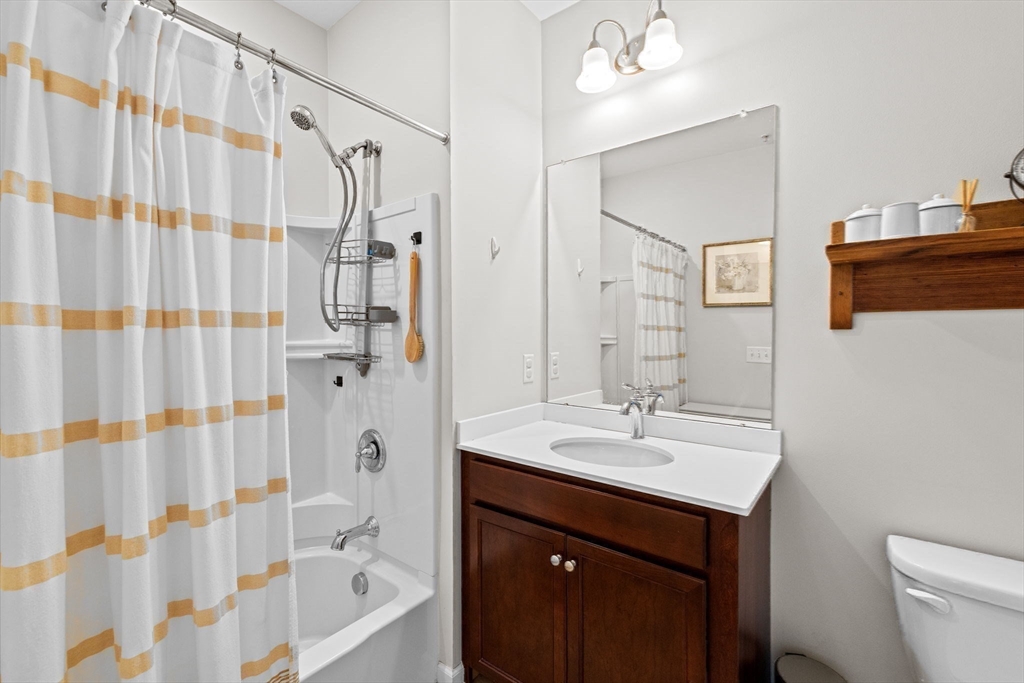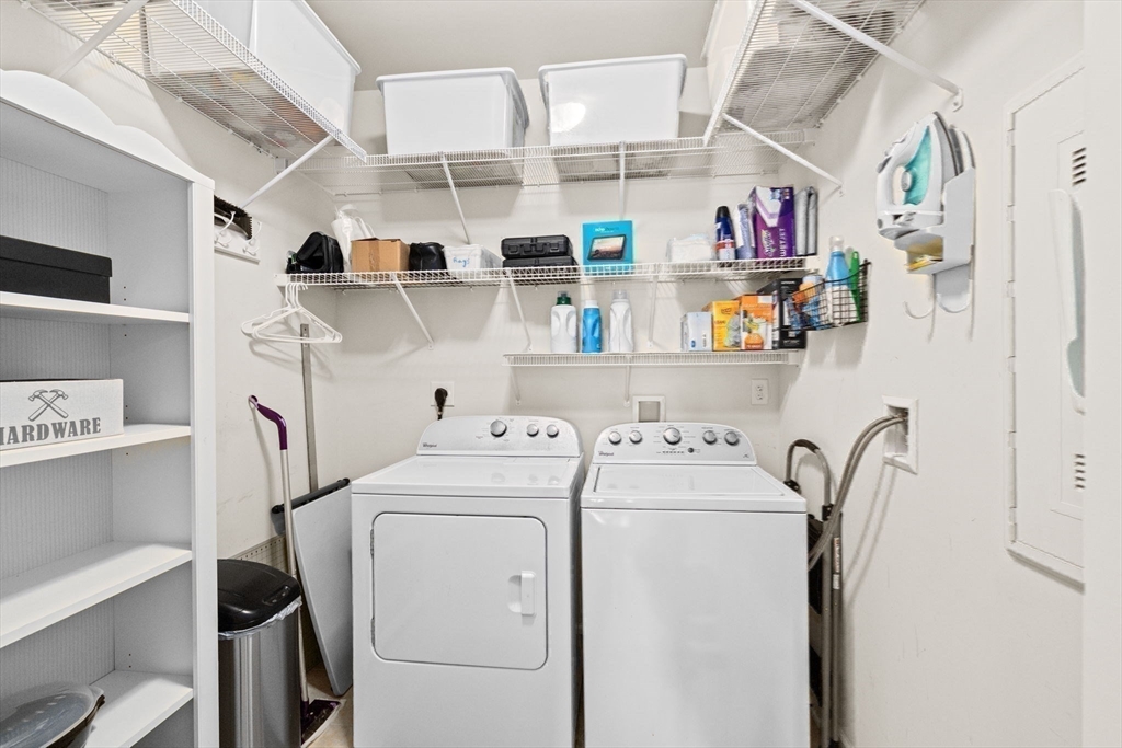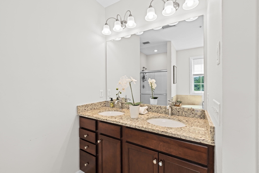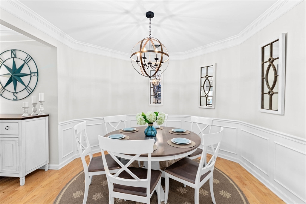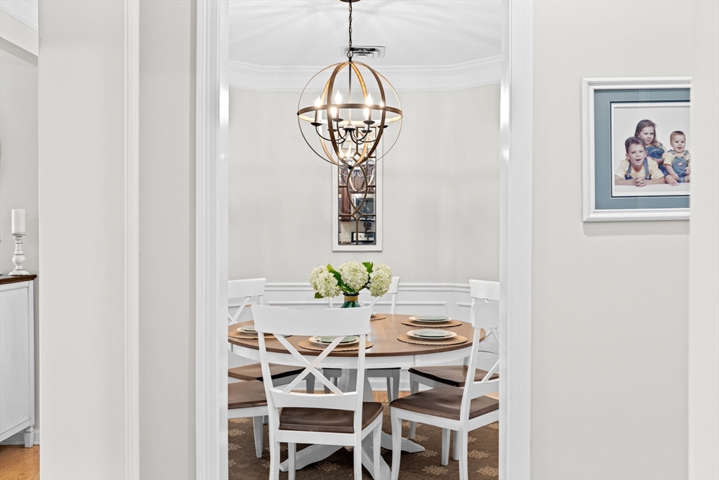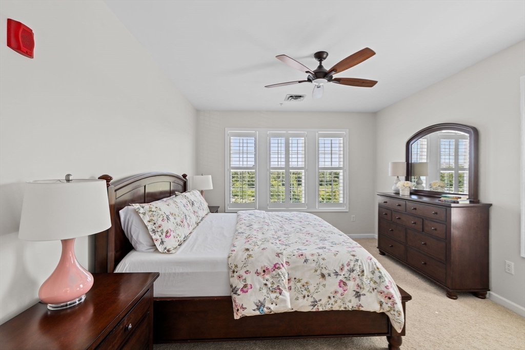 Welcome home to this expansive, light and bright corner unit at Woodstone Crossing! The open concept, spacious 1475 sq. ft. unit features high ceilings, gleaming hardwoods, and abundant natural light and views throughout. The large living room and private balcony overlooks woods and miles of walking and biking trails. A stunning, entertainment sized, octagonal dining room features crown and panel molding. Love cooking/entertaining in your chef's eat-in kitchen. Relax at the end of the day in the large, private Primary Suite w/ walk-in closet, soaking tub, shower, double sink vanity. Plenty of room for family/ guests in the 2nd bedroom, full bath, and a separate office/den. A welcoming foyer, mud room, and large in-unit laundry room completes this amazing unit. The property is pet-friendly and comes with two deeded parking spots. Union Point offers easy commuting to Boston with a walk-to commuter rail station or easy highway access. The perfect spot for both convenience and comfort!