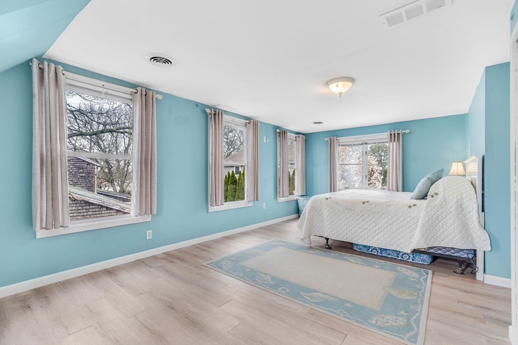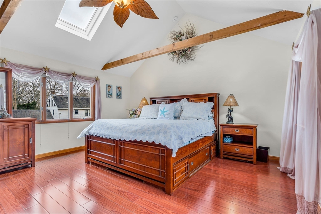 LOOK HOW CLOSE YOU ARE TO BEACH! Open House Sat 8/23 11:00-1:30. If you’ve dreamed of endless beach days & relaxing evenings under the stars, this Cape Cod gem is for you. Just seconds! to the sand, this 5-bedroom beauty pairs classic coastal charm w/ a backyard built for entertaining. Huge sunny inviting living room w/ a brick fireplace, hardwood floors & a lounging window seat. Tons of cabinets and countertops in the kitchen. Main-level bedroom w/ adjacent full bath great for guests or single-floor living. Four Large additional bedrooms upstairs, perfect for family or hosting. Two full bathrooms. Hardwood floors, fresh paint & central A/C throughout. Additional rooms in basement. Ample parking driveway & shed for storage. Gorgeous full patio in the backyard and a Built-in outdoor kitchen w/ grill, sink Microwave, fridge. perfect for meals outside or gathering by the fire. Outdoor shower to rinse off after day at beach. Minutes to the ferries, to the island