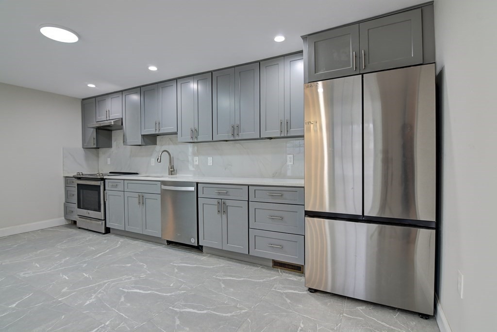 NEWLY RENOVATED HALF-DUPLEX IN DESIRABLE MALDEN LOCATION!! Location! Location! Beautiful, large newly renovated half-duplex (left unit) close to Malden Center T and steps away from Malden High School! Located on a quiet one-way street! This left unit features 8 rooms, 4 generously-sized bedrooms, and 4 full bathrooms spanning 3 levels of living space. 1st floor features a beautiful, modern kitchen with quartz countertops and brand new stainless steel appliances as well as a large flex room that can be used as office/den/etc. The 4 bedrooms, including 2 master bedrooms with master bathrooms, span the second and top/third floors. Unit also features new central HVAC, new heating, new flooring, recessed lighting, and in-unit washer and dryer. New driveway further adds to property's curb appeal. Long driveway and garage providing some parking spaces. This property is equally attractive as an investment property or owner-occupied home!! Don't miss out on this gem!!