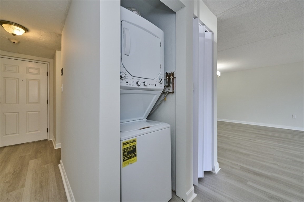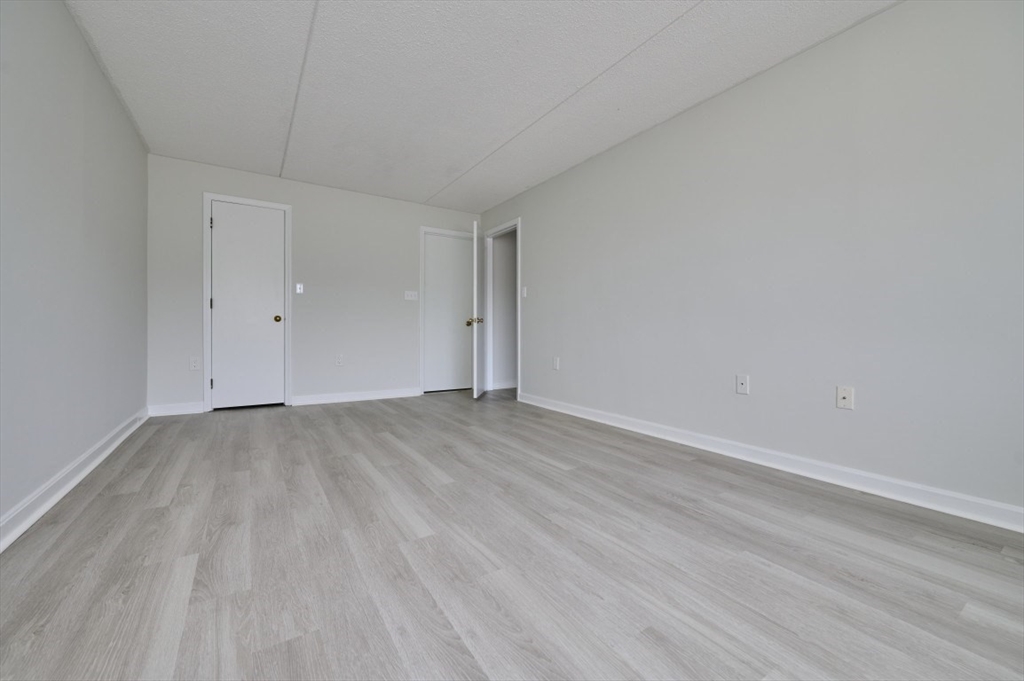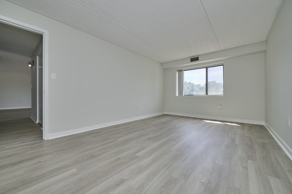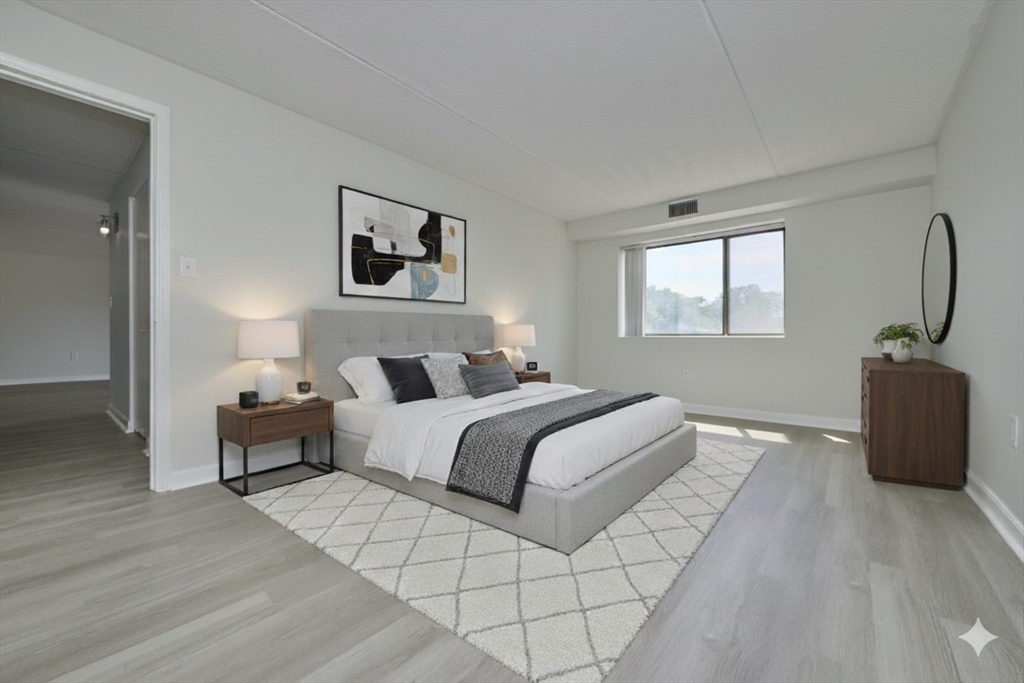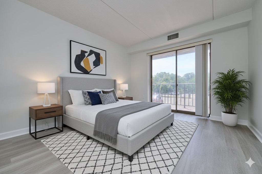Welcome to this beautifully updated, south-facing condo, a sun-drenched oasis in a prime Medford location. This second-floor, rear-facing unit offers a serene escape, positioned away from the main road for ultimate privacy and quiet enjoyment. Step inside to discover a freshly painted interior and new luxury vinyl plank flooring that flows seamlessly throughout the living space. The updated kitchen features brand-new cabinets and solid countertops, while both full bathrooms boast updated vanities. Enjoy the convenience of in-unit laundry, central heat and air conditioning, and a private balcony with peaceful park views. The main bedroom is a true retreat, complete with a walk-in closet and a dedicated en-suite bathroom. Guest bedroom has sliding glass doors for direct balcony access. No pets allowed. Located for a lifestyle of ease, you're just moments from I-93, public transportation, the vibrant shops and restaurants of Medford Sq, and Tufts Univ. Schedule your private appt today!