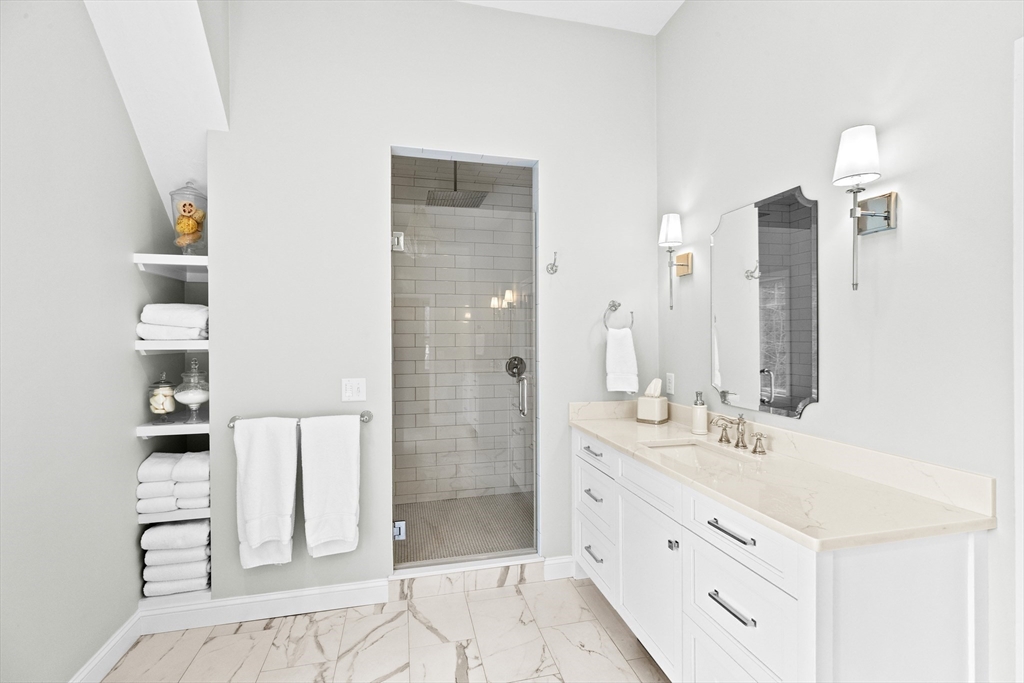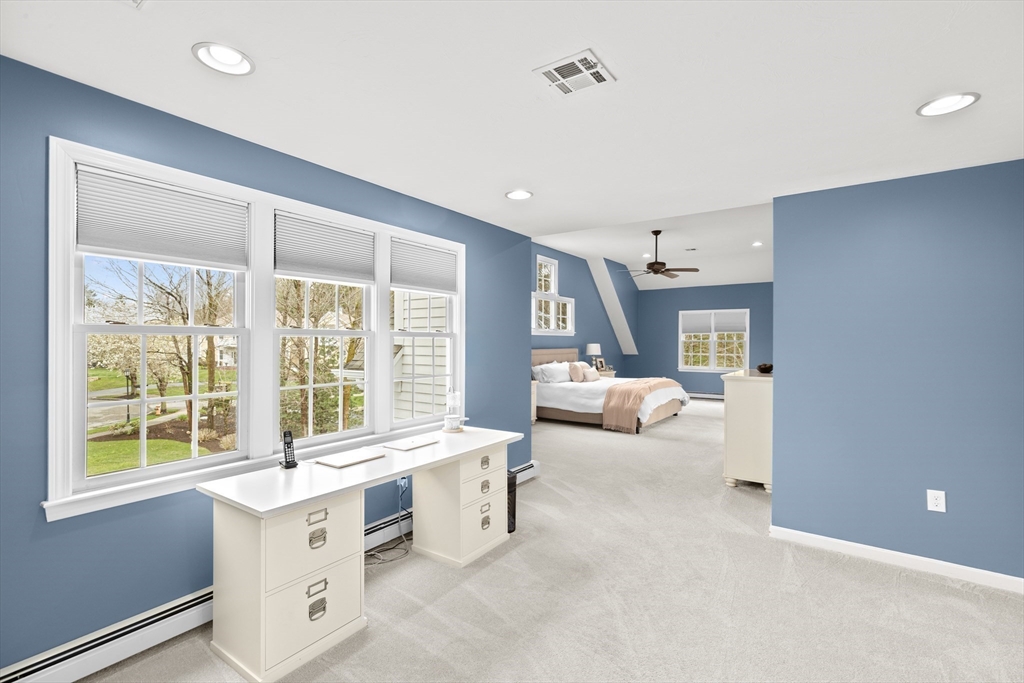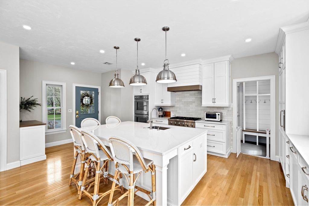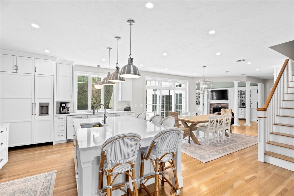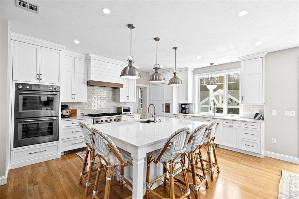 Introducing 51 Gardner Way, a 5-bed, 6-bath Colonial in Stone Meadow, one of Hanover’s most desired neighborhoods. With over 5,000 sq ft of curated living space, the home showcases classic architectural detail and elevated everyday function. The first floor features a chef’s kitchen with Thermador appliances, an oversized island with prep sink, and custom cabinetry that opens to the fireplaced family room and formal dining room. A flexible den or playroom, powder room, and mudroom with built-ins complete the main level. Upstairs offers a vaulted primary suite with dual walk-ins and a spa-like bath, plus 3 guest bedrooms, 2 full baths, and a laundry room with double washer/dryers. The 3rd floor includes a bedroom, full bath, and office. The finished lower level offers space for fitness, media, or play. A whole-house generator and water filtration system provide peace of mind. Outside, enjoy the heated pool, deck, outdoor kitchen, firepit, and cabana—designed for effortless entertaining.