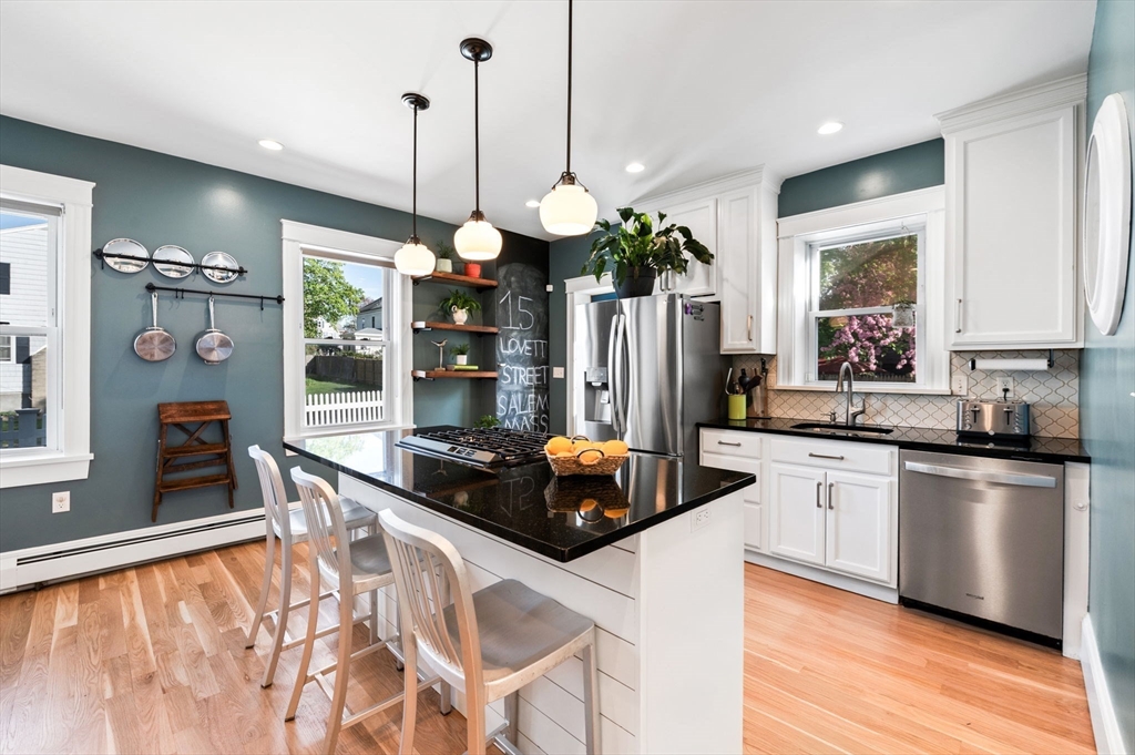 Not often do we love a home just as much as we do the location. 15 Lovett is in that rarified air. The owners did a full renovation upon purchasing + loved it ever since. It's a sophisticated + modern home that retains the character most new properties disregard. An open floor plan, custom-built-ins, newer appliances, a massive mudroom/entryway, and a fully fenced outdoor space that is the envy of any entertainer's dreams are a sampling of the things you'll find. And then: the setting. Turning onto this tucked-away side street, it's easy to get the sense of pride of ownership that the neighborhood exudes. You are minutes to both Mack and McGlew Park and a mile to the Salem Station for about a 30-minute ride to Boston. Commute by car? The home is less than 2 miles from Route 128. Salem is historic, eclectic, and a haven for both the arts + foodies. Curated coffee and award-winning eateries blend seamlessly with ocean breezes and cobblestone streets. It's ok to fall in love; we did.