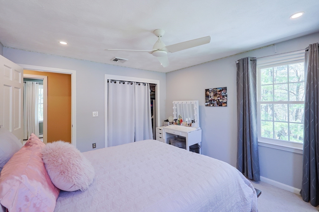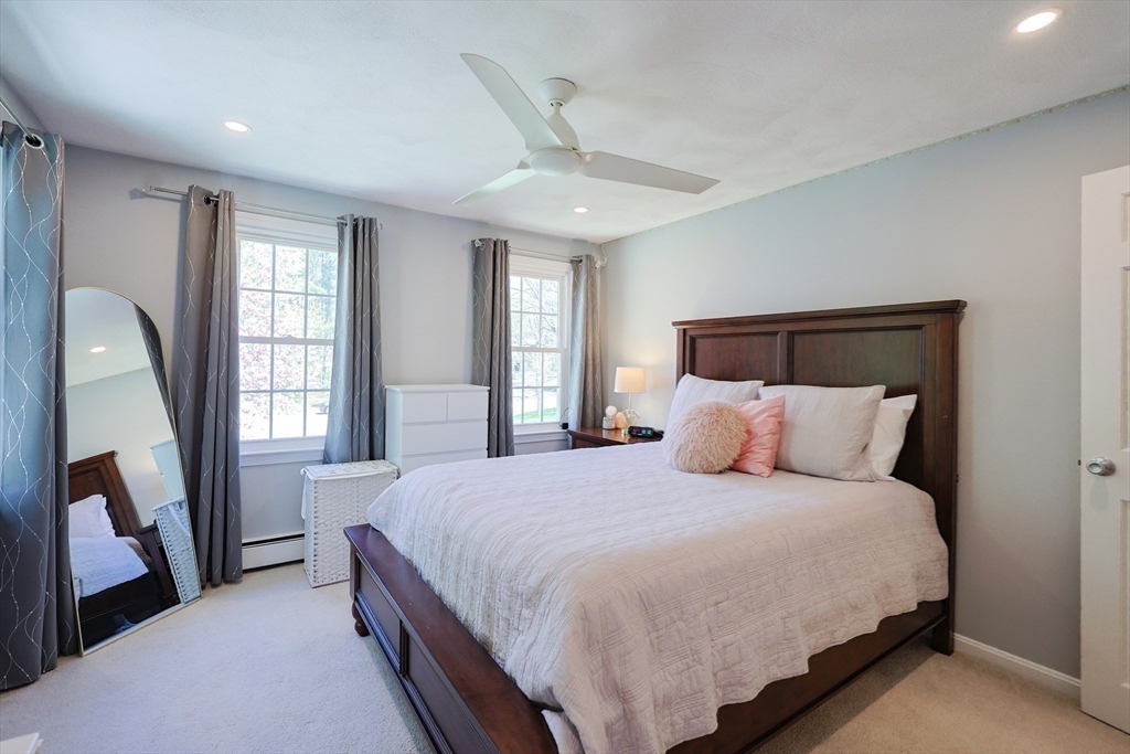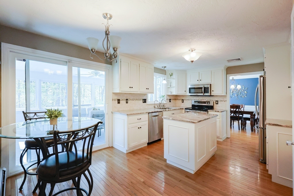 Nestled at the end of a quiet cul-de-sac in a well-established neighborhood, this beautifully maintained 4-bedroom, 2.5-bath home sits on over 2 acres of serene, wooded land. Offering the perfect balance of privacy and community, this property is ideal for those seeking a peaceful setting without sacrificing convenience.Inside, you'll find a spacious and inviting floor plan with abundant natural light. The EI kitchen offers SS appliances and center island which flows out to a 3 season room overlooking a expansive backyard surrounded by mature trees.The LR & FR offers the perfect space for relaxing or entertaining. The DR comfortably seats 6-8. The primary suite features an En-Suite bath and WI closet. Three additional bedrooms provide flexibility for guests, a home office, or a growing family.The backyard is perfect for gardening, play, or simply enjoying the outdoors. Two-car garage with space for storage. Close to the Town center, Public transportation & Library. Welcome Home!