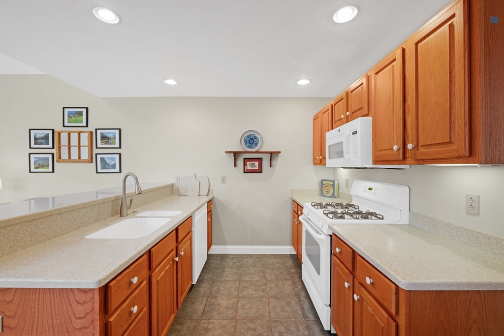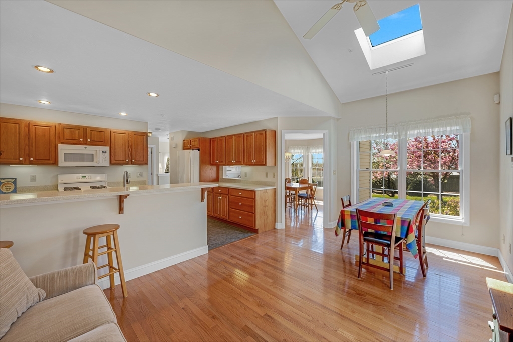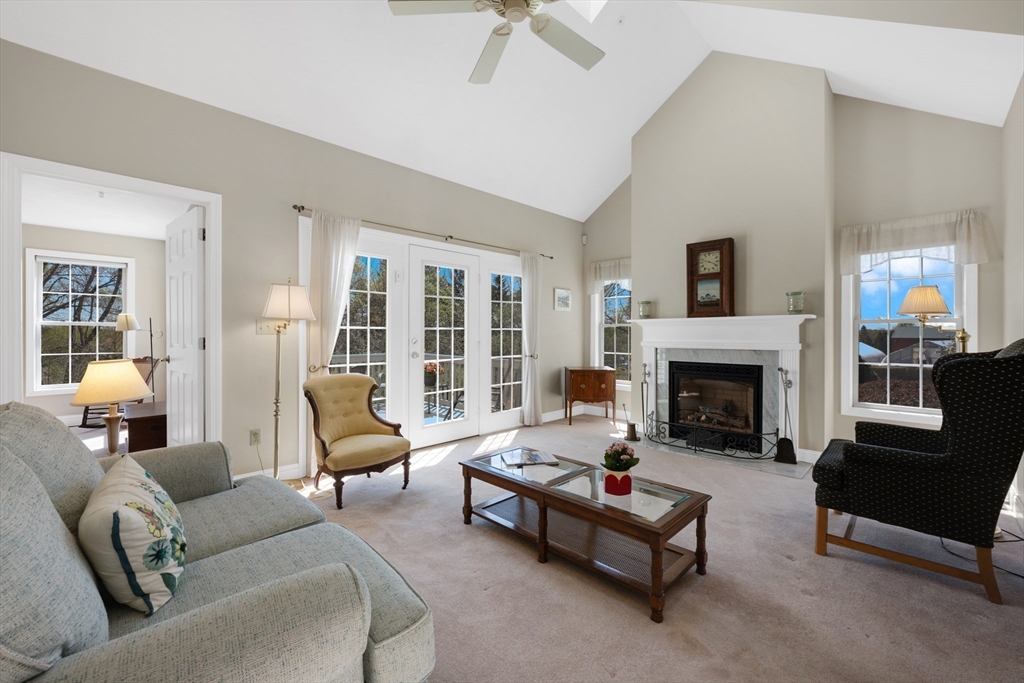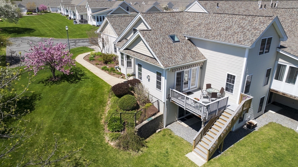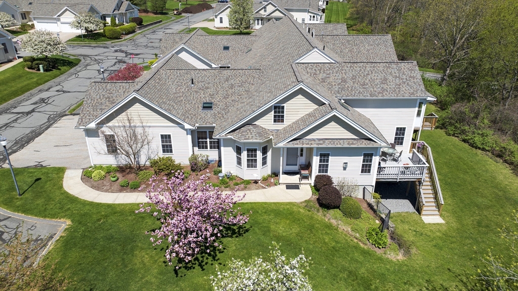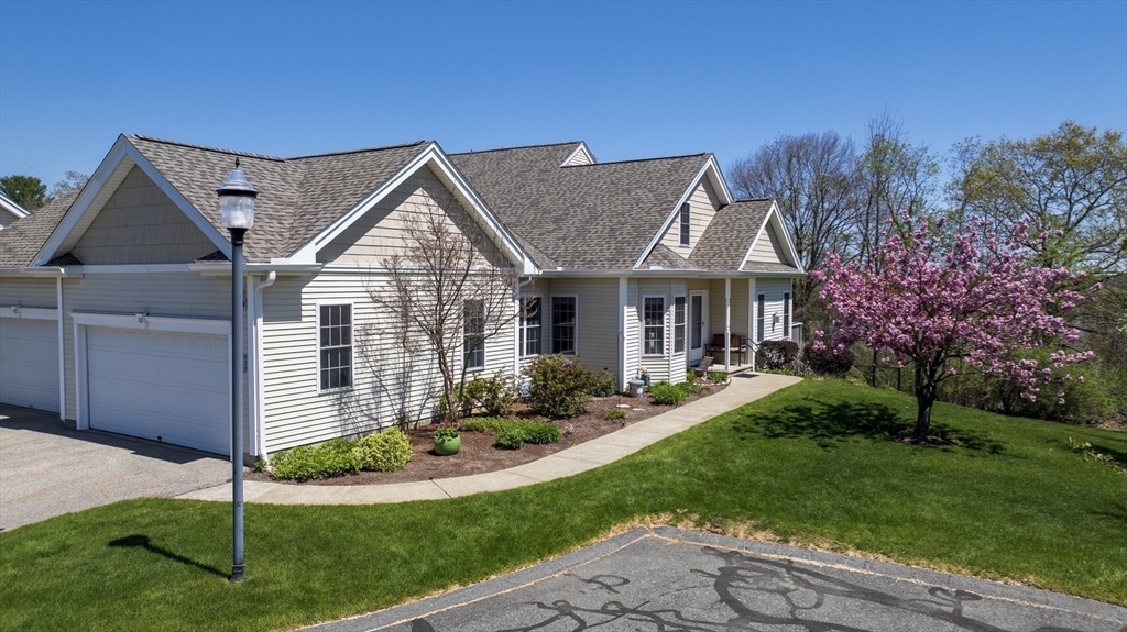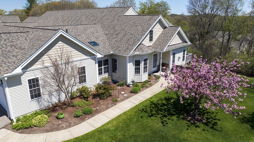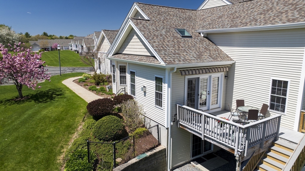 WOW! Discover this "one of a kind" End Unit at Orchard Meadows Over +55 Community in Shrewsbury. Surrounded by a true botanical garden, this spacious condo offers an elegant open layout. To the right, the impressive living room w/vaulted ceilings, marble/gas fireplace & hardwood floors leads to the first floor primary bedroom suite, w/walk-in and full bath. To the left, the formal dining room w/picture window, and hardwood floors brings you to a luminous eat-in kitchen w/vaulted ceiling & skylight, breakfast bar & recessed lights. Second floor has a large loft that overlooks the first floor & a 2nd bedroom w/full bath and walk-in. The partially finished lower level has a practical study/office w/recessed lights and slide door, opening towards the private back yard. A park, a gazebo & 2 Clubhouses invites to daily activity. New (2024) composite deck with awning, new heating system (2024), new roof, skylights and gutters, 2 car garage complete this unique Active Adult Community Condo.