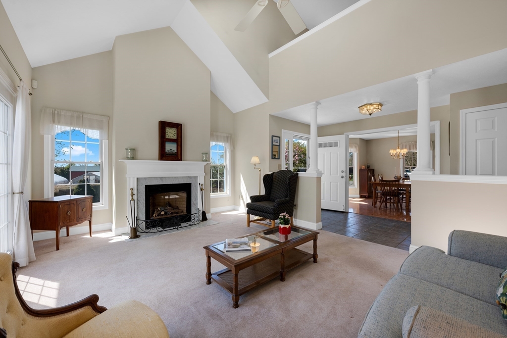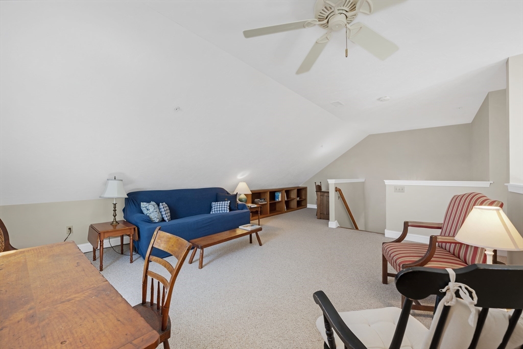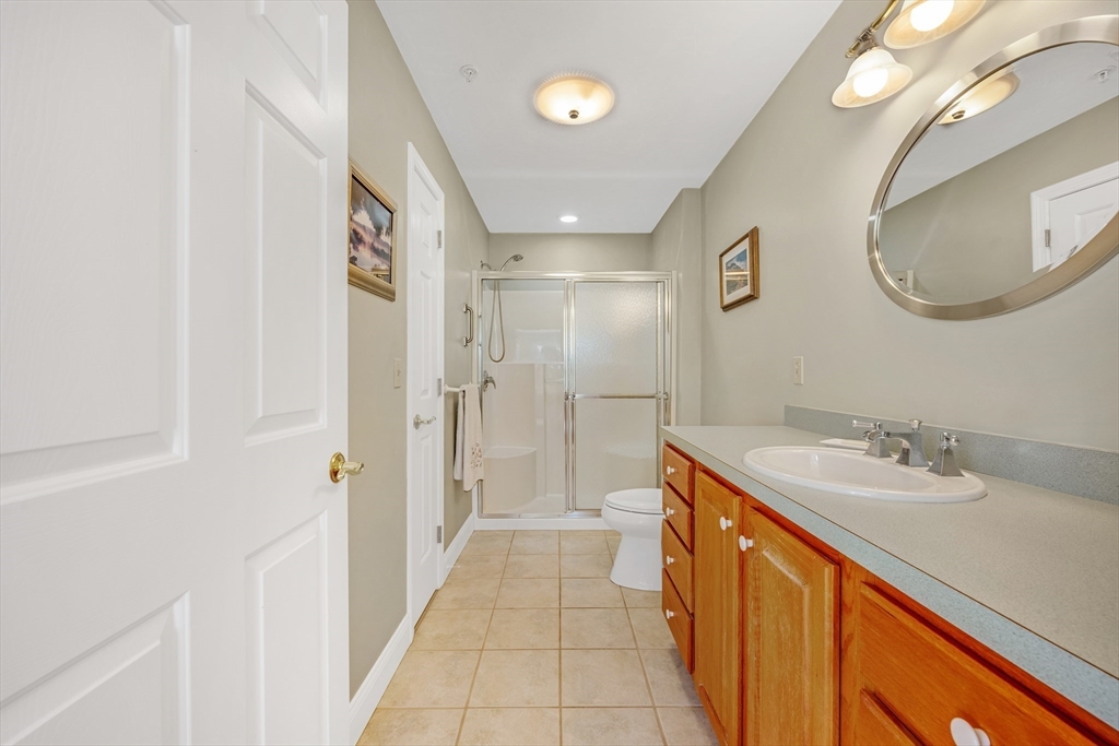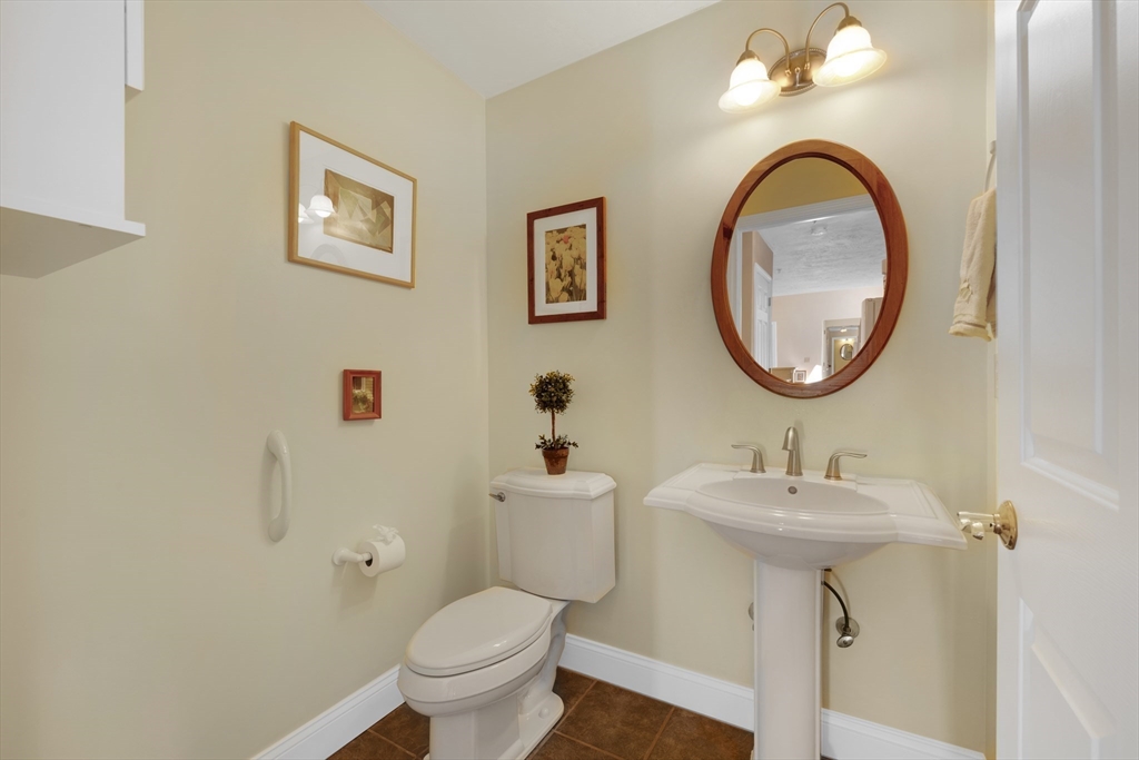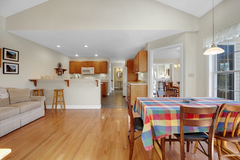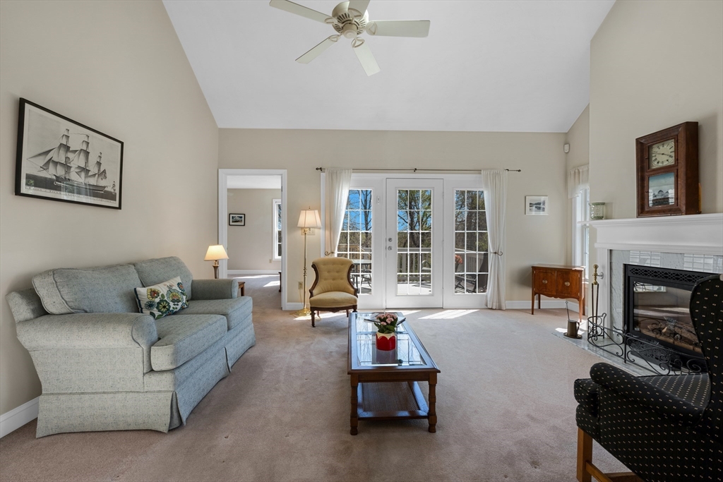 WOW! Discover this "one of a kind" End Unit at Orchard Meadows Over +55 Community in Shrewsbury. Surrounded by a true botanical garden, this spacious condo offers an elegant open layout. To the right, the impressive living room w/vaulted ceilings, marble/gas fireplace & hardwood floors leads to the first floor primary bedroom suite, w/walk-in and full bath. To the left, the formal dining room w/picture window, and hardwood floors brings you to a luminous eat-in kitchen w/vaulted ceiling & skylight, breakfast bar & recessed lights. Second floor has a large loft that overlooks the first floor & a 2nd bedroom w/full bath and walk-in. The partially finished lower level has a practical study/office w/recessed lights and slide door, opening towards the private back yard. A park, a gazebo & 2 Clubhouses invites to daily activity. New (2024) composite deck with awning, new heating system (2024), new roof, skylights and gutters, 2 car garage complete this unique Active Adult Community Condo.