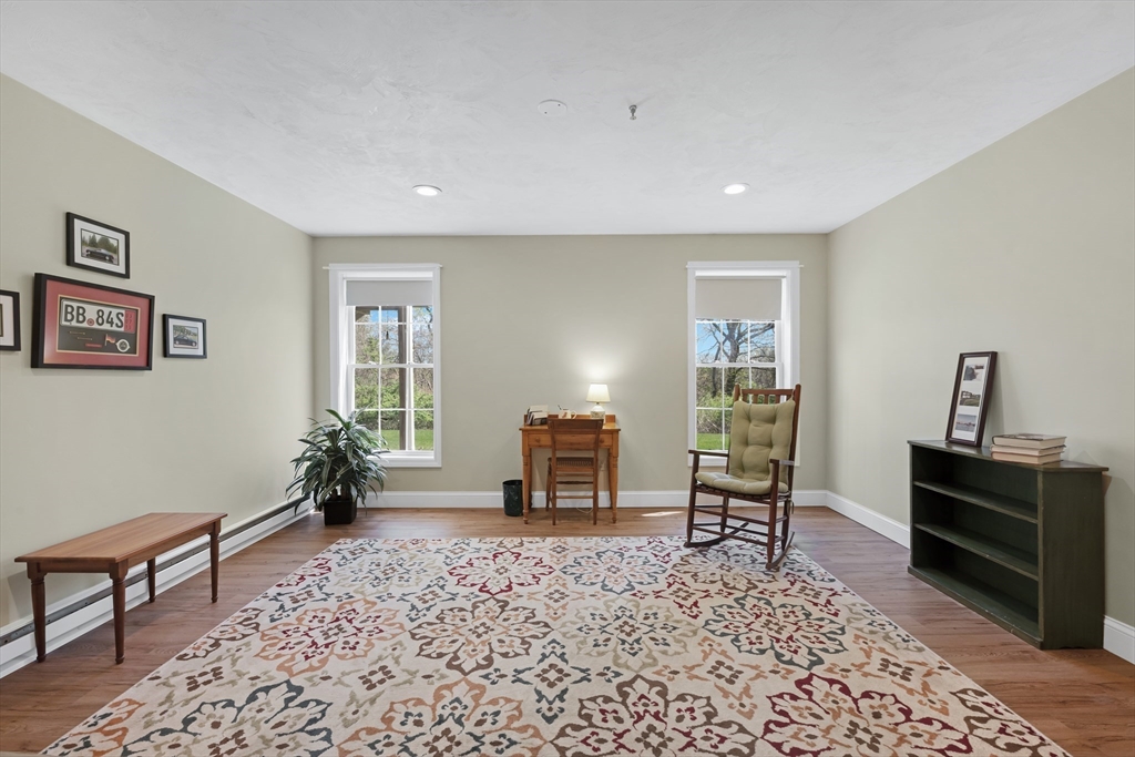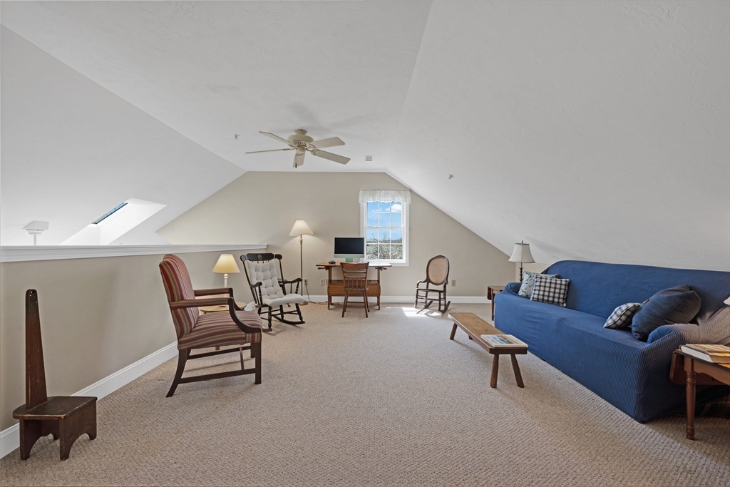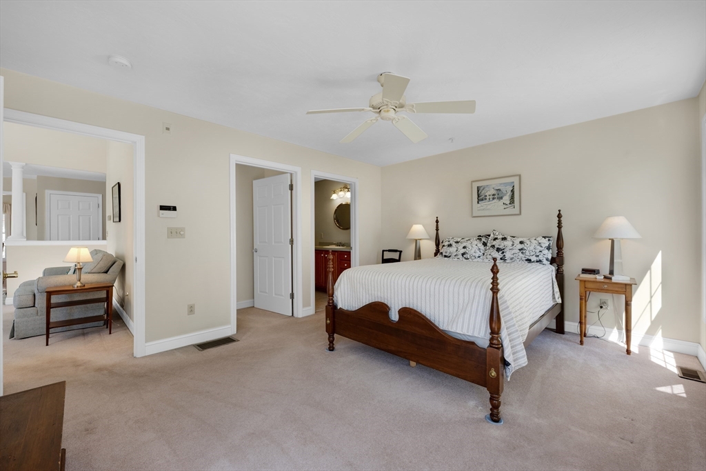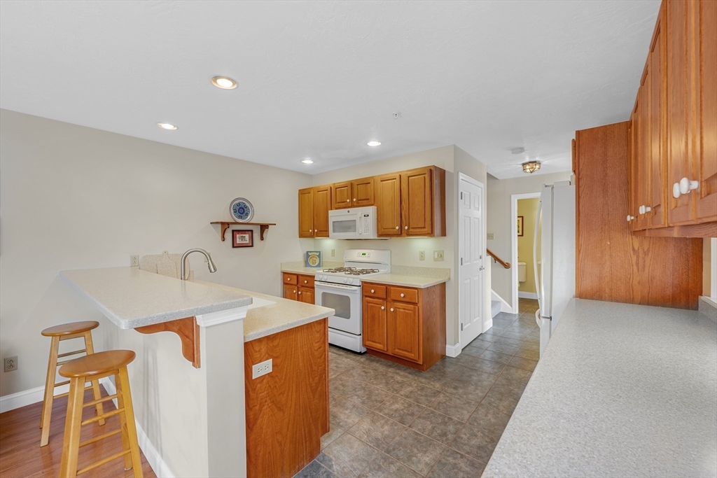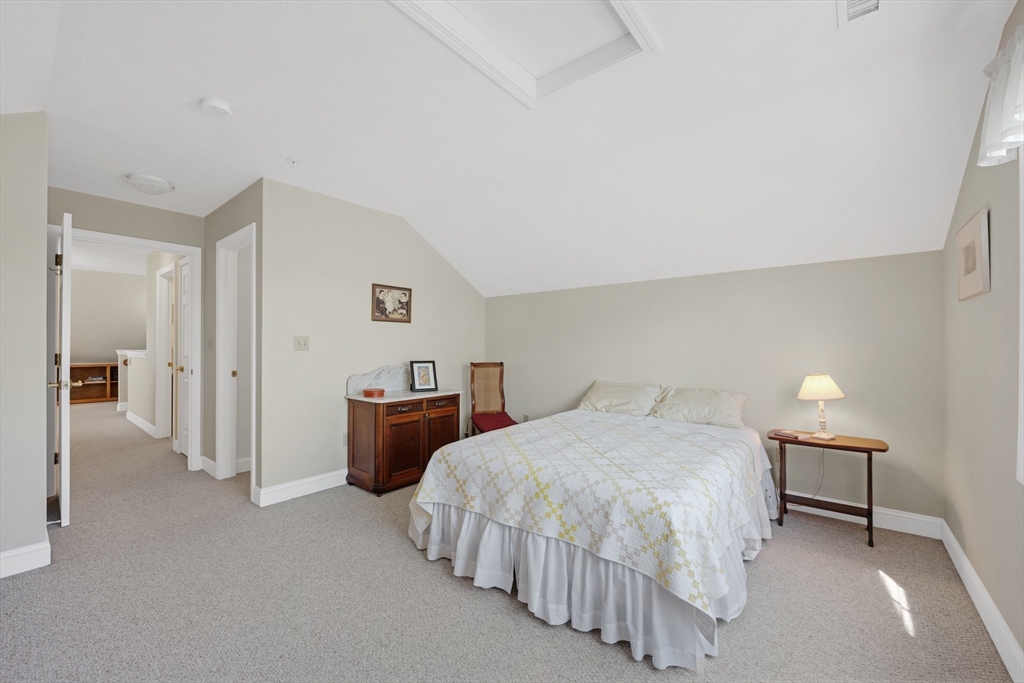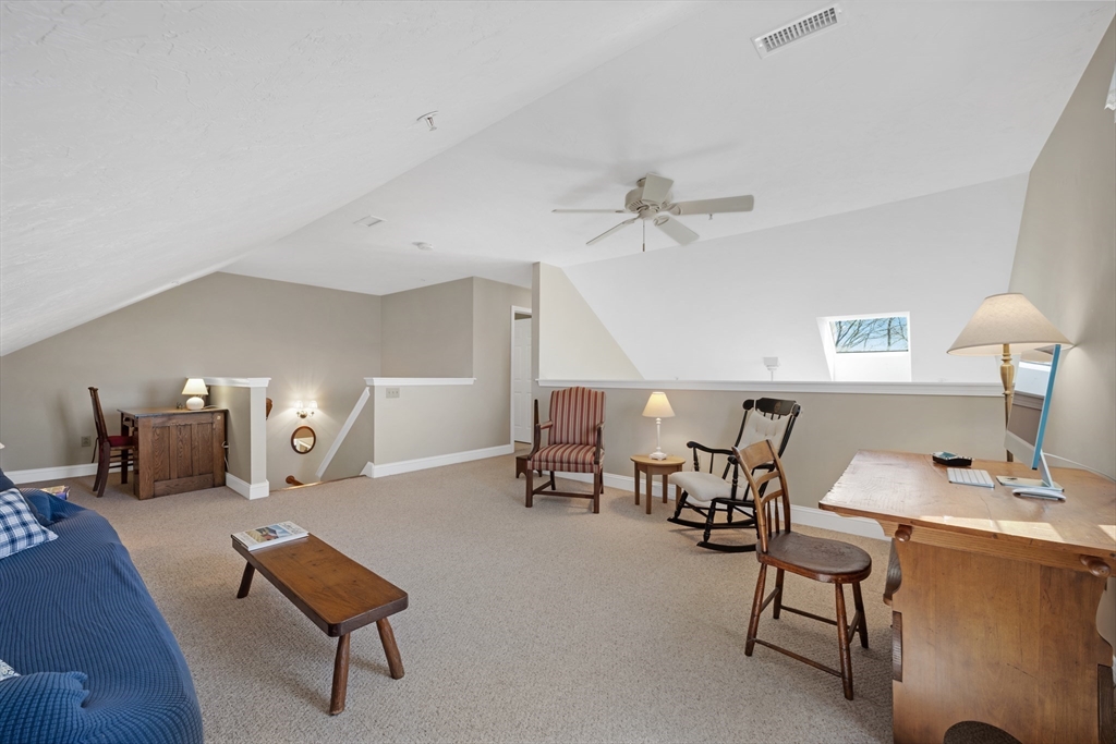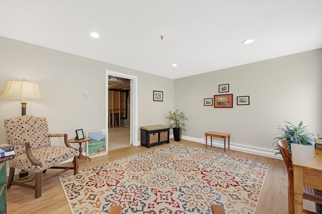 WOW! Discover this "one of a kind" End Unit at Orchard Meadows Over +55 Community in Shrewsbury. Surrounded by a true botanical garden, this spacious condo offers an elegant open layout. To the right, the impressive living room w/vaulted ceilings, marble/gas fireplace & hardwood floors leads to the first floor primary bedroom suite, w/walk-in and full bath. To the left, the formal dining room w/picture window, and hardwood floors brings you to a luminous eat-in kitchen w/vaulted ceiling & skylight, breakfast bar & recessed lights. Second floor has a large loft that overlooks the first floor & a 2nd bedroom w/full bath and walk-in. The partially finished lower level has a practical study/office w/recessed lights and slide door, opening towards the private back yard. A park, a gazebo & 2 Clubhouses invites to daily activity. New (2024) composite deck with awning, new heating system (2024), new roof, skylights and gutters, 2 car garage complete this unique Active Adult Community Condo.