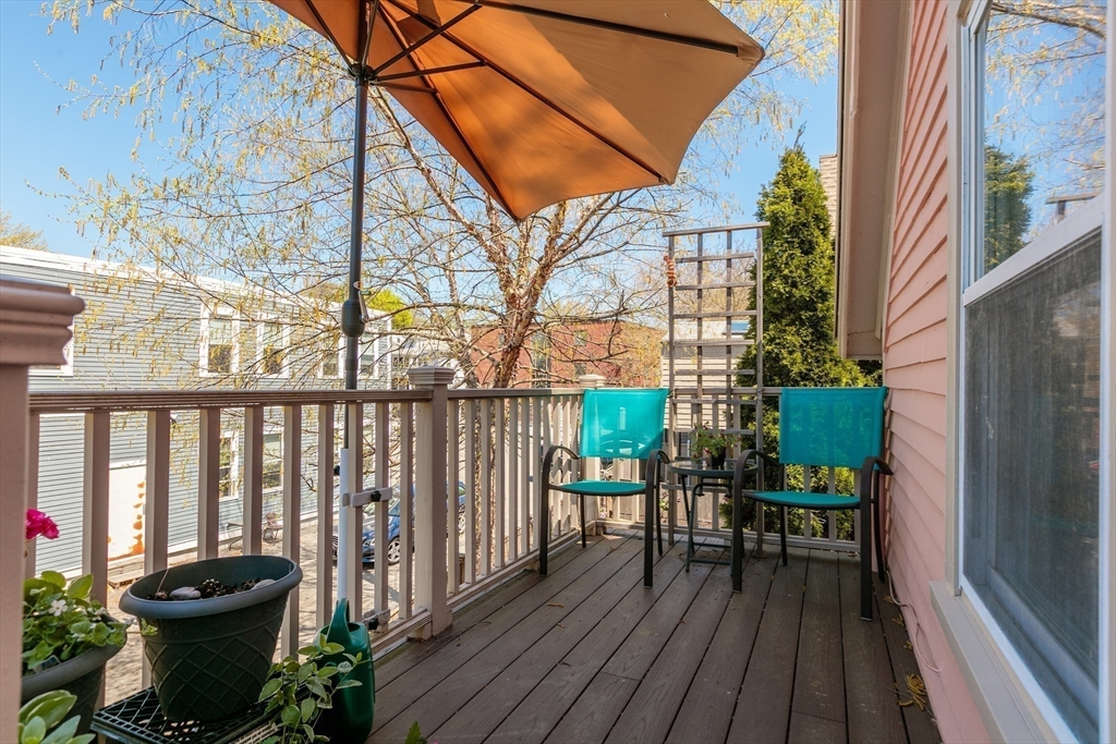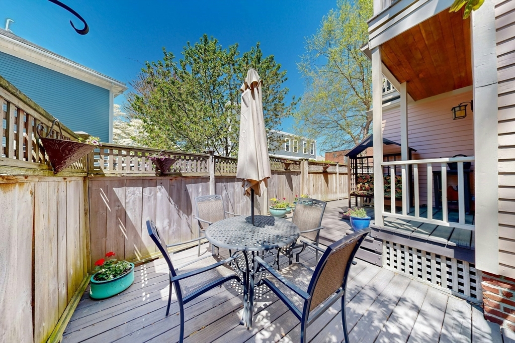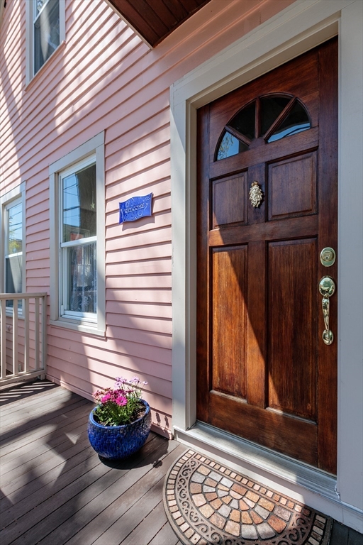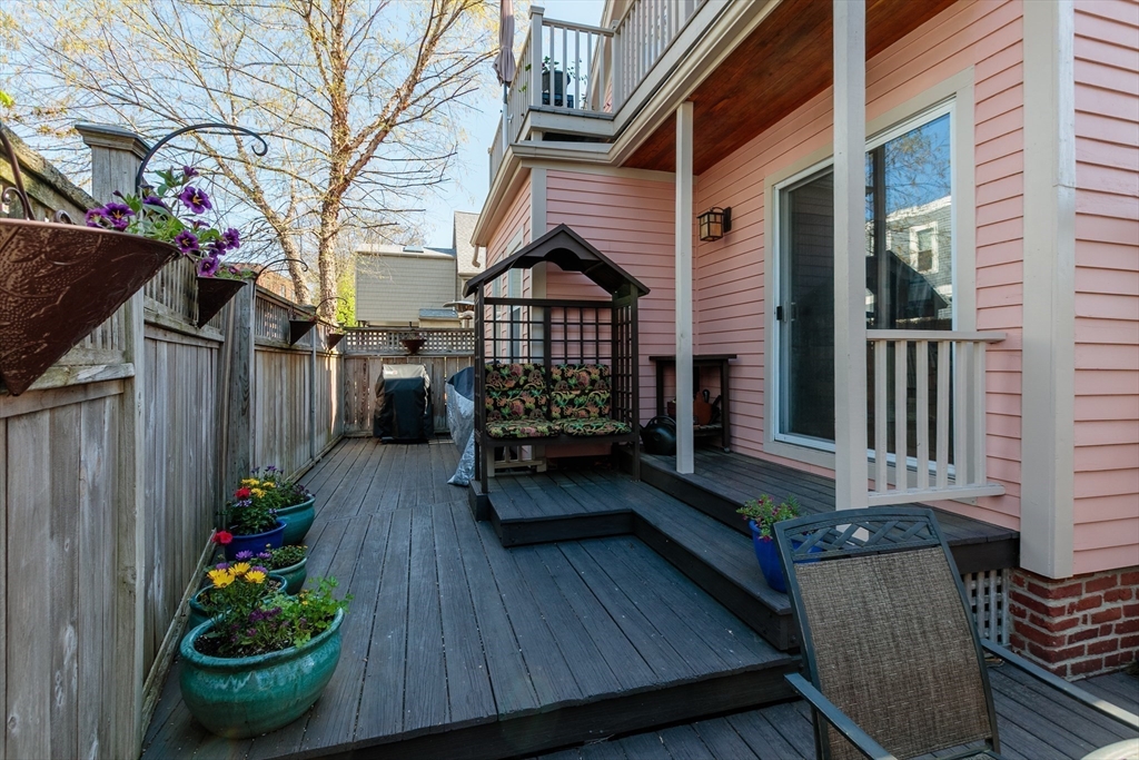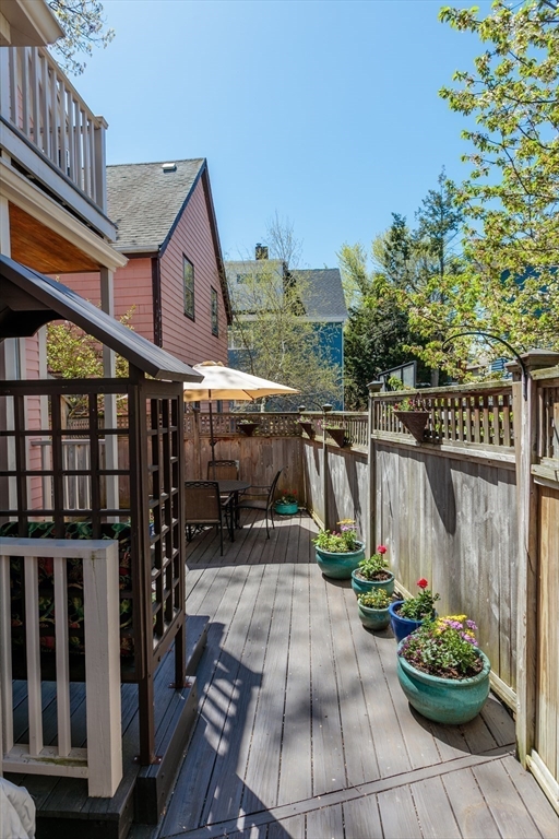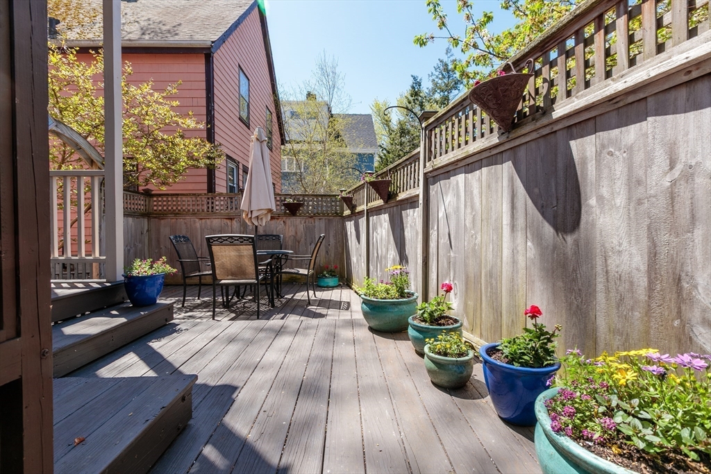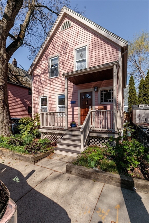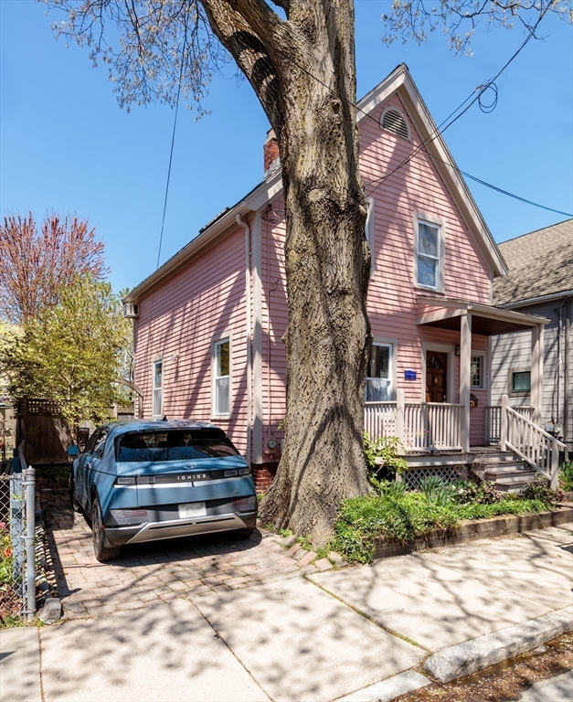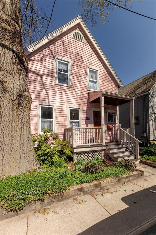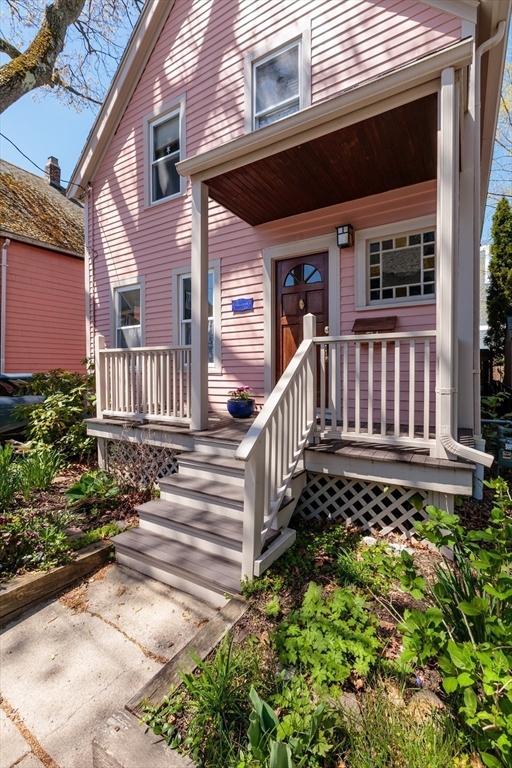 A Cambridge SF as loved and lovable as this one seldom comes to market. Occupied by 1 family since 1996, it is well maintained and thoughtfully updated. An inviting front porch opens to a tiled foyer w/stained glass window. Light streams thru LR and DR; a partial wall btwn them allows for easy flow while maintaining defined spaces. Glass drs open from DR to a lg deck with seating areas, plantings, and wood fence. A wood arbor separates this backyard haven from the driveway. Adjacent to the DR is a sizable kitchen w/Euro-style open shelving; quartz counters; tile fl; wood cabinets; ss appliances; double windows above sink; and island w/seating on DR side. A laundry room w/half bath complete the 1st fl. Upstairs are 3 bdrms - 1 w/a loft space and door to private balcony overlooking deck. Full, tiled bathroom w/skylight. Unfinished bsmt has storage and workshop space. Nestled btwn Davis Sq. and Mass Ave. near 2 bike paths, this location has great walkability and transit options.