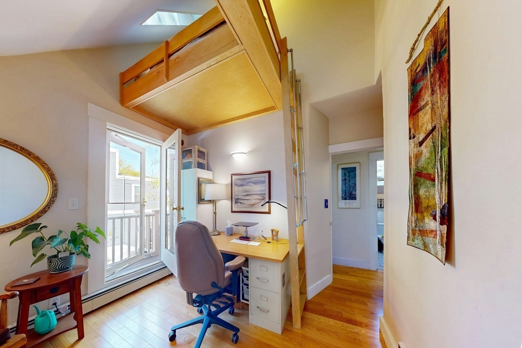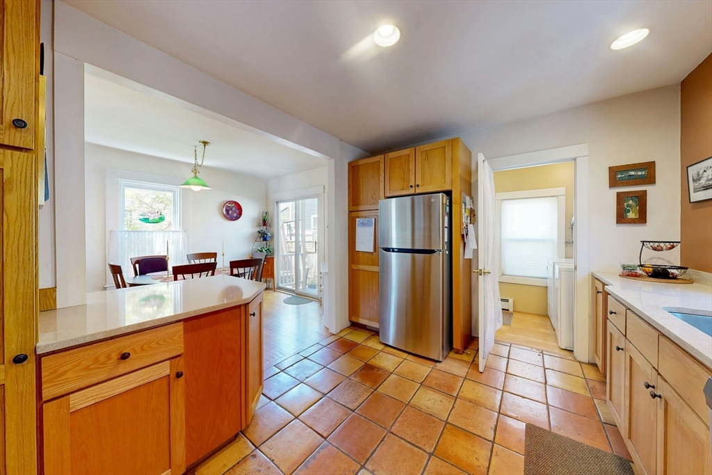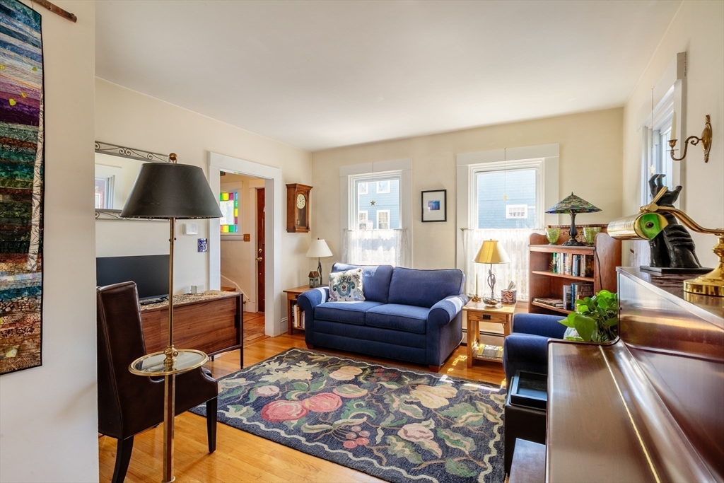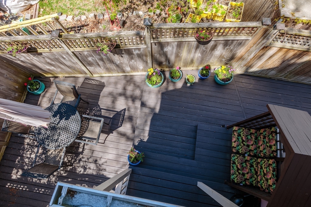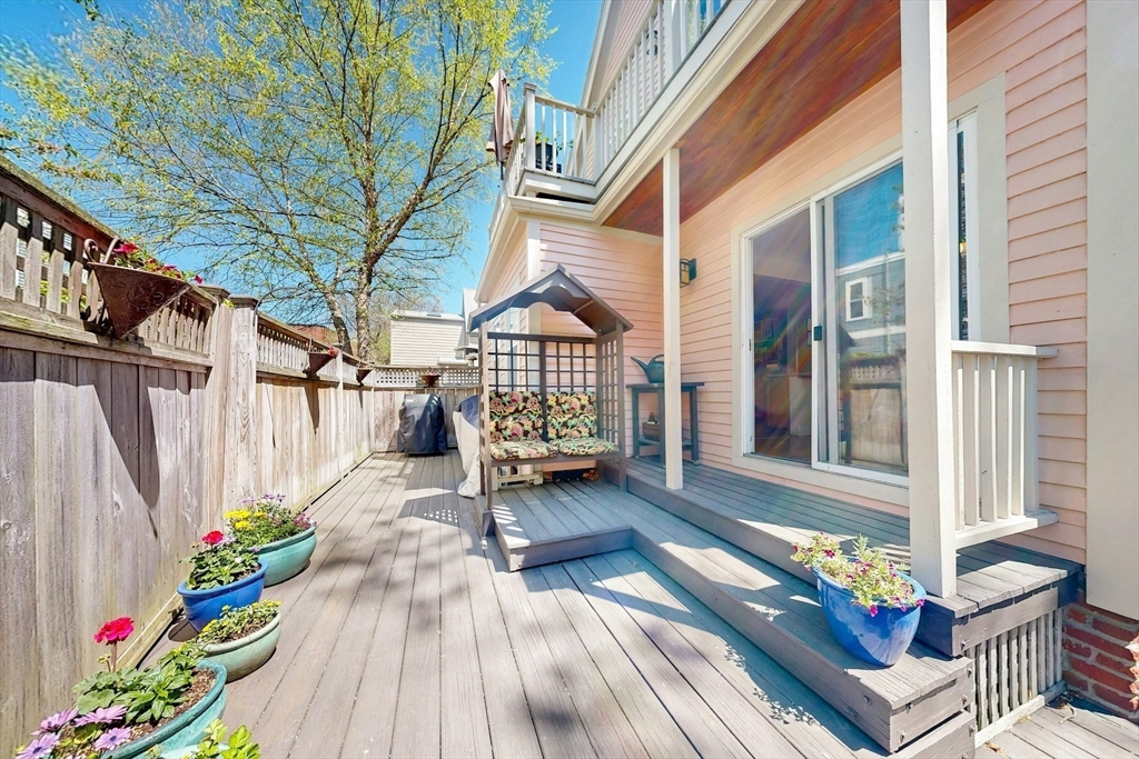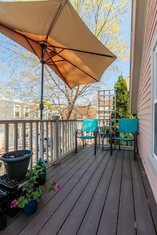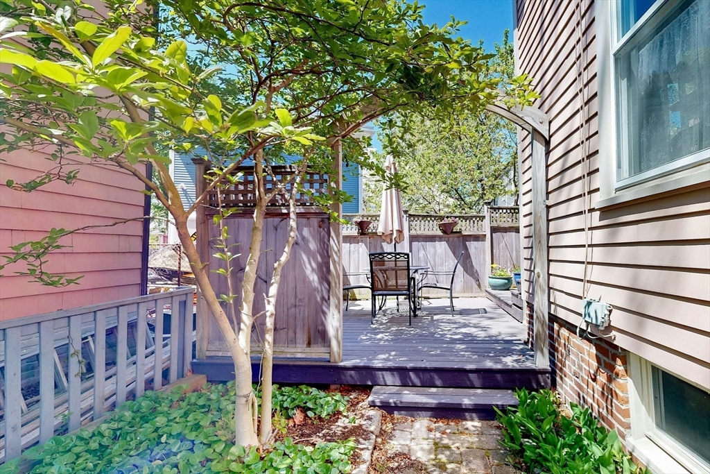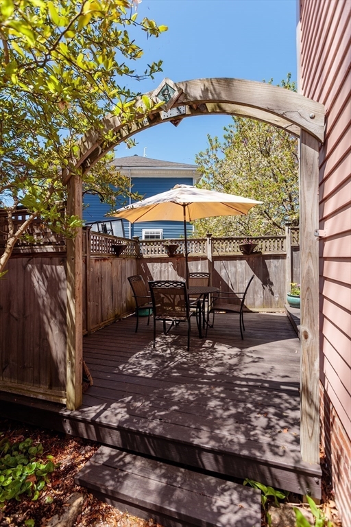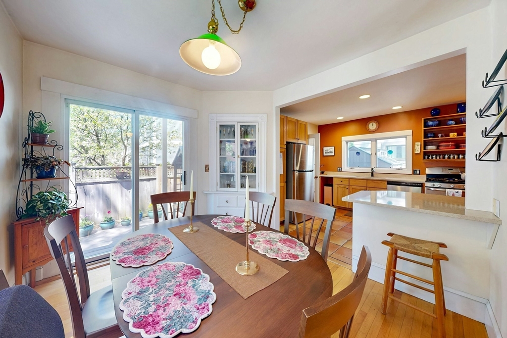 A Cambridge SF as loved and lovable as this one seldom comes to market. Occupied by 1 family since 1996, it is well maintained and thoughtfully updated. An inviting front porch opens to a tiled foyer w/stained glass window. Light streams thru LR and DR; a partial wall btwn them allows for easy flow while maintaining defined spaces. Glass drs open from DR to a lg deck with seating areas, plantings, and wood fence. A wood arbor separates this backyard haven from the driveway. Adjacent to the DR is a sizable kitchen w/Euro-style open shelving; quartz counters; tile fl; wood cabinets; ss appliances; double windows above sink; and island w/seating on DR side. A laundry room w/half bath complete the 1st fl. Upstairs are 3 bdrms - 1 w/a loft space and door to private balcony overlooking deck. Full, tiled bathroom w/skylight. Unfinished bsmt has storage and workshop space. Nestled btwn Davis Sq. and Mass Ave. near 2 bike paths, this location has great walkability and transit options.