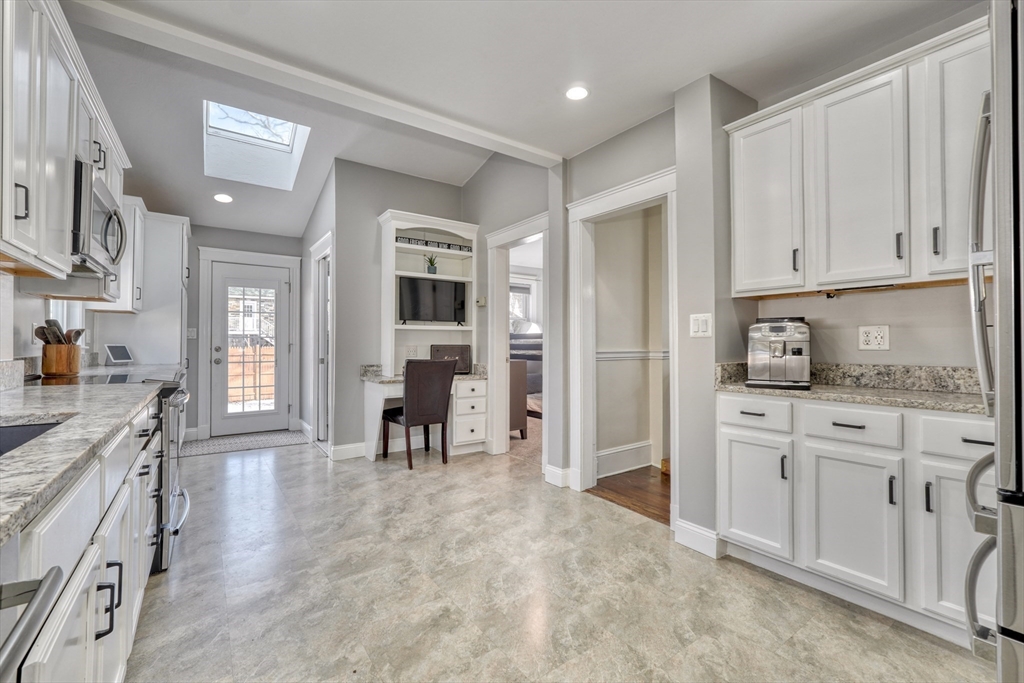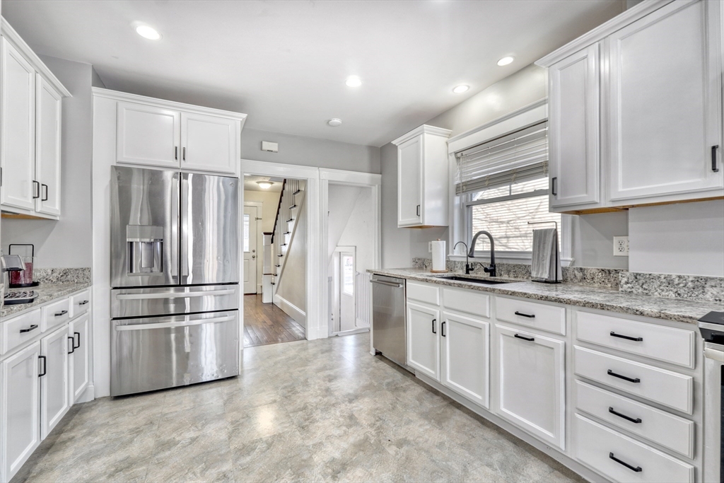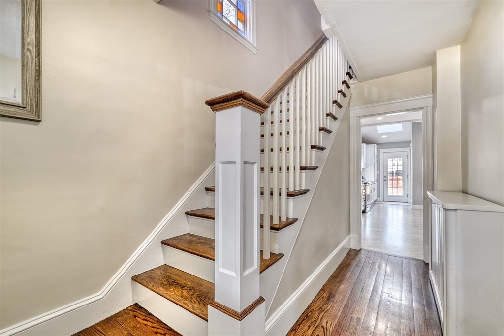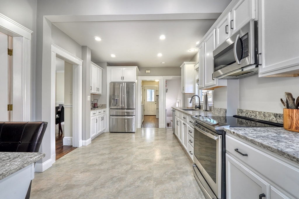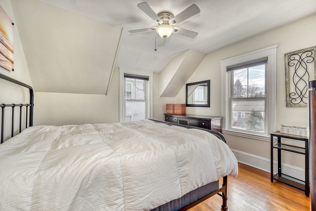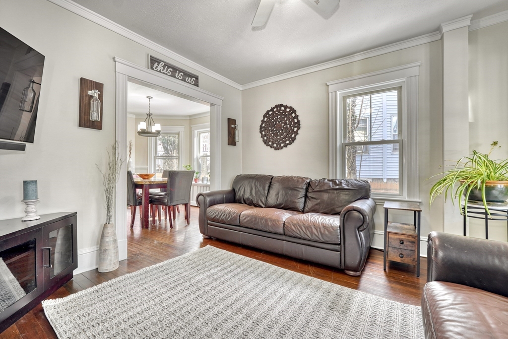 Clean cut and move in ready 3 Bed 1.5 bath with many updates in desirable Dedham. Finished versatile front porch entry, hardwoods throughout main rooms, classic trim mouldings, huge updated kitchen with tons of cabinet space, 1st floor bath and a 1st floor bedroom option round out the 1st level. Upstairs you will find two more bedrooms and a full bath. Bonus room in lower level as well as large storage and utility area. Low maintenance vinyl and fiber cement siding. Young windows, roof and Hot Water. Newer decks and shed. Fenced in backyard. Natural Gas. Location offers convenient access to Boston, Legacy place, Dedham Center, shopping, and restaurants.
