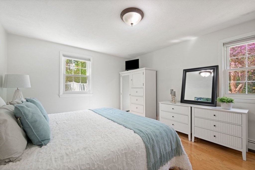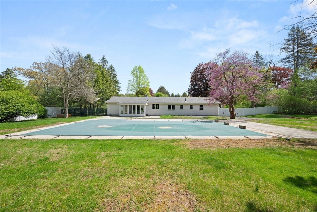 Welcome to this beautifully maintained 3-bedroom, 2-bath single-family ranch, set on a spacious level .69-acre lot surrounded by mature trees that provide both privacy and shade. This inviting home offers easy, single-level living in a highly desirable location. Inside, you'll find a light-filled, open-concept living and dining area—perfect for everyday comfort and entertaining. The kitchen overlooks a backyard oasis, where you can spend summer days lounging by the inground pool or relaxing beneath the canopy of trees. A fully enclosed, screened/glass porch offers the perfect spot to unwind while taking in views of the private, fenced yard. With abundant outdoor space, there’s plenty of room for gardening, play, or future expansion. This move-in-ready home has had many updates and truly checks all the boxes—just minutes from the commuter rail, highway access, great schools, and local amenities.
