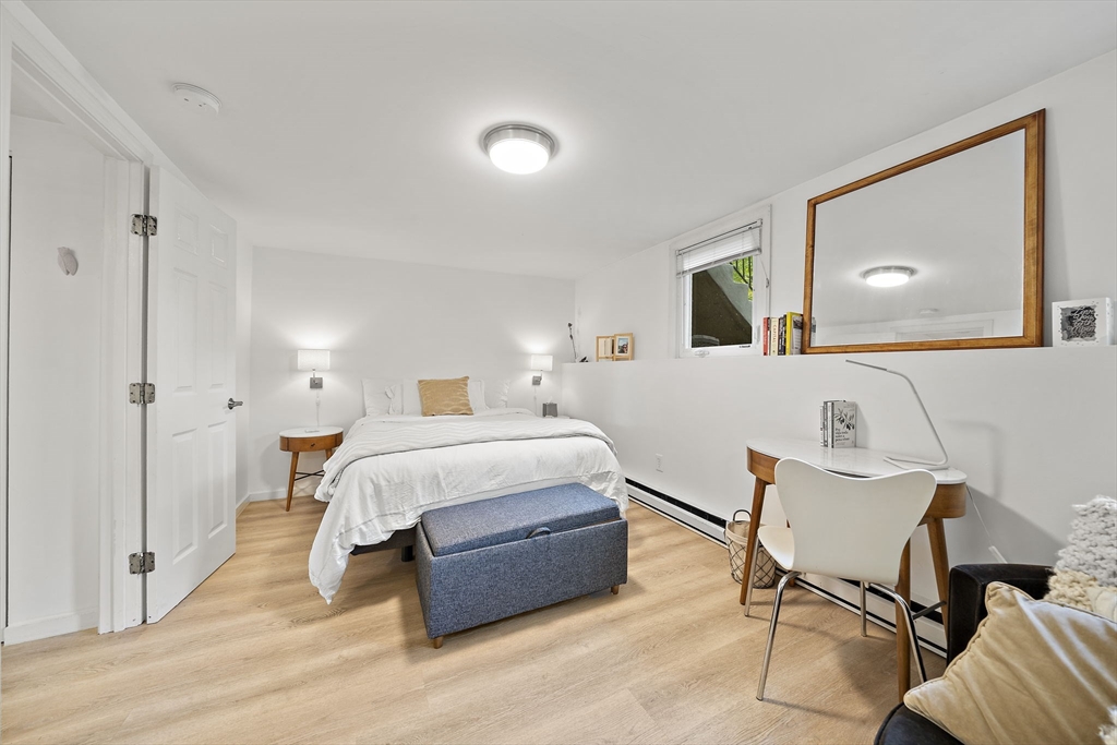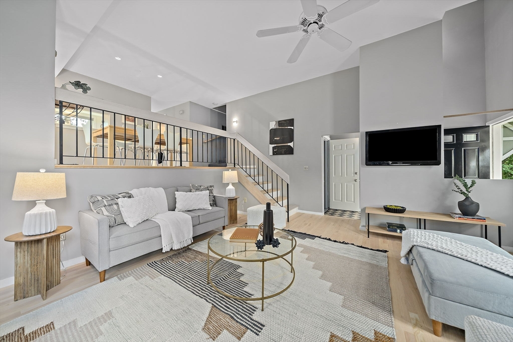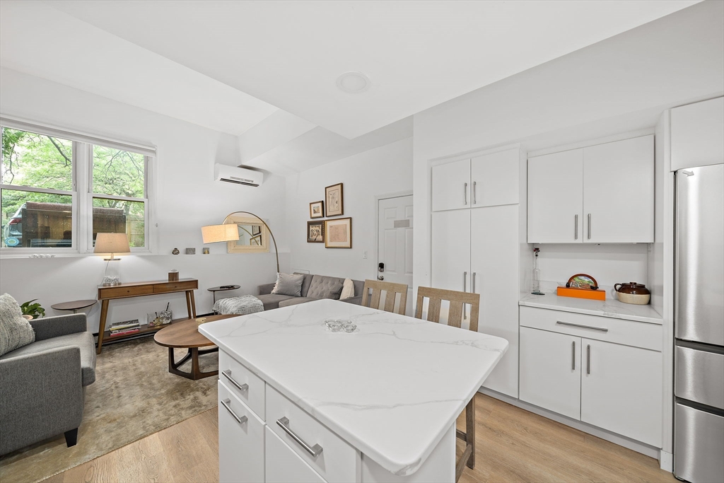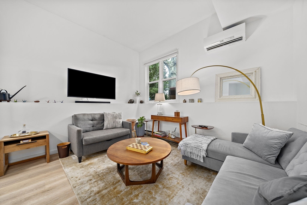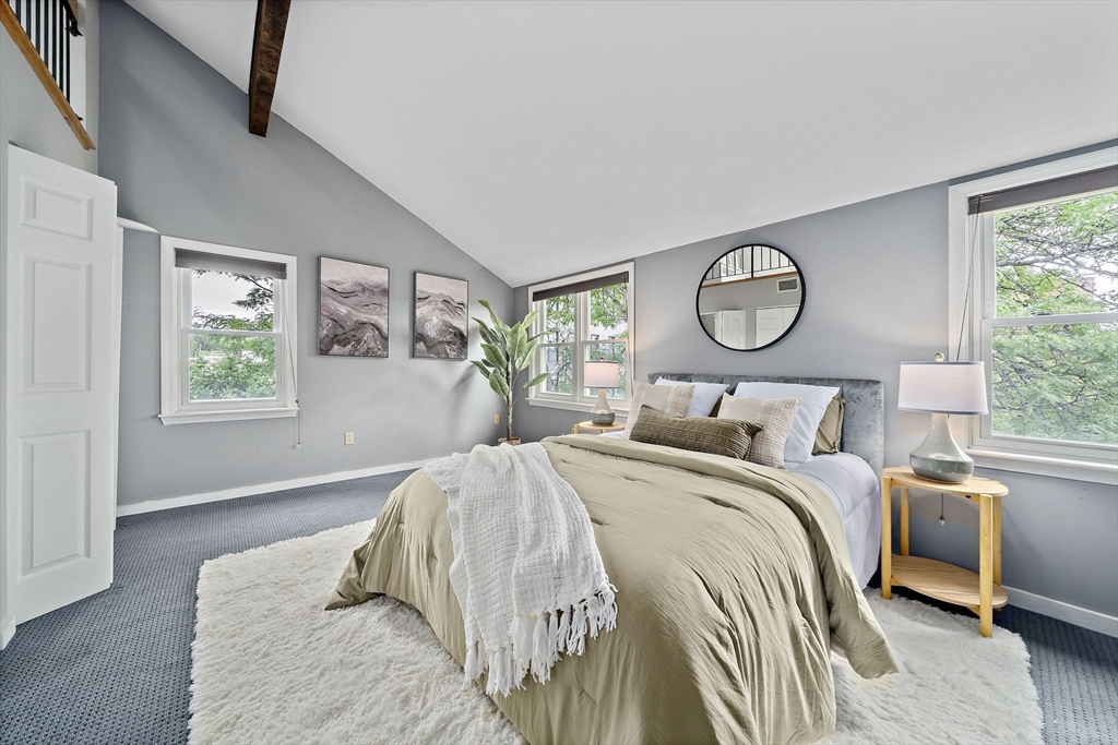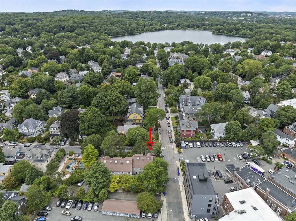 Very unique, rarely available Pondside offering - renovated modern multi-level townhouse-style home, with a 2nd income-producing unit for ADU: au pair, multi-generational living, or Airbnb. The upper townhouse on 3 floors offers a 2025 renovated kitchen, 3 beds and 1.5 baths, office nook, spacious rooms w/vaulted ceilings, dining room open to living room w/loft elevation, private balcony, skylights, open wood beams, built-ins, & private laundry. The beautifully renovated lower unit w/fully-equipped island kitchen open to the living room offers a large bedroom and walk-in closet w/laundry, and designer bath. This unit has been used as a high income-producing Air BnB grossing $5K/mo, but can be rented out long-term as well. Two car parking (one in garage) and private yard on corner lot (this is an end unit). Adjacent to Brewer-Burroughs playground and tot lot, a (free) Boston Municipal parking lot, EV charging station, shopping on Centre St, Green Street T, Arboretum, and Jamaica Pond.