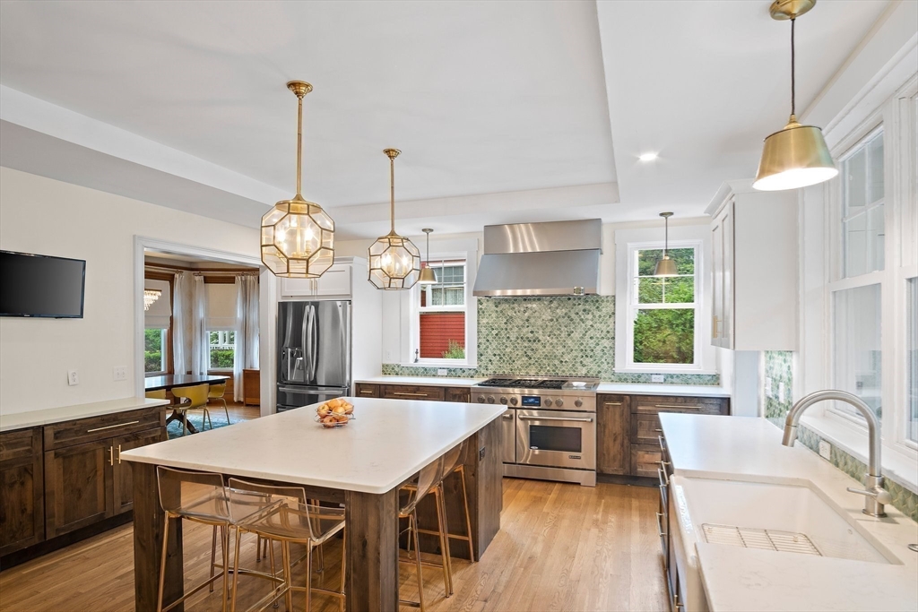Step into a piece of history! This iconic 1890 estate offers the perfect blend of old-world charm and contemporary luxury. The sweeping wrap-around porch and stately façade make a lasting impression. Inside, you'll find exquisite woodwork and grand, light-filled rooms that speak to a bygone era. A dramatic foyer welcomes you into a flowing main level perfect for entertaining and everyday living. Featuring a fireplaced formal living room, elegant dining room, den, and a library with its own fireplace. The heart of the home is the fully renovated chef’s kitchen complete with a 6-seat island and a massive gas range that will inspire your culinary creativity. Upstairs, discover a serene primary suite with a spa-like bath and custom walk-in closet, plus three additional bedrooms and laundry. The 3rd floor includes three more rooms and a full bath—ideal for guests. The carriage house with two-car garage offers endless potential for a workshop, studio, or even a future ADU. Truly a rare find!