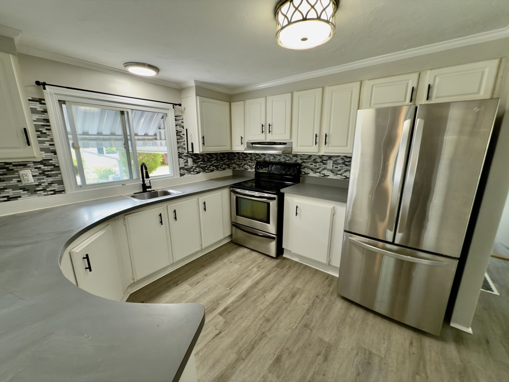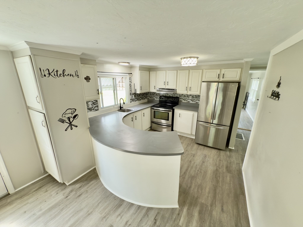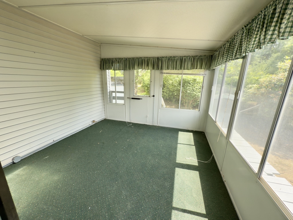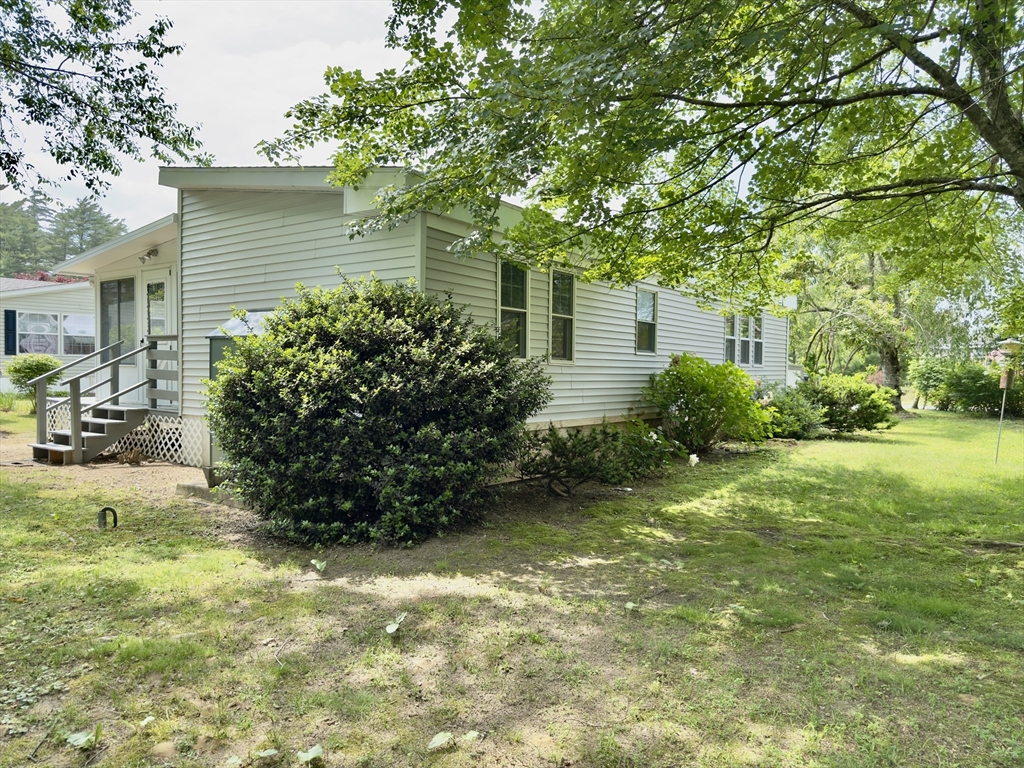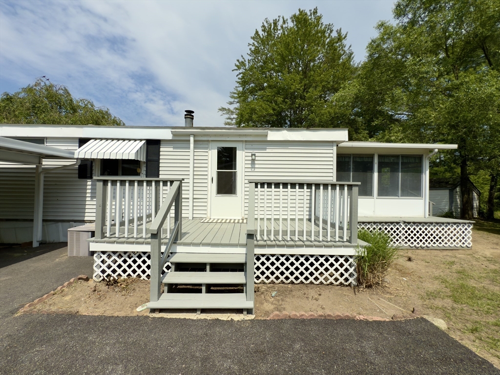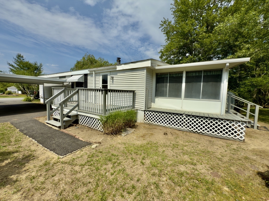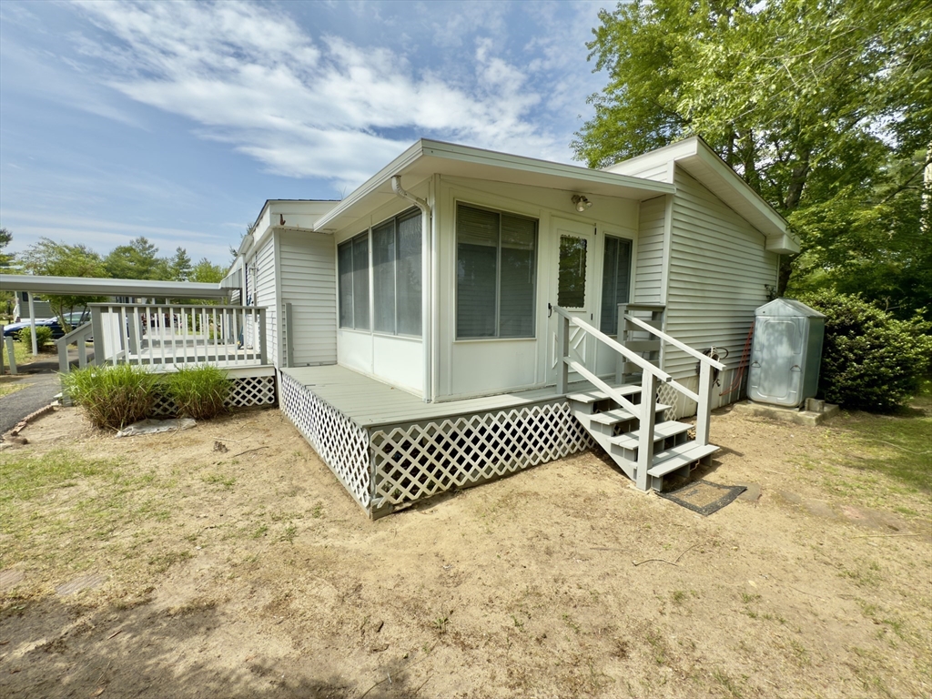 Nestled at 37 Washington Park, Carver, MA, in Cranberry Village, a 55+ resident owned community, this inviting home offers a move-in ready experience. The Living Room with vaulted ceiling provides a warm atmosphere, featuring a fireplace that serves as a focal point for gatherings. The updated Kitchen includes SS appliances & offers both functionality & aesthetic appeal, complete with a backsplash, a peninsula, and crown molding that adds a touch of elegance. The primary bathroom features a tiled walk-in shower, providing a spa-like experience. This single-family residence includes two full bathrooms & two bedrooms, offering comfortable living space within its 1344 square feet. In addition to laminate floors throughout, a new HVAC system, a carport provides convenient parking as well as a rear driveway for added access & parking. The property also boasts a deck, a sun room, and a shed, enhancing the outdoor living experience. This home is ready for you to create lasting memories.