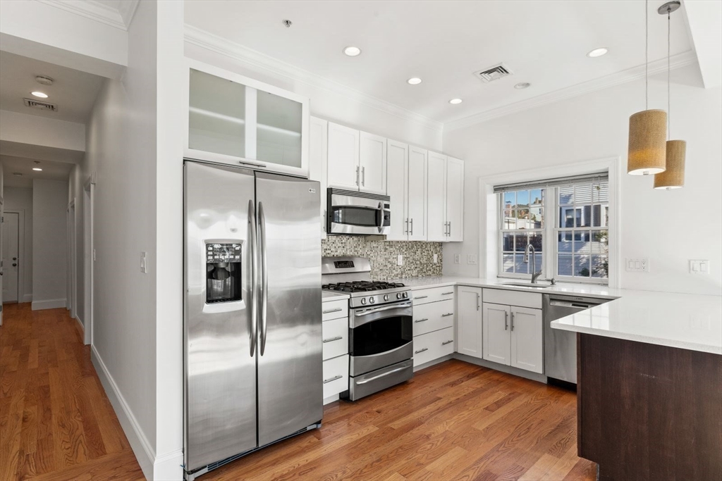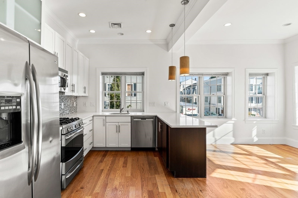 Bright and spacious 2-bedroom, 2-bathroom corner unit in South Boston’s desirable City Point, just one block from the beach. This home features tall ceilings, hardwood floors, and a bay window that fills the living space with natural light. The open layout includes a modern kitchen and breakfast bar with ample storage, and a gas fireplace. There are two bedrooms, one with ensuite bath. Updates include a new hot water tank and the roof is approx 2017. Conveniently located near the beach, Marine Park, Castle Island, and a few blocks to all the great shops and restaurants on Broadway. Easy access to 93, or downtown Boston via 7,9, or 11 bus. This is a new condo conversion, and taxes and fees are estimated. There are four residential units in the association and one commercial. Sorry, no outdoor space but pets are permitted. Open House Saturday, Sept 6th 11-12 or by appointment.