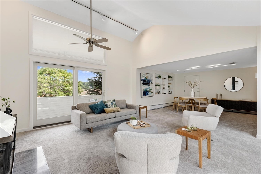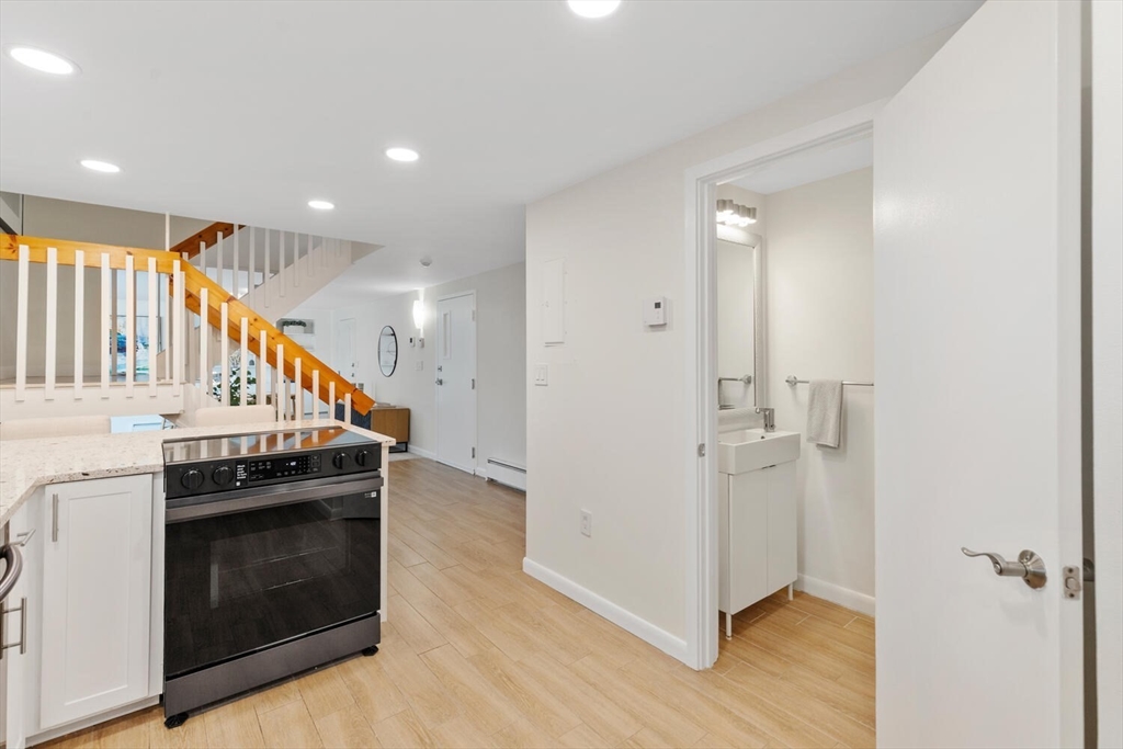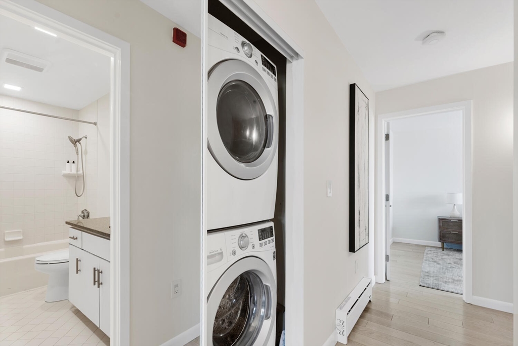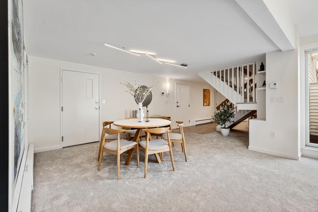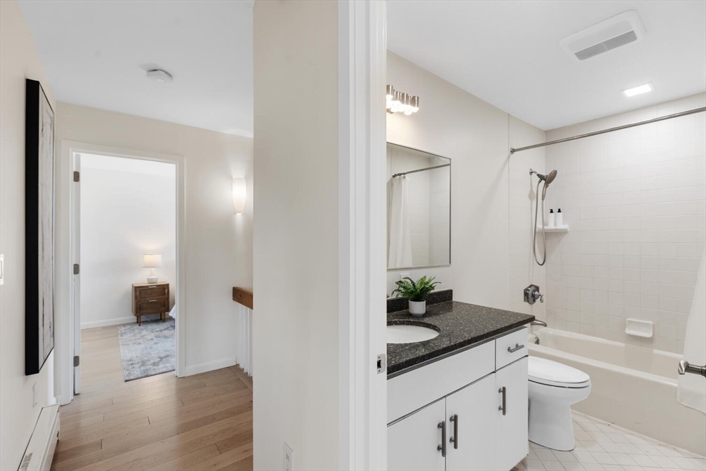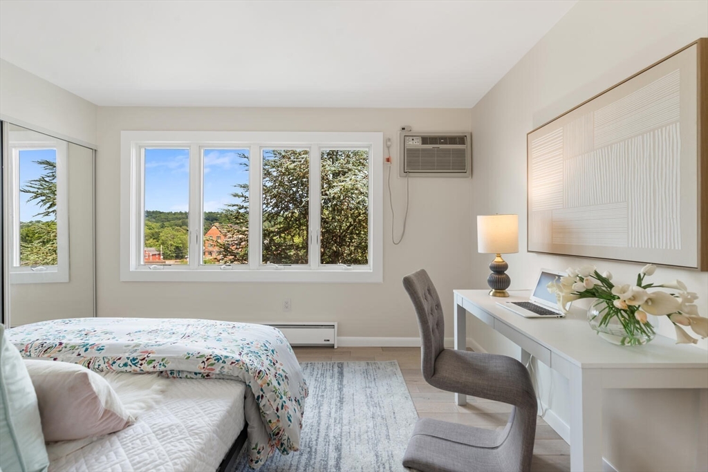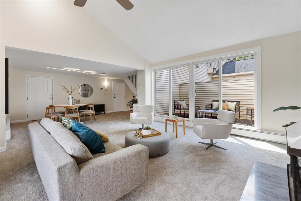Immerse yourself in the vibrant heart of Winchester Center with this exquisite 2-bedroom, 1.5-bathroom condominium! Step into the open-concept living and dining area, where a modern touch meets downtown flair. A rare freestanding wood-burning fireplace accentuates the space, offering warmth and a touch of classic charm. Delight in the recently renovated kitchen, designed for both style and utility. The unit boasts two expansive rooftop patios, offering boundless possibilities. Whether you envision a tranquil retreat under the stars or a sophisticated dining area overlooking the vibrant town center, these outdoor spaces are sure to inspire. Practical features include abundant storage, in-unit laundry, ensuring convenience, and one off-street parking space. This prime location allows you to walk to the BRAND NEW commuter rail, grocery store, restaurants, shops, and everything our idyllic town center has to offer—enhancing the ease of daily life!
