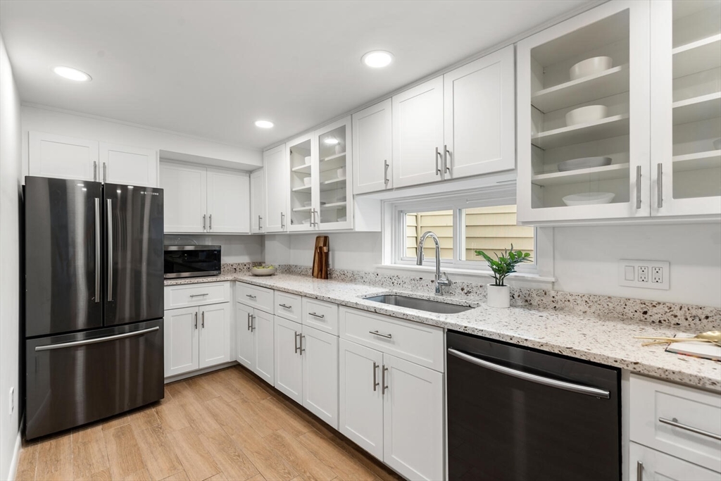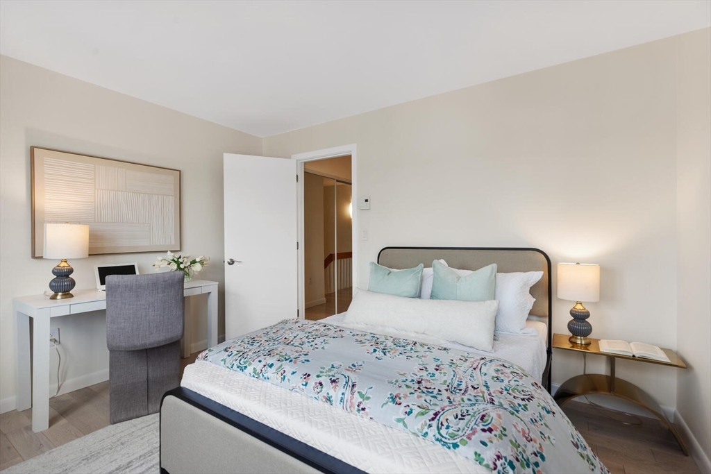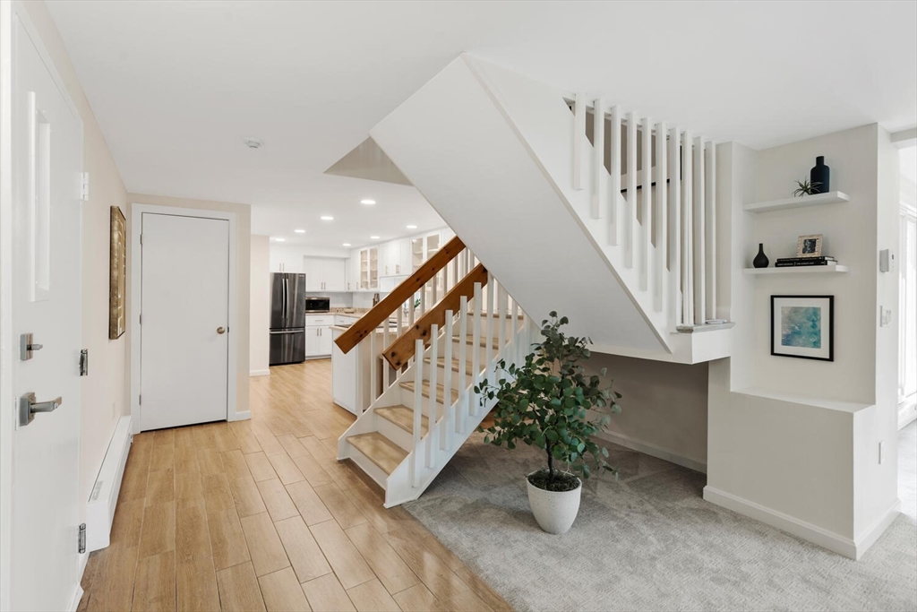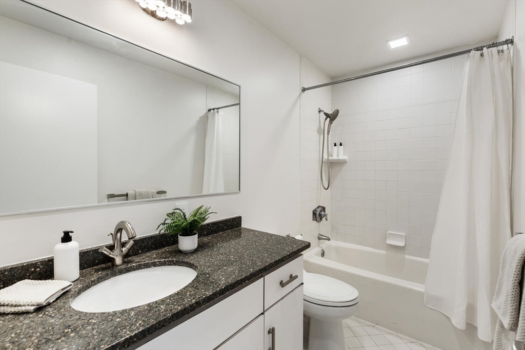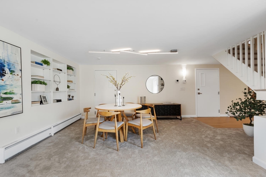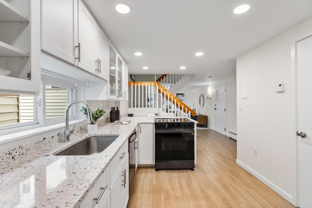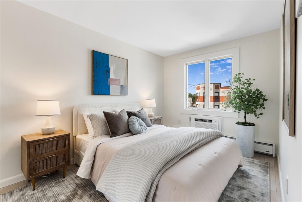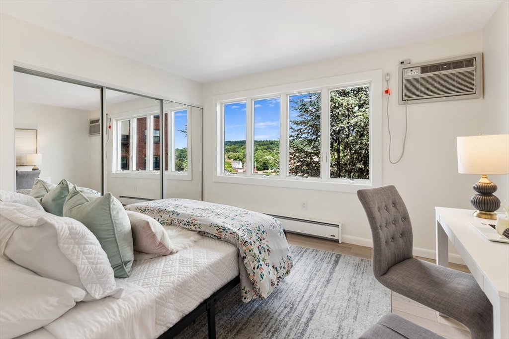 Immerse yourself in the vibrant heart of Winchester Center with this exquisite 2-bedroom, 1.5-bathroom condominium! Step into the open-concept living and dining area, where a modern touch meets downtown flair. A rare freestanding wood-burning fireplace accentuates the space, offering warmth and a touch of classic charm. Delight in the recently renovated kitchen, designed for both style and utility. The unit boasts two expansive rooftop patios, offering boundless possibilities. Whether you envision a tranquil retreat under the stars or a sophisticated dining area overlooking the vibrant town center, these outdoor spaces are sure to inspire. Practical features include abundant storage, in-unit laundry, ensuring convenience, and one off-street parking space. This prime location allows you to walk to the BRAND NEW commuter rail, grocery store, restaurants, shops, and everything our idyllic town center has to offer—enhancing the ease of daily life!