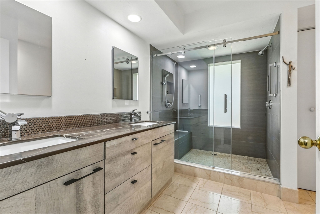 This exquisite home seamlessly blends luxury, comfort and convenience with open floor plan,soaring ceilings and walls of glass that bathe the interior with natural light. The chef's updated kitchen boasts high end appliances ideal for culinary creativity. Livingrm is enriched with gas fireplace and opens to diningrm overlookimg expansive deck with semi-private rear yard. First floor primary suite offers a private retreat complimented by a sparkling spa- like bathing rm.The spacious 2nd floor bedroom has new walk in shower with separate bath.Second floor den has large walk in closets.Set in a manicured,private enclave with beautiful woodland splendor.The home showcases stunning architectural details and quality finishes with versatile living space. This exceptional home is a perfect balance of style and location! Furnace and central a/c were replaced in 2024,hot water heater was replaced in January 2025.