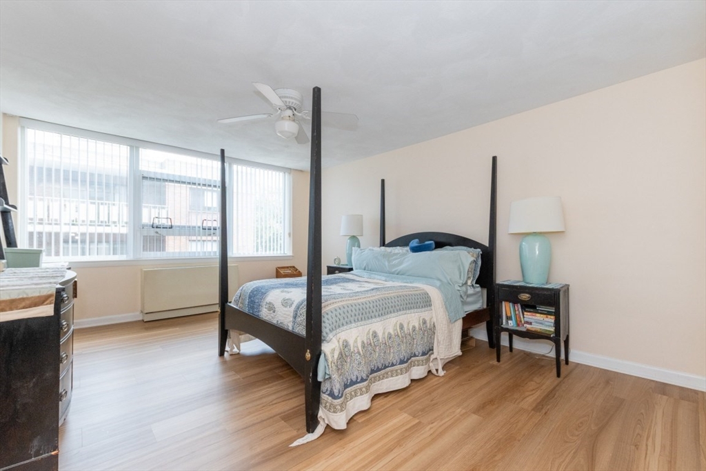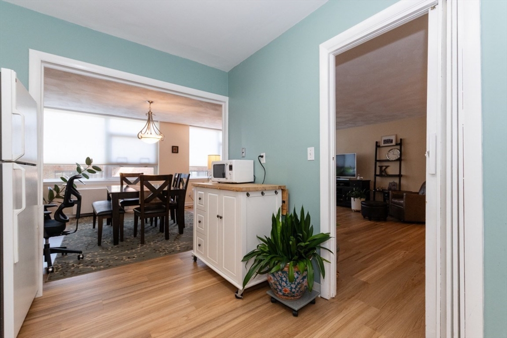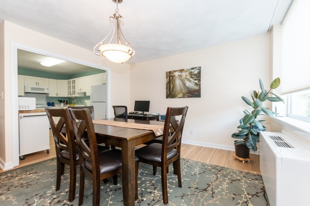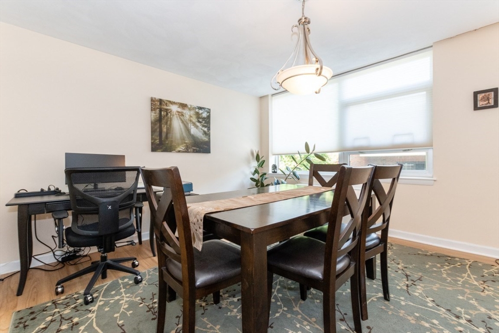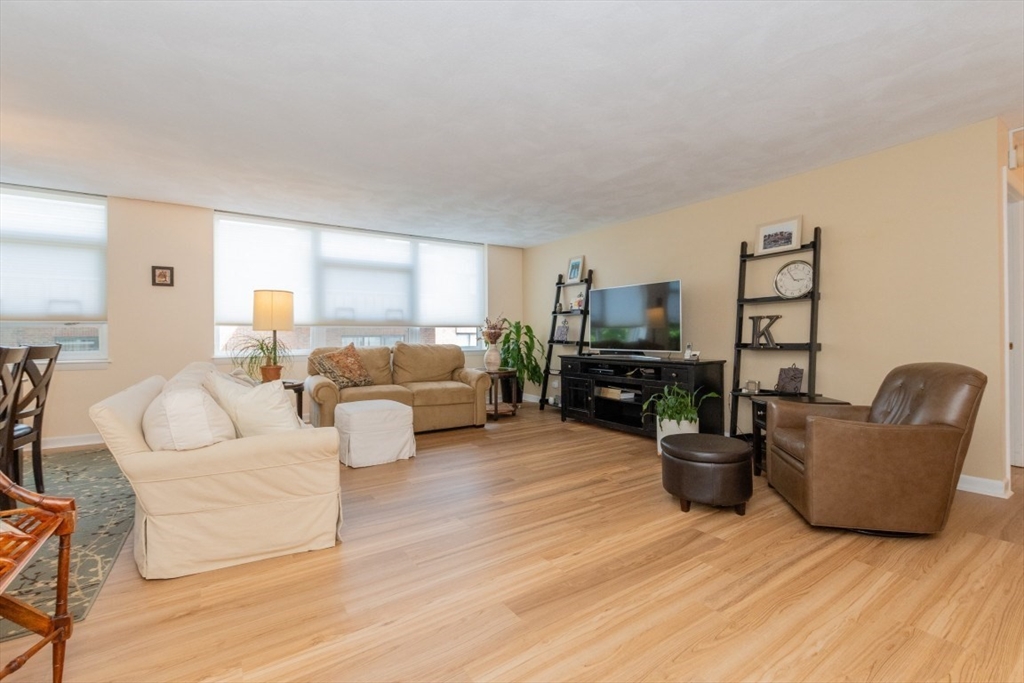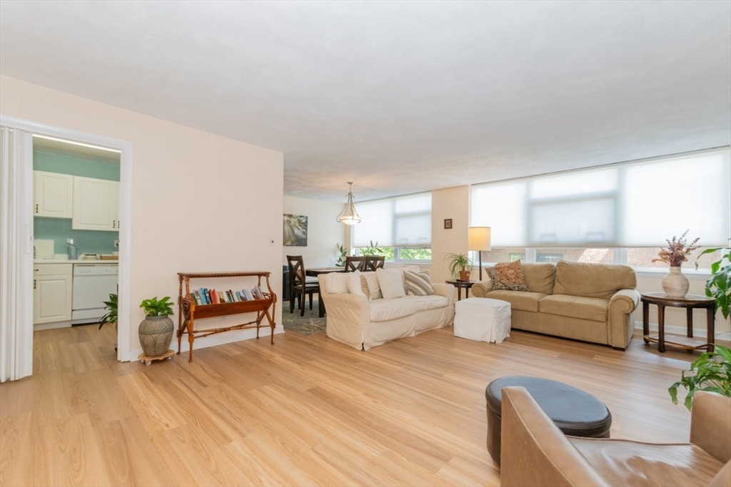 Discover this exceptional Chestnut Hill condominium. This spacious, well-lit one-bedroom unit offers over 1,000 square feet of living space on the desirable south-facing side of the building, allowing residents to enjoy plenty of sunlight with new custom windows throughout. It showcases an open-concept design enhanced by brand new flooring and ample closet space in every room. Its versatile layout features a large dining area that could easily be transformed into a second bedroom or a home office. Deeded, covered parking space conveniently located just steps from the back door. Enjoy two heated outdoor swimming pools and backyard with barbecue. This meticulously maintained property with daily trash removal has a full-time building manager. A prime location situated near three shopping centers, Wegmans, restaurants, health clubs, and public transportation including the #60 bus and the Green Line train and an easy drive down Boylston St to the Medical Area and Boston.