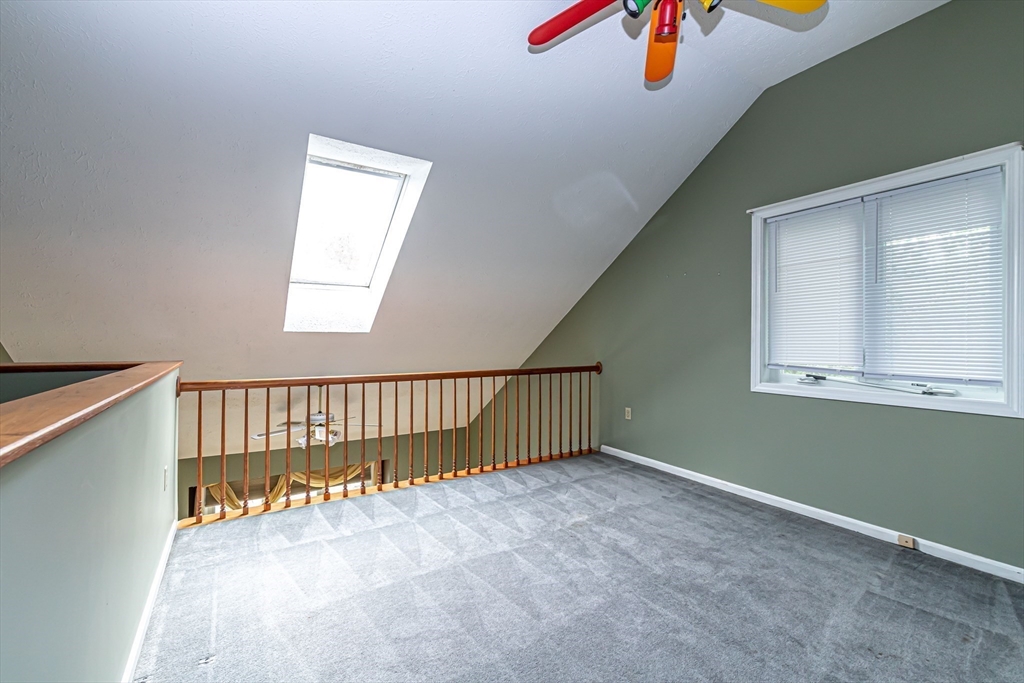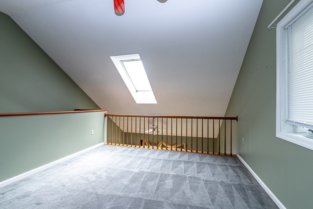Welcome to Hunter’s Run West! This sought after end unit townhouse is tucked away in a peaceful spot while still close to shopping, entertainment, fitness, and easy highway access. The open-concept first floor features dining and living area, and being an end unit, you get a little extra square footage with a delightful bumpout in the dining room. Step out the sliders onto your own back deck, perfect for relaxing.The two-level primary bedroom has a stunning cathedral ceiling and a spacious loft above—ideal for an office, hobby zone, or reading nook. The second bedroom is roomy, too, with plenty of closet space for all your needs.Don’t forget about the partially finished basement! It’s a fantastic area for a workout space, TV lounge, or playroom—the possibilities are endless. You’ll appreciate central AC on warm days, an assigned parking spot, and visitor parking. Come check it out or join us for our open house this Thursday, July 10th: 4-6 PM. We can’t wait to show you around.