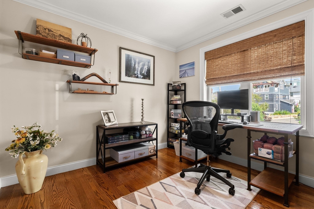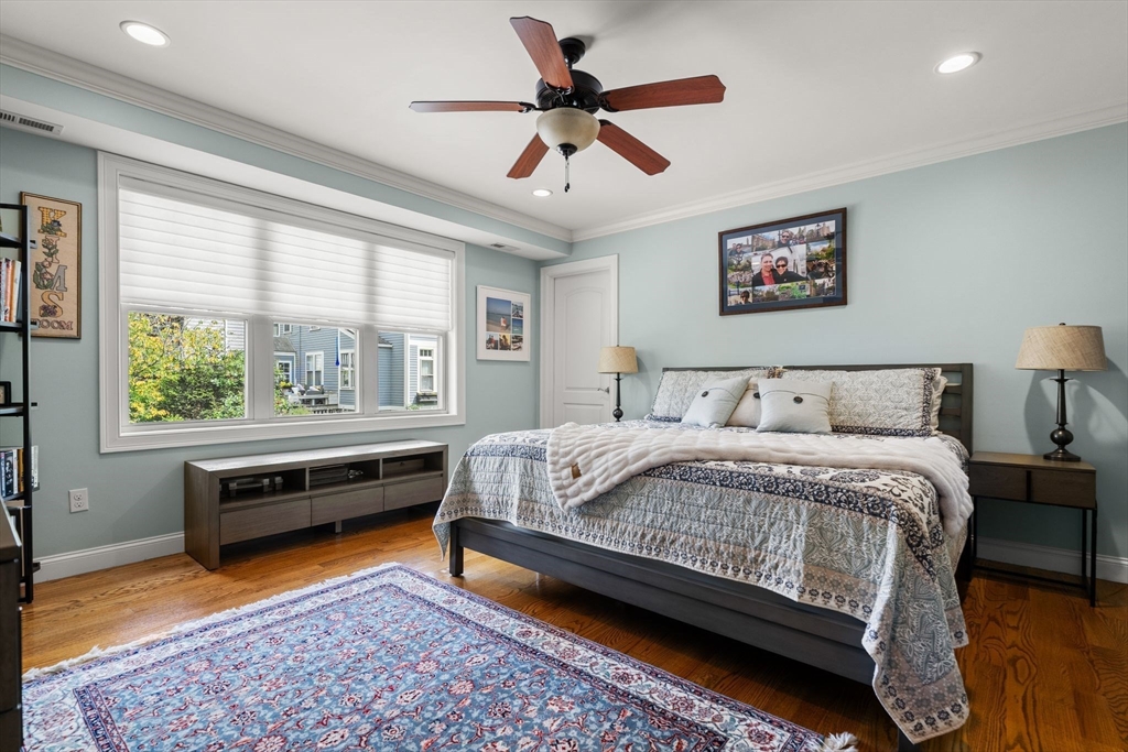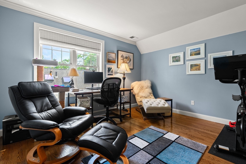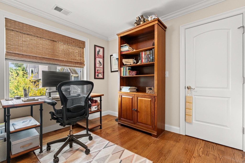 Move right into this spacious, private, and enchanting townhouse that beautifully combines space, style, form, and function. The home is situated across from The Arnold Arboretum, a stunning botanical and horticultural wonder where you can enjoy breathtaking sunsets and observe the changing seasons right from your door. This easy-living open floor plan spans 1,544 sq. ft. and comprises 6 rooms, 3 bedrooms and 2.5 bathrooms, with an en-suite primary bedroom. Enjoy the chefs eat-in kitchen, complete with stainless steel appliances, honed countertops, and an entertainment-sized island. Additional highlights include custom window treatments, crown molding, a gas fireplace with mantel and sconces, hardwood floors, recessed lighting, HVAC, air conditioning, a central vacuum system, and ample extra storage. garage parking and a covered deck. Designed and built in 2013, it has the look and feel of a single-family home. Join us at the OH's Saturday, 7/12, 11:30-1:00 & Sunday, 7/13, 12:00-1:00