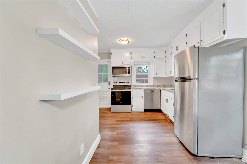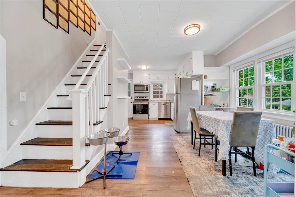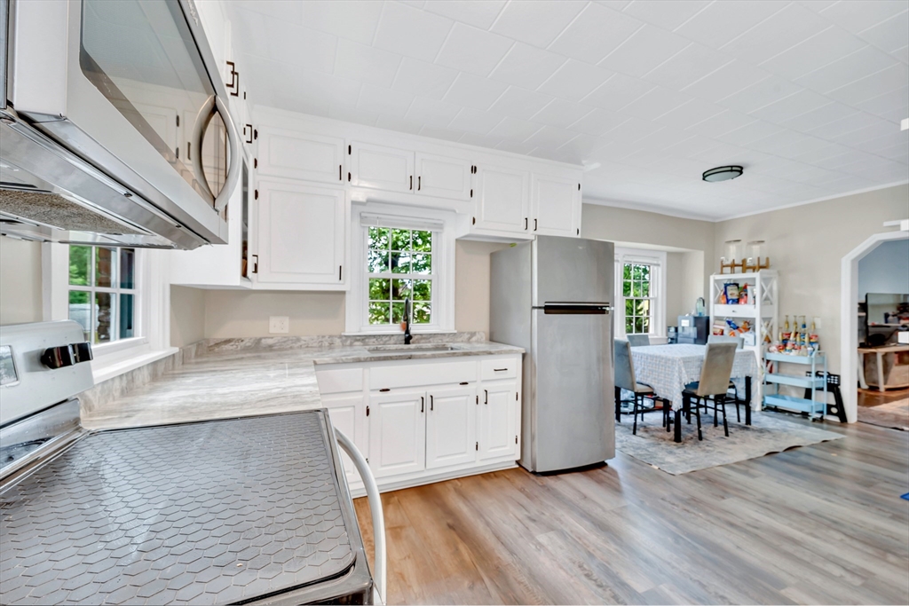 Discover a blend of charm and convenience at 295 Harkness Avenue, Springfield, MA. This delightful 3-bedroom, 2-bathroom Cape-style home offers 1,585 square feet of inviting living space. Situated on almost half an acre, the property features both private and common outdoor spaces perfect for relaxation or play. Step inside to find an updated eat-in kitchen adorned with sleek stainless steel appliances and ample room for casual dining. The home boasts beautiful hardwood floors throughout the living areas, while the bedrooms are complemented by cozy carpet flooring. Enjoy the convenience of a basement and a washer hookup for all your laundry needs. A 2-car detached garage and additional off-street options makes parking a breeze. Proximity to major routes and downtown, makes commuting and city exploration effortless. Whether entertaining or unwinding, this property’s blend of modern amenities and classic appeal invites you to make it home.