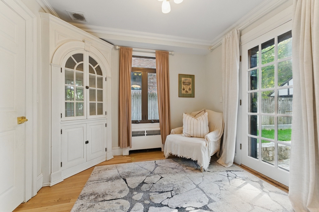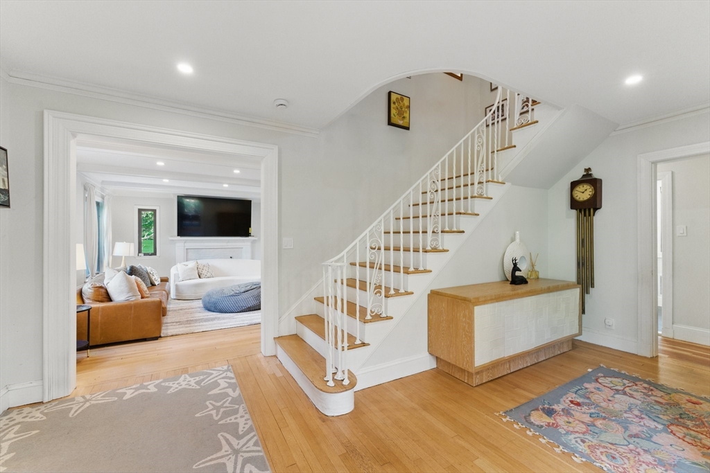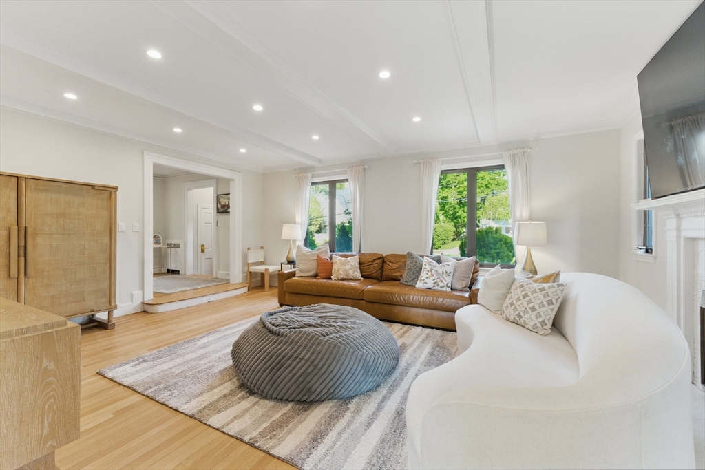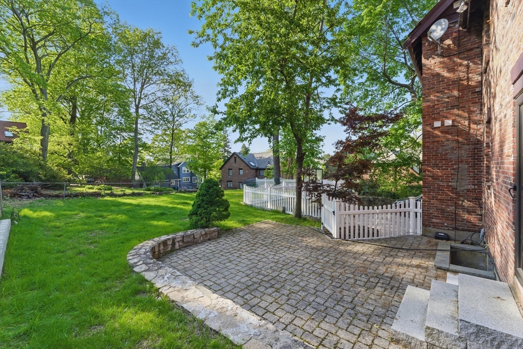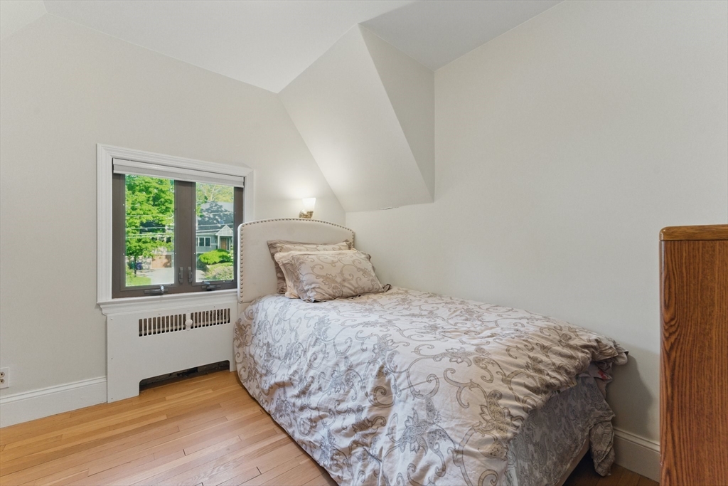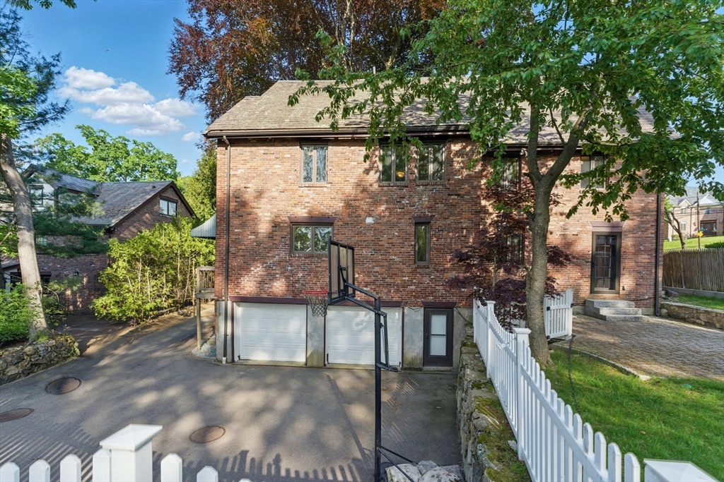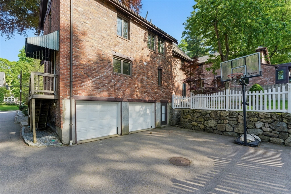 Extensively updated since 2022 with a renovated kitchen, fresh interior paint, added full bath and two bonus rooms in the basement, and refinished hardwood floors (partial). This timeless impressive Tudor is located on a picturesque tree-lined street in one of Newton’s most desirable neighborhoods—steps to top schools, public transit, highways, restaurants, and shopping.The main level features a grand foyer, sunken living room with beamed ceiling and wood-burning fireplace, formal dining room, eat-in kitchen with stainless steel appliances, full bath, and a family room/home office with direct backyard access.Upstairs offers four bedrooms and two full baths, including a spacious primary suite with en suite bath, fireplace, and walk-in closet. The finished upper level includes a vaulted-ceiling media room and additional en suite with full bath and closet. The lower level also includes a retro bar, laundry area, and access to a heated two-car garage. Don't miss this rare opportunity!
